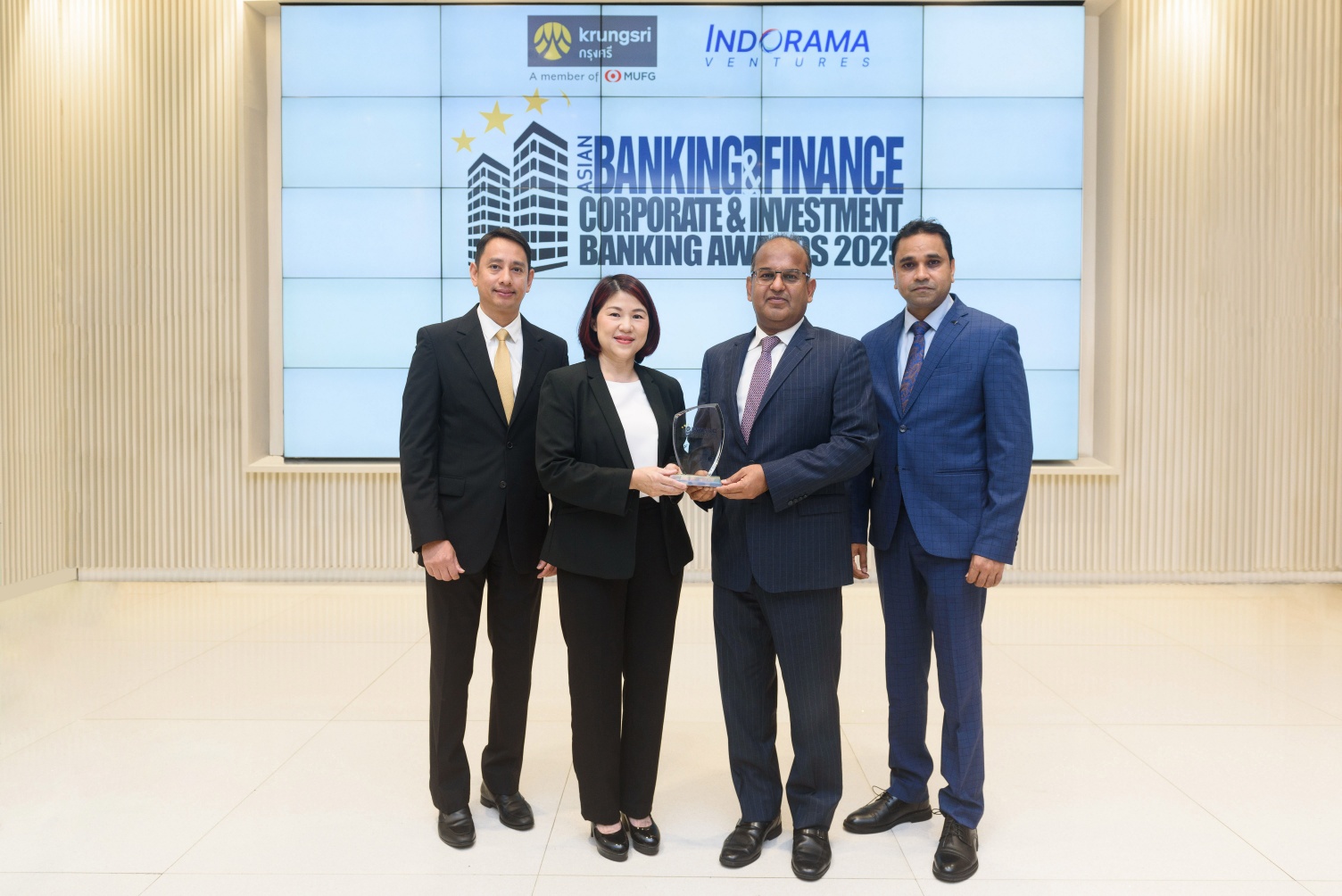 กรุงเทพฯ, 27 สิงหาคม 2568 : กรุงศรี (ธนาคารกรุงศรีอยุธยา จำกัด (มหาชน)) โดย นิลวรรณ จีระบุญ (ที่ 2 จากซ้าย) ประธานคณะเจ้าหน้าที่ด้านธุรกรรมการเงิน พร้อมด้วย นายอโชค เจน (ที่ 2 จากขวา) ประธานเจ้าหน้าที่บริหารด้านการเงิน (รักษาการชั่วคราว)บริษัท อินโดรามา เวนเจอร์ส จำกัด (มหาชน) ) ผู้ผลิตเคมีภัณฑ์ชั้นนำระดับโลกที่ดำเนินธุรกิจอย่างยั่งยืน ร่วมรับรางวัล Initiative Award for Trade Finance Solution จากงาน Asian Banking & Finance Corporate & Investment Banking Awards 2025 จัดโดย Asian Banking & Finance (ABF) นิตยสารการเงินธนาคารระดับสากล
