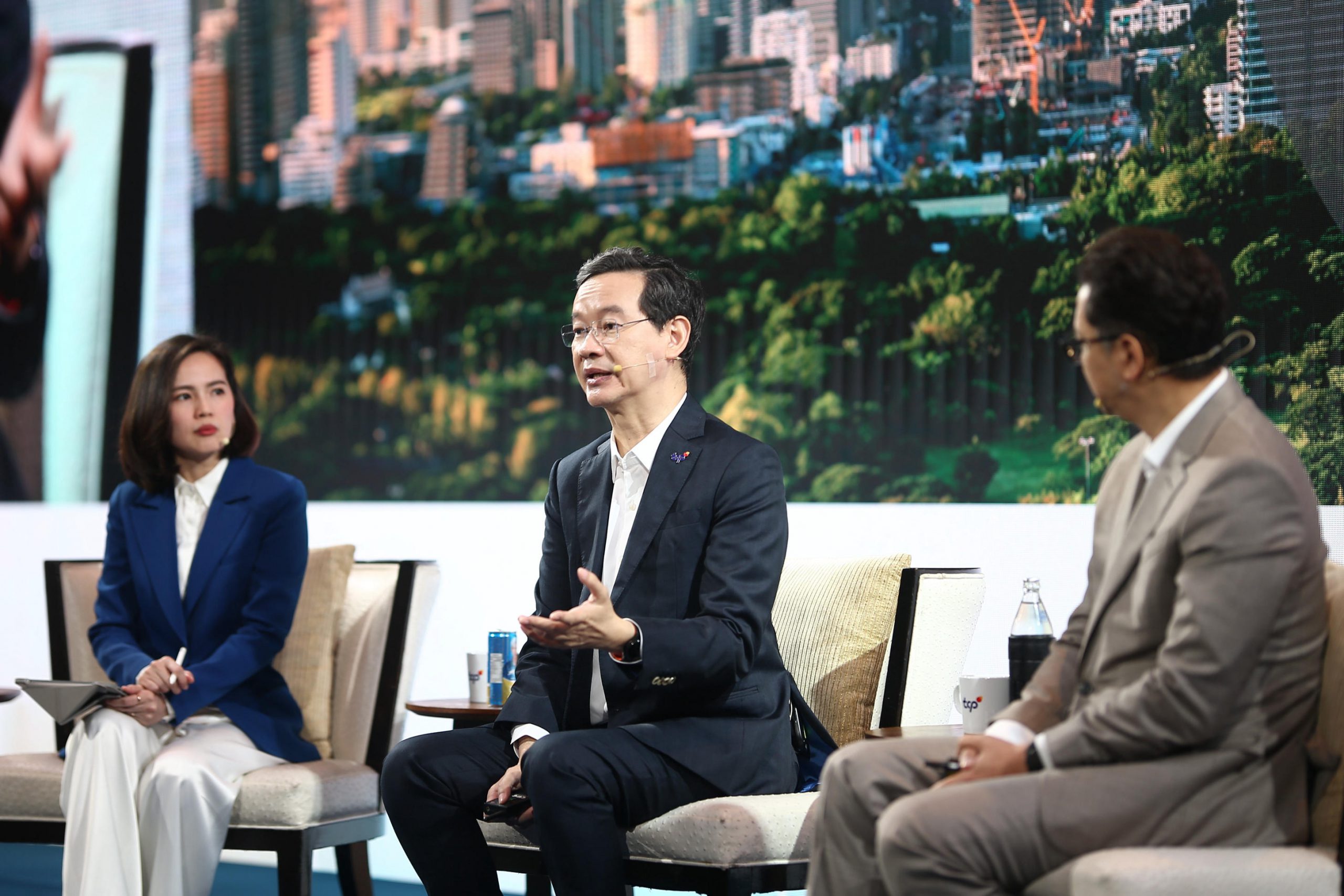 ในการเสวนาหัวข้อ 'การก้าวข้ามธุรกิจแบบเดิม: สู่กลยุทธ์ใหม่เพื่อการเติบโตที่ยั่งยืน' คุณสราวุฒิ อยู่วิทยา ประธานเจ้าหน้าที่บริหาร กลุ่มธุรกิจ TCP ได้เน้นย้ำถึงความจำเป็นที่องค์กรต้องปรับตัวและสร้างสรรค์สิ่งใหม่เพื่อรับมือกับบริบทที่เปลี่ยนไปอย่างรวดเร็ว ฉะนั้นการดำเนินธุรกิจแบบเดิม จึงไม่ตอบโจทย์อีกต่อไป คุณสราวุฒิมองว่าสถานการณ์ปัจจุบันเป็นช่วงเวลาสำคัญของการปรับสมดุล (Rebalancing) เพื่อทบทวนและจัดลำดับความสำคัญใหม่ให้สอดคล้องกับเศรษฐกิจ สังคม และสิ่งแวดล้อม พร้อมทั้งสร้างสรรค์สิ่งใหม่ (Reinvention) ด้วยการเปลี่ยนวิธีการทำงาน วิธีคิด และรูปแบบธุรกิจให้ยั่งยืนยิ่งขึ้น