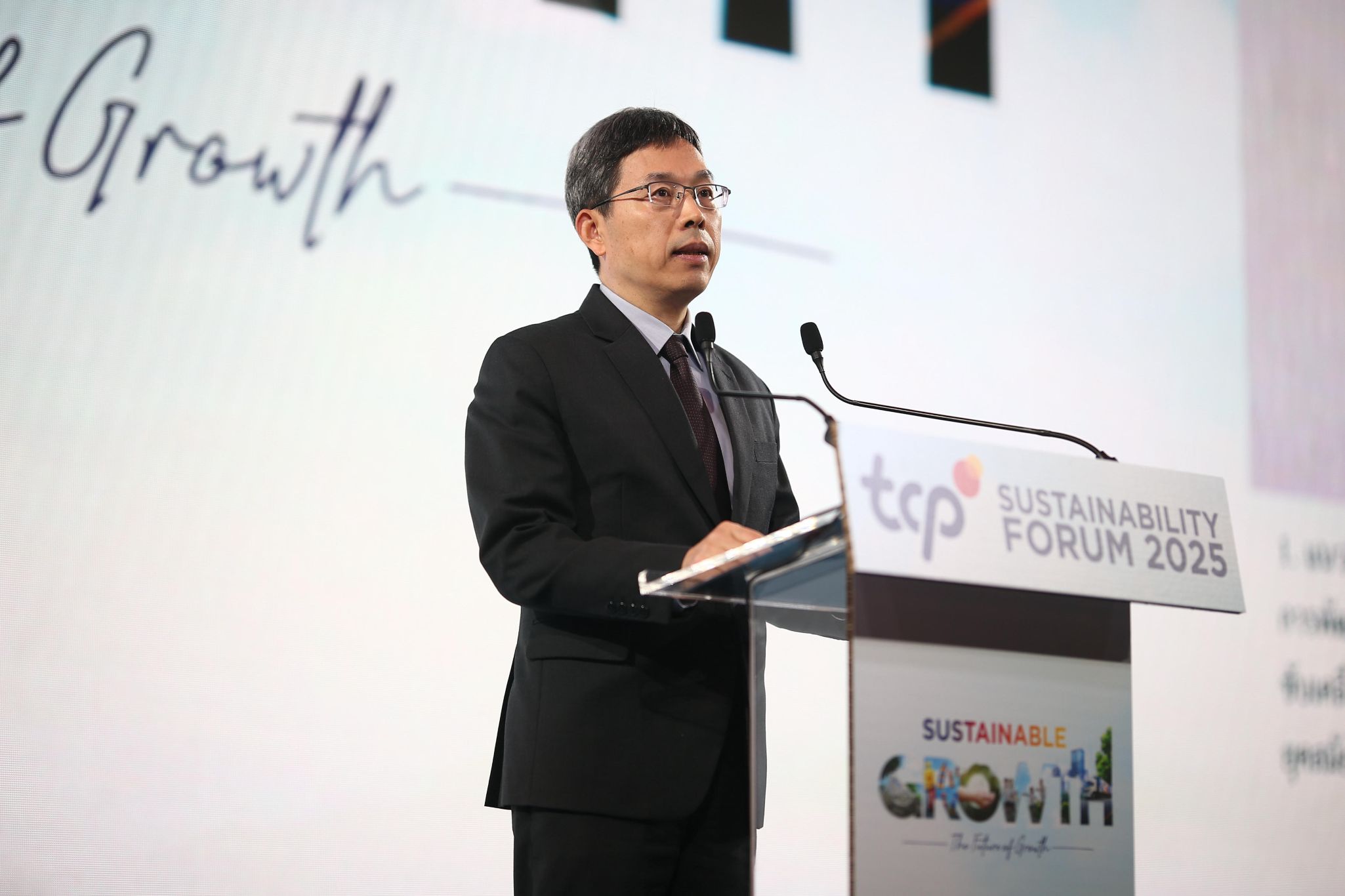 งาน TCP Sustainability Forum 2025 ยังได้รับเกียรติจาก คุณเจียง เหว่ย อัครราชทูตที่ปรึกษาฝ่ายเศรษฐกิจและพาณิชย์ สถานเอกอัครราชทูตสาธารณรัฐประชาชนจีน ประจำประเทศไทย กล่าวปาฐกถาพิเศษ โดยเน้นย้ำว่าการพัฒนาที่ยั่งยืนคือพลังขับเคลื่อนใหม่ของความร่วมมือจีน-ไทย และได้ยกตัวอย่างแนวคิดการพัฒนาของจีน 5 ด้าน ได้แก่ ด้านนวัตกรรม การบูรณาการ ความเป็นมิตรต่อสิ่งแวดล้อม การเปิดกว้าง และการแบ่งปัน ซึ่งสอดคล้องกับโมเดล BCG ของไทย โดยปัจจุบันมีบริษัทจีนกว่า 1,000 แห่งเข้ามาลงทุนในไทยในอุตสาหกรรมเกิดใหม่ที่เกี่ยวกับเทคโนโลยีสีเขียว ซึ่งเป็นโอกาสสำคัญสำหรับผู้ประกอบการไทยที่จะร่วมสร้างห่วงโซ่อุตสาหกรรมและเติบโตไปด้วยกันอย่างยั่งยืน