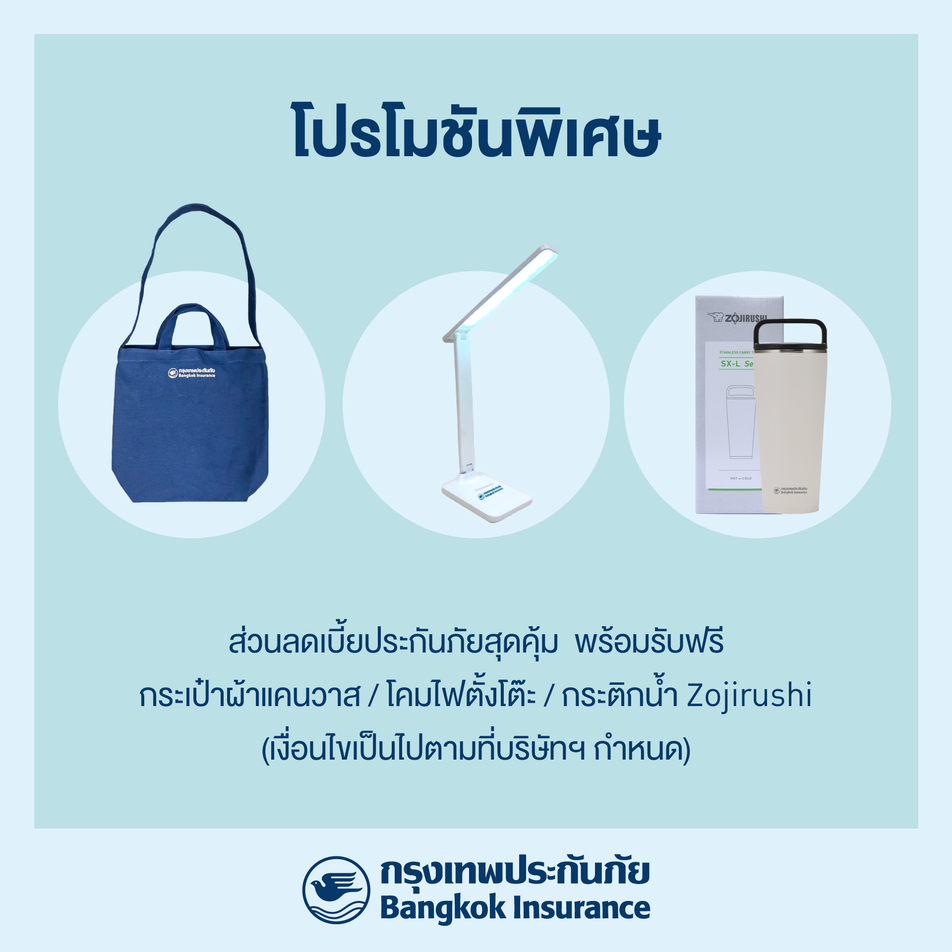 โดยมอบส่วนลดค่าเบี้ยประกันภัยสูงสุด 18% สำหรับผู้ที่ซื้อกรมธรรม์ใหม่ภายในงาน นอกจากนี้ ยังสามารถผ่อนชำระเบี้ยประกันภัย ดอกเบี้ย 0% นาน 6 เดือน หรือ 10 เดือนผ่านบัตรเครดิตที่ร่วมรายการ พร้อมรับของที่ระลึกที่เตรียมไว้สำหรับงานนี้โดยเฉพาะ อีกทั้งยังมีกิจกรรมให้ร่วมสนุกลุ้นรับของรางวัลพิเศษอีกด้วย พบกับกรุงเทพประกันภัยได้ที่บูท T55 ณ ศูนย์การประชุมแห่งชาติสิริกิติ์ ฮอลล์ 5-6 ชั้น LG ในวันที่ 29-31 สิงหาคม 2568