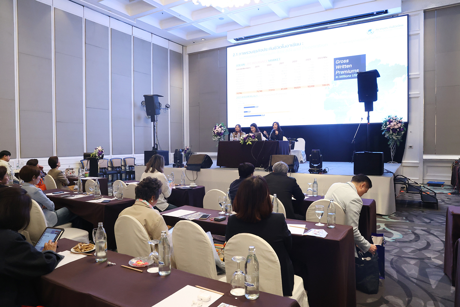 1 กันยายน 2568 : นุสรา (อัสสกุล) บัญญัติปิยพจน์ นายกสมาคมประกันชีวิตไทย ได้รับเชิญจากสถาบันวิทยาการประกันภัยระดับสูง (วปส.) สำนักงานคณะกรรมการกำกับและส่งเสริมการประกอบธุรกิจประกันภัย (สำนักงาน คปภ.) เป็นวิทยากรบรรยาย เรื่อง “ภาพรวมของธุรกิจประกันชีวิต : บทบาทของประกันชีวิตในการขับเคลื่อนเศรษฐกิจ และสังคมไทย” ให้แก่นักศึกษาหลักสูตรวิทยาการประกันภัยระดับสูง (วปส.) รุ่นที่ 13 ประจำปี พ.ศ. 2568 เพื่อเสริมสร้างความรู้ความเข้าใจให้แก่ผู้บริหารระดับสูงของหน่วยงานภาครัฐและภาคเอกชน เกี่ยวกับ โครงสร้างและทิศทางของธุรกิจประกันชีวิต สะท้อนถึงบทบาทของอุตสาหกรรมในการสนับสนุนระบบเศรษฐกิจและสังคมไทยอย่างยั่งยืน รวมถึงแนวทางการดำเนินธุรกิจและพัฒนาองค์กรให้เติบโตอย่างยั่งยืน พร้อมทั้งแลกเปลี่ยนข้อคิดเห็นจากมุมมองและประสบการณ์กับผู้เข้าอบรม ณ โรงแรมเซ็นทารา แกรนด์ แอท เซ็นทรัลพลาซ่า ลาดพร้าว กรุงเทพ เมื่อเร็วๆ นี้