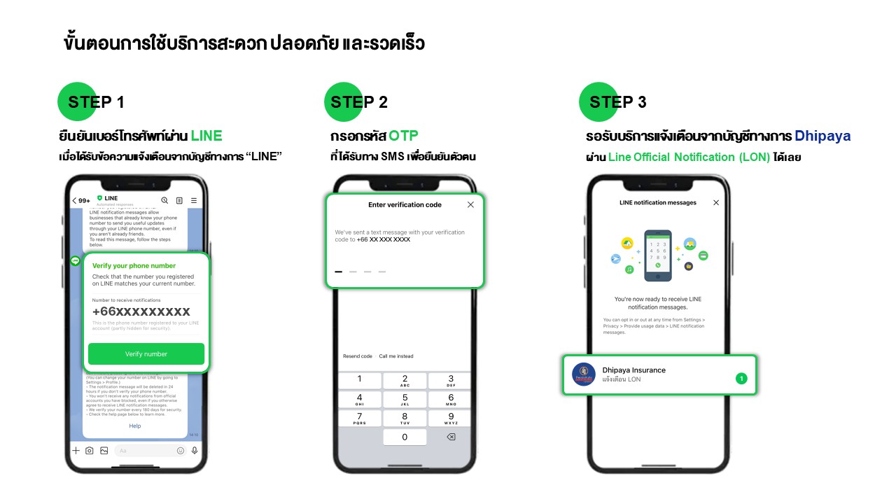 ทุกข้อความถูกส่งจากระบบที่ได้รับการตรวจสอบและรับรอง ช่วยลดปัญหาข้อความสแปม และป้องกันการแอบอ้างจากมิจฉาชีพได้อย่างสิ้นเชิง คุณศรีสุภาคย์ อารีวณิชกุล ผู้อำนวยการธุรกิจองค์กร LINE ประเทศไทย กล่าวว่า “LINE มีผู้ใช้งานกว่า 56 ล้านคนทั่วประเทศ ทำให้เป็นโครงสร้างพื้นฐานด้านการสื่อสารของผู้บริโภคยุคดิจิทัล ระบบ LON มีมาตรฐานความปลอดภัยสูง ถูกออกแบบเพื่อให้แบรนด์สามารถแจ้งเตือนลูกค้าได้โดยตรง และลดปัญหาข้อความหลอกลวงได้อย่างมีประสิทธิภาพ เรามั่นใจว่าความร่วมมือครั้งนี้จะช่วยเพิ่มประสิทธิภาพการสื่อสารของทิพยประกันภัยและสร้างความเชื่อมั่นสูงสุดแก่ลูกค้า