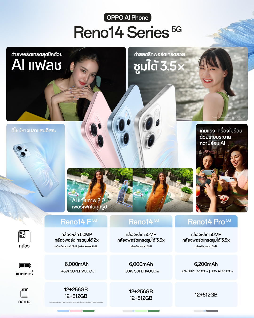 ติดตามรายละเอียดผลิตภัณฑ์เพิ่มเติมได้ที่ : https://www.oppo.com/th/smartphones/series-reno/reno14/