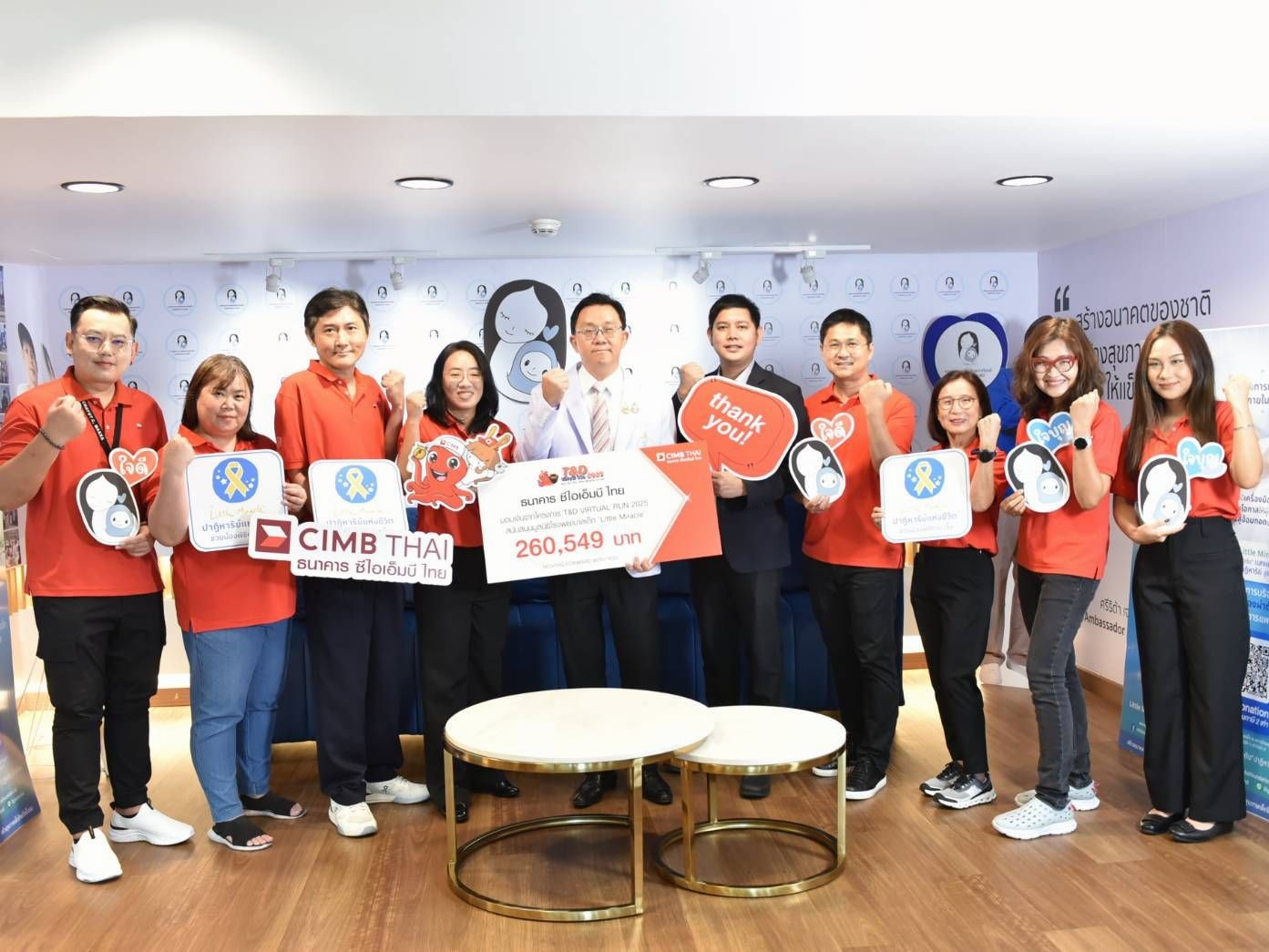 4 กันยายน 2568 : คุณพรภัทร อาทรสมบัติ ผู้บริหารฝ่าย Cyber Security and Service Delivery และคุณขนิษฐา กิตติสัตยกุล ผู้บริหารที่ปรึกษา IT Consultant ธนาคาร ซีไอเอ็มบี ไทย จำกัด (มหาชน) พร้อมด้วยพนักงาน ส่งมอบเงินบริจาคจำนวน 260,549 บาท จากการระดมทุนของพนักงานในกิจกรรมภายใน “CIMB THAI T&D Virtual Run 2025” ให้กับโครงการ “Little Miracle ช่วยน้องพิชิตมะเร็ง” มูลนิธิโรงพยาบาลเด็ก เพื่อสนับสนุนการสร้างหอผู้ป่วยปลูกถ่ายไขกระดูกและสเต็มเซลล์ (BMT Unit) ณ โรงพยาบาลเด็ก โดยมีนายแพทย์อาคม ชัยวีระวัฒนะ ผู้อำนวยการสถาบันสุขภาพเด็กแห่งชาติมหาราชินี และคุณสมชาติ ไชยเขตต์ รักษาการรองผู้อำนวยการด้านอำนวยการ เป็นผู้รับมอบ