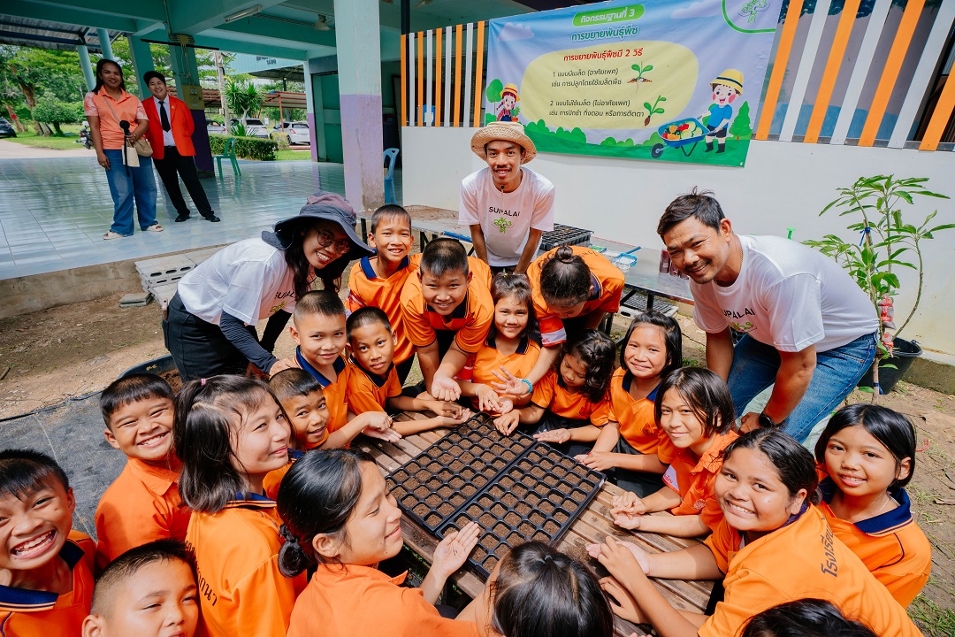 ประตินันท์ วัชราจิตติธรรม ผู้จัดการฝ่าย สายงานบริการชุมชน บริษัท ศุภาลัย จำกัด (มหาชน) พร้อมทีมงาน ได้ลงพื้นที่ร่วมแรงกับคณะครูและนักเรียน เปลี่ยนพื้นที่ว่างในโรงเรียนให้เป็นแปลงไม้ผล บนพื้นที่ 3 ไร่ ประกอบด้วย มะม่วงน้ำดอกไม้ ฝรั่งกิมจู มะละกอแขกดำ และอื่นๆ รวมเกือบ 200 ต้น และแปลงผักสวนครัวปลอดสารพิษ ทั้งพริกจินดาแดง มะเขือเปราะ มะรุม มะกรูด กระเพรา น้ำเต้า มะนาวแป้น จำนวน 10 แปลง โดยมีวัตถุประสงค์เพื่อให้นักเรียนได้เรียนรู้ทักษะด้านการเกษตร สามารถนำไปปรับใช้ในชีวิตประจำวัน อีกทั้งยังช่วยลดค่าใช้จ่ายในการซื้อผักสวนครัวซึ่งเป็นวัตถุดิบในการประกอบอาหารกลางวันได้ 48,000 บาทต่อปี สร้างความมั่นคงทางอาหารให้แก่บุคลากรในโรงเรียนในระยะยาว อีกทั้งยังสามารถนำองค์ความรู้ไปต่อยอดในครัวเรือน พัฒนาเป็นผลิตภัณฑ์หรือสร้างอาชีพ สร้างรายได้ และเพิ่มคุณค่าทางเศรษฐกิจแก่ชุมชนได้อย่างยั่งยืน สอดคล้องกับเป้าหมายการพัฒนาที่ยั่งยืน (Sustainable Development Goals: SDGs) อีกด้วย