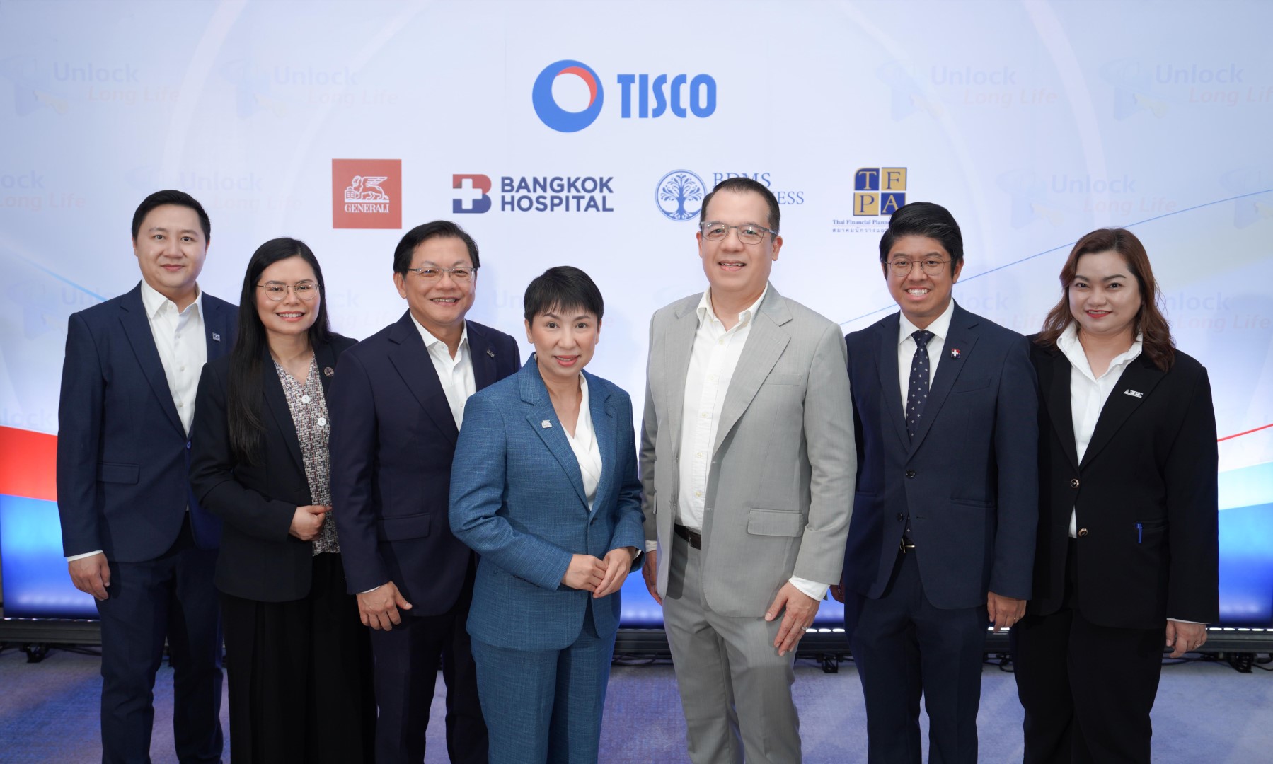 บรรยายภาพ (จากซ้ายไปขวา) : ณัฐกฤติ เหล่าทวีทรัพย์ CFP® Head of Wealth Advisory ธนาคารทิสโก้ จำกัด (มหาชน), พญ.ณัฏฐ์นรี บุญศิรภัสสร แพทย์ผู้ชำนาญการด้านเวชศาสตร์ป้องกัน BDMS Wellness Clinic, ธีรนาถ รุจิเมธาภาส ผู้ช่วยกรรมการผู้จัดการใหญ่อาวุโส บริษัท ทิสโก้ไฟแนนเชียลกรุ๊ป จำกัด (มหาชน), ยุวดี งานทวีกิจ ประธานเจ้าหน้าที่ฝ่ายธุรกิจ กลุ่มบริษัท เจนเนอราลี่ ไทยแลนด์, พิชา รัตนธรรม รองกรรมการผู้จัดการใหญ่ สายธุรกิจธนบดี และบริการธนาคาร ธนาคารทิสโก้ จำกัด (มหาชน) , นพ.ณัฏฐชัย สุวจิตตานนท์ แพทย์ช่วยบริหาร รพ.กรุงเทพ ผู้อำนวยการศูนย์ส่งเสริมสุขภาพกรุงเทพ ศูนย์เวชศาสตร์การบิน และศูนย์อาชีวอนามัย และ คุณสุชาดา ทองสกุล AFPT™ ผู้จัดการและผู้เชี่ยวชาญการวางแผนการลงทุน (IP) และที่ปรึกษาทางการเงิน บริษัท เจนเนอราลี่ ประกันชีวิต (ไทยแลนด์) จำกัด (มหาชน)