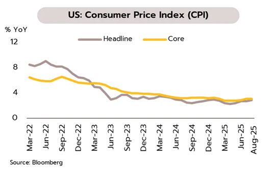 แม้เศรษฐกิจสหรัฐฯ ชะลอตัวชัดเจน แต่การขยับขึ้นของเงินเฟ้ออาจเป็นอุปสรรคต่อการปรับลดอัตราดอกเบี้ย อัตราเงินเฟ้อทั่วไปเดือนสิงหาคมเพิ่มขึ้นจากเดือนก่อนที่ 2.7% สู่ระดับ 2.9% YoY ส่วนอัตราเงินเฟ้อพื้นฐานอยู่ที่ 3.1% สูงสุดนับตั้งแต่เดือนกุมภาพันธ์ ขณะที่จำนวนผู้ขอรับสวัสดิการว่างงานครั้งแรกเพิ่มขึ้นสู่ระดับ 263,000 ราย ประจำสัปดาห์สิ้นสุดวันที่ 6 กันยายน สูงสุดนับตั้งแต่เดือนตุลาคม 2564 นอกจากนี้ ดัชนีความเชื่อมั่นผู้บริโภคในเดือนกันยายนปรับลดลงสู่ระดับต่ำสุดในรอบ 4 เดือน ที่ 55.4