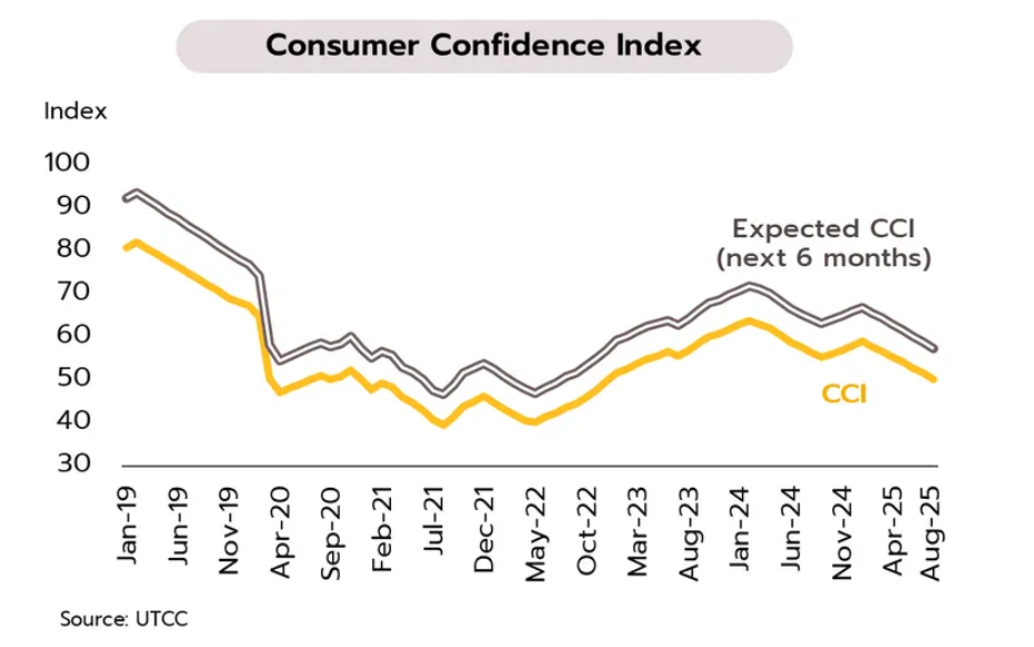 ความเชื่อมั่นผู้บริโภคเดือนสิงหาคมร่วงต่ำสุดในรอบ 32 เดือน รัฐบาลชุดใหม่เตรียมกระตุ้นเศรษฐกิจผ่านโครงการคนละครึ่ง ดัชนีความเชื่อมั่นผู้บริโภคเดือนสิงหาคมลดลงต่อเนื่องเป็นเดือนที่ 7 สู่ระดับต่ำสุดนับตั้งแต่เดือนมกราคม 2566 ที่ 50.1 จาก 51.7 ในเดือนกรกฏาคม เนื่องจากความกังวลเกี่ยวกับ (i) ความไม่แน่นอนของสถานการณ์การเมืองในประเทศ (สำรวจก่อนมีการเปลี่ยนผ่านทางการเมือง) (ii) เศรษฐกิจไทยมีแนวโน้มฟื้นตัวช้า และ (iii) ผลกระทบของนโยบายการขึ้นภาษีนำเข้าของสหรัฐฯ ต่อภาคส่งออกและการจ้างงานในประเทศ