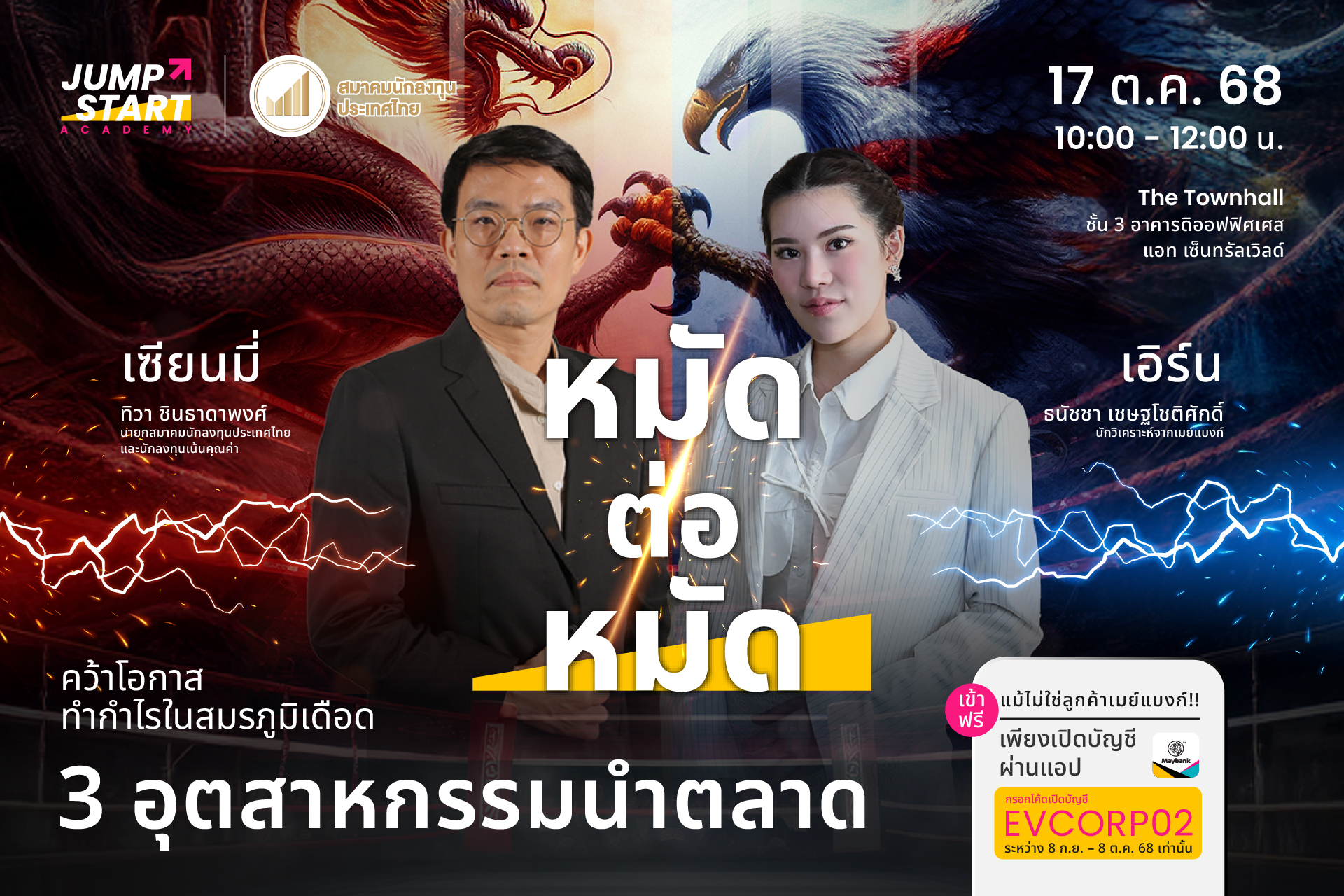 16 กันยายน 2568 : บริษัทหลักทรัพย์ เมย์แบงก์ (ประเทศไทย) จำกัด (มหาชน) ร่วมกับสมาคมนักลงทุนประเทศไทย จัดสัมมนาสุดเอ็กซ์คลูซีฟสำหรับลูกค้าเมย์แบงก์และผู้สนใจ ร่วมวิเคราะห์โอกาสการลงทุนบนเวทีโลก พร้อมเปิดมุมมองเชิงกลยุทธ์แบบ “หมัดต่อหมัด” ใน 3 อุตสาหกรรมสำคัญ ได้แก่ Super App, Travel และ e-Commerce บนสมรภูมิการแข่งขันระหว่างสองมหาอำนาจทางเศรษฐกิจอย่างจีนและสหรัฐ