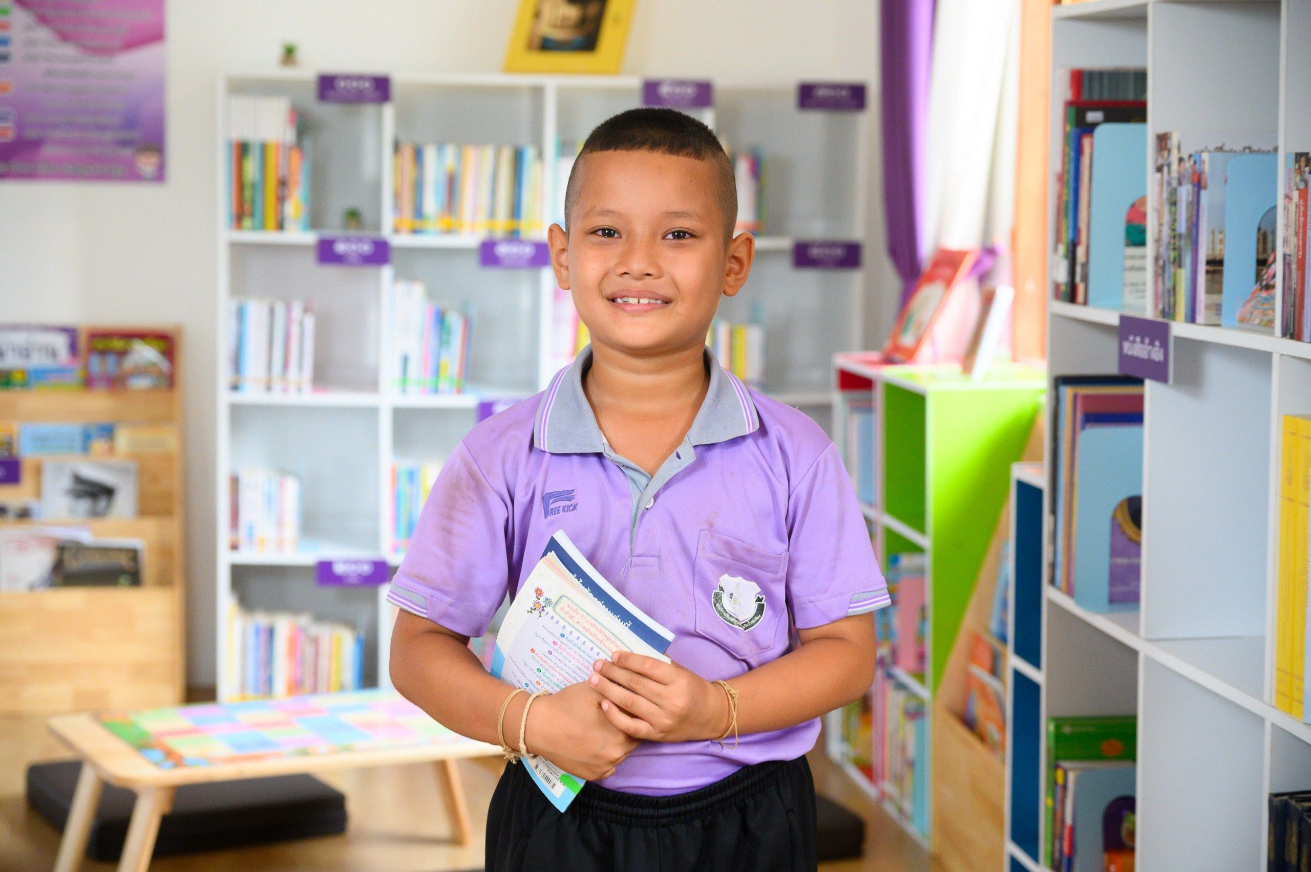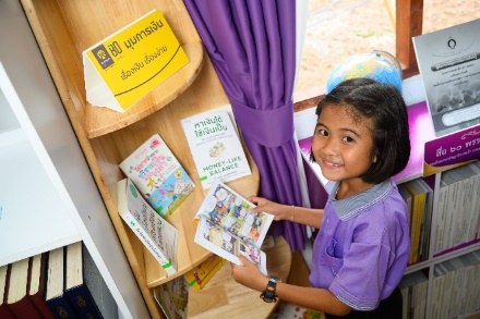 น้องแก้ม หรือ ด.ญ. ปิ่นมณี งามยิ่ง นักเรียนชั้นประถมศึกษาปีที่ 6 กล่าวว่า หนูเข้ามาห้องสมุดทุกวันเลยค่ะ เพราะได้ทำหน้าที่เป็น ‘บรรณารักษ์น้อย’ คอยดูแลความเรียบร้อย ลงทะเบียนผู้ใช้ และติดตาม การยืม-คืนหนังสือของห้องสมุด ซึ่งทำให้หนูได้ฝึกทักษะความเป็นผู้นำจากการเป็นบรรณารักษ์น้อย ผ่านการคอยประสานงาน พร้อมกับการดูแลให้ทุกคนใช้ห้องสมุดอย่างเป็นระเบียบ หนูดีใจมากที่ได้รับคอมพิวเตอร์จาก กรุงศรี ออโต้ มาช่วยจัดการข้อมูล ทำให้ทุกอย่างสะดวกและรวดเร็วขึ้น จนทำให้งานบรรณารักษ์กลายเป็นเรื่องง่ายและสนุกกว่าเดิมด้วย หนูมองว่าหน้าที่นี้ทำให้หนูมีความรับผิดชอบและรู้จักการทำงานร่วมกับผู้อื่นมากขึ้นค่ะ