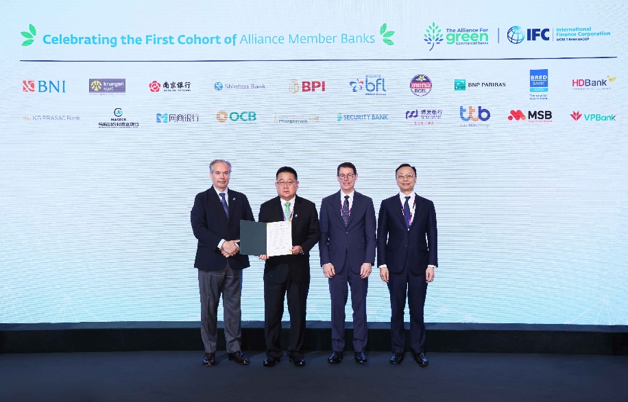 กรุงเทพฯ, 19 กันยายน 2568 : กรุงศรี (ธนาคารกรุงศรีอยุธยา จำกัด (มหาชน)) ตอกย้ำความมุ่งมั่นในการสนับสนุนการเงินเพื่อความยั่งยืน โดยการเข้าร่วมเป็นสถาบันการเงินกลุ่มแรกของ Alliance for Green Commercial Banks (The Alliance) ซึ่งเป็นโครงการระดับโลกที่ได้รับการริเริ่มโดยบรรษัทเงินทุนระหว่างประเทศ (IFC) สถาบันการเงินในเครือธนาคารโลก โดย พรสนอง ตู้จินดา (ที่ 2 จากซ้าย) กรรมการ ธนาคารกรุงศรีอยุธยา จำกัด (มหาชน) เป็นผู้แทนธนาคารในการประกาศเจตนารมณ์ร่วมผลักดันพันธกิจของโครงการ The Alliance ในการเร่งเปลี่ยนผ่านภาคการธนาคารสู่การเงินสีเขียว ในพิธีเปิดโครงการฯ ซึ่งจัดขึ้นเมื่อเร็วๆ นี้ที่งาน Hong Kong Green Week เขตเศรษฐกิจฮ่องกง โดยมีธนาคารพาณิชย์ชั้นนำกว่า 20 แห่งจากทั่วภูมิภาคเอเชียแปซิฟิกเข้าร่วม