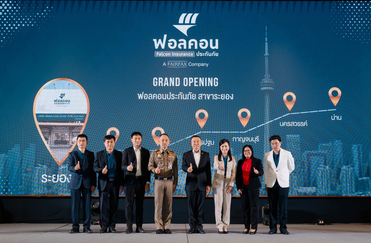 ด้าน คุณธนวิทย์ พิศาลชัยยงค์ ผู้อำนวยการฝ่ายบริหารกิจการสาขาและผู้จัดการอาวุโสสาขาระยอง บริษัท ฟอลคอนประกันภัย จำกัด (มหาชน) กล่าวว่า เรามีความพร้อมเต็มที่ในการให้บริการและให้คำแนะนำด้านประกันภัยที่เหมาะสมกับความต้องการของลูกค้าในแต่ละท้องถิ่น ผมและทีมงานสาขาทุกคนมีความตั้งใจอย่างยิ่งที่จะมอบบริการที่ดีที่สุด เราเชื่อมั่นในศักยภาพของทีมงาน รวมถึงระบบและเทคโนโลยีที่บริษัทลงทุนไป ซึ่งจะช่วยให้การทำงานมีประสิทธิภาพสูงสุด เราพร้อมดูแลลูกค้าทุกรายให้ได้รับความพึงพอใจ และสร้างความเชื่อมั่นในการบริการของฟอลคอนฯ เพื่อการเติบโตที่แข็งแกร่งและยั่งยืนในอนาคต