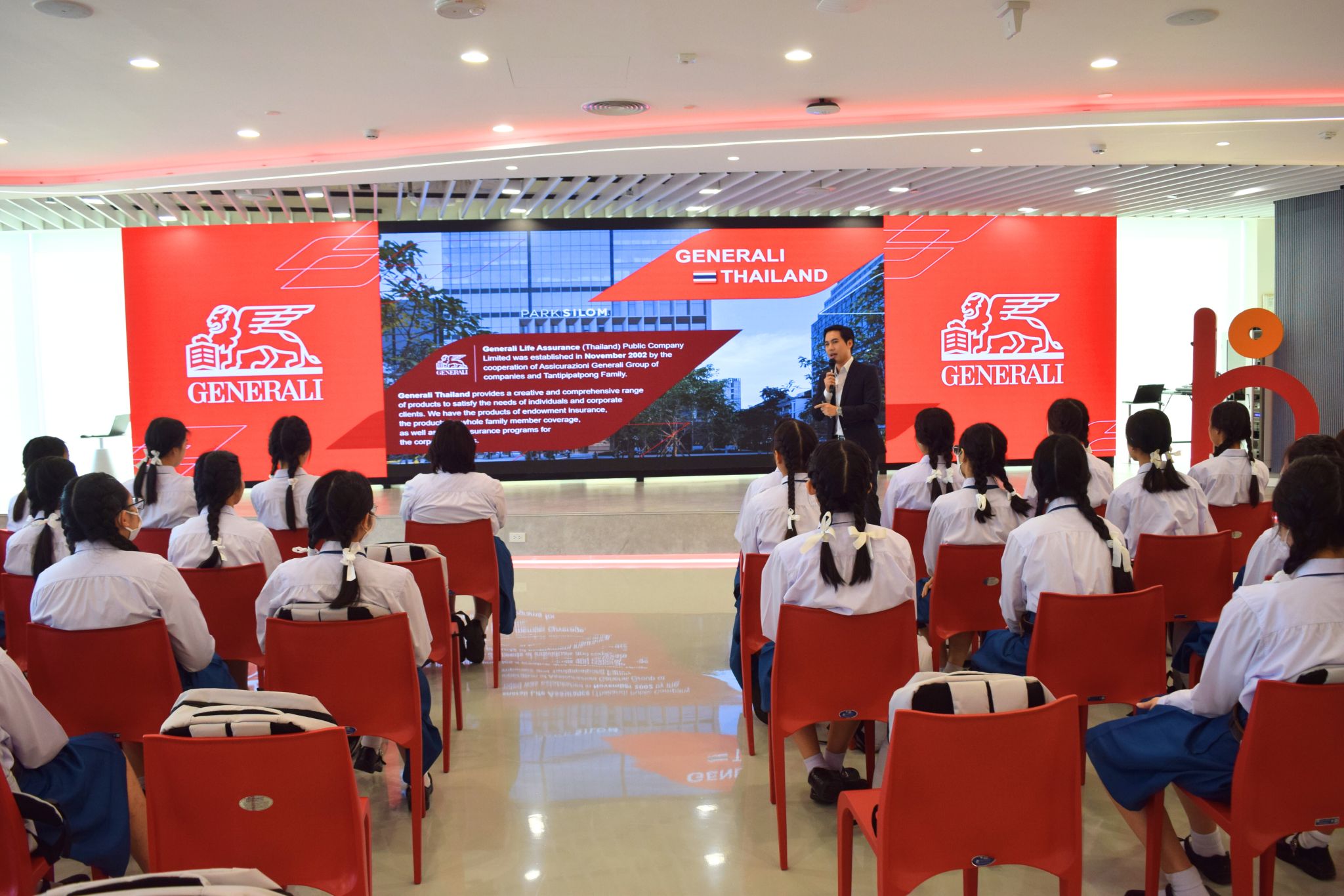 พร้อมทั้งยังได้แนะนำ และให้ความรู้ด้านการใช้นวัตกรรม AI และเครื่องมือดิจิทัลที่สามารถถูกนำมาใช้เพื่อสนับสนุนช่วยวิเคราะห์ วางแผน ป้องกันความเสี่ยง รวมถึงการใช้ชีวิตได้ตามเป้าหมาย นอกจากนี้ยังได้รับเกียรติจาก นางสาวกัญญภัค ตันติพิพัฒน์พงศ์ กรรมการ กรรมการตรวจสอบ และกรรมการสรรหาและพิจารณาค่าตอบแทน กลุ่มเจนเนอราลี่ ไทยแลนด์ ถ่ายทอดมุมมองและประสบการณ์ เพื่อสร้างแรงบันดาลใจให้เยาวชนมีความเชื่อมั่นที่จะออกแบบเส้นทางชีวิตของตนเอง