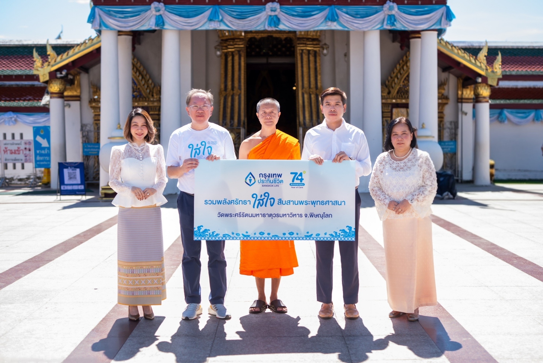 23 กันยายน 2568 : กรุงเทพประกันชีวิต จัดกิจกรรม “รวมพลังศรัทธา ใส่ใจพระพุทธศาสนา” เนื่องในโอกาสครบรอบ 74 ปี สานต่อพันธกิจขององค์กรในเรื่องการใส่ใจชุมชนและสังคม ภายใต้แนวคิด “ใส่ใจพุทธศาสนา เพื่อความสุขที่ยั่งยืน” ควบคู่กับความเข้มแข็งของศาสนา ชุมชน และสังคม โดยได้มอบสิ่งอำนวยความสะดวกในการจัดกิจกรรมศาสนพิธี งานสาธารณะประโยชน์ พร้อมจัดพิธีทำบุญถวายภัตตาหารเพลแด่พระสงฆ์ เพื่อสืบสานพระพุทธศาสนา และเสริมสร้างความเป็นสิริมงคล โดยมีผู้บริหาร พันธมิตร ทีมตัวแทน และลูกค้า เข้าร่วมงาน นอกจากนี้ยังได้จัดซุ้มอาหารและเครื่องดื่มโรงทาน สำหรับประชาชนทั่วไปในพื้นที่ และนักท่องเที่ยว จำนวน 600 คน และยังมอบต้นไม้เพื่อเพิ่มความร่มรื่น ณ วัดพระศรีรัตนมหาธาตุวรมหาวิหาร จังหวัดพิษณุโลก