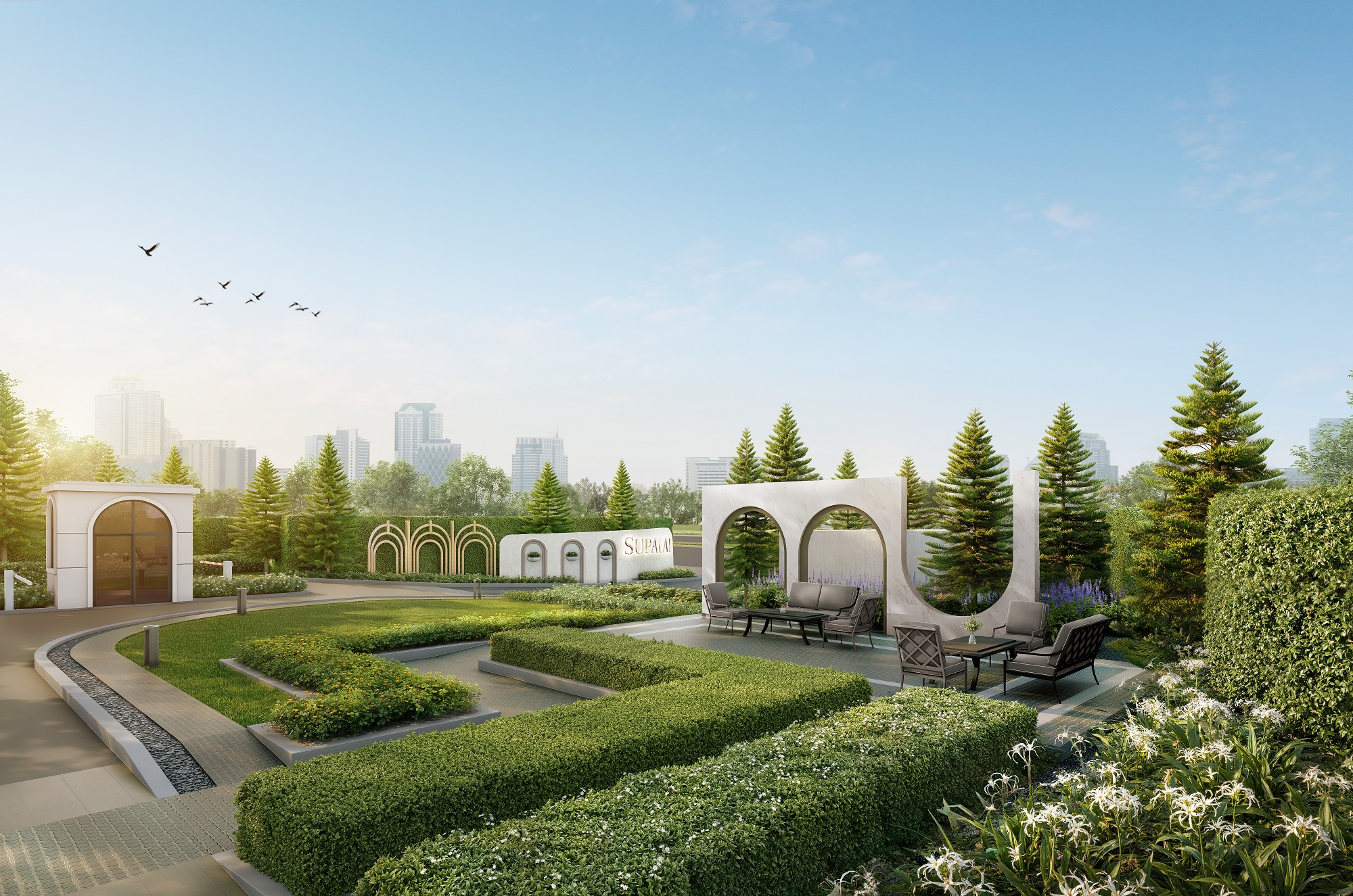 การออกแบบอาคารเน้นความยอดนิยม ดูดี มีรายละเอียดแบบ Modern Classic ผสมผสานเส้นสายที่สมดุลเข้ากับองค์ประกอบสไตล์หรูหรา อาทิ ซุ้มโค้ง ช่องแสงขนาดใหญ่ และรายละเอียดตกแต่งอย่างบัวผนัง และพื้นผิววัสดุในโทนสีสุภาพเรียบหรู เพื่อให้สอดคล้องกับแบรนด์และภาพลักษณ์ของผู้อยู่อาศัย โครงการประกอบด้วยห้องชุดเพื่อการพาณิชย์ 2 ยูนิต และห้องชุดเพื่อพักอาศัย 828 ยูนิต รูปแบบ 1 ถึง 4 ห้องนอน พื้นที่ใช้สอยตั้งแต่ 35–190 ตารางเมตร ในราคาเริ่มต้น 2.19-18 ล้านบาท โดดเด่นด้วยแปลนและฟังก์ชันของห้องพักถูกออกแบบตามทิศทางแสงและลม เพื่อให้แต่ละยูนิตสอดคล้องกับการใช้ชีวิตจริง อาทิ ยูนิตทิศเหนือ–ตะวันออก รับแสงอ่อน ไม่ร้อน เหมาะกับ ผู้ที่ใช้ชีวิตในห้องเป็นหลัก เน้นฟังก์ชันยืดหยุ่น แบ่งสัดส่วนใช้งานได้หลากหลายโดยไม่เน้นครัวหนัก