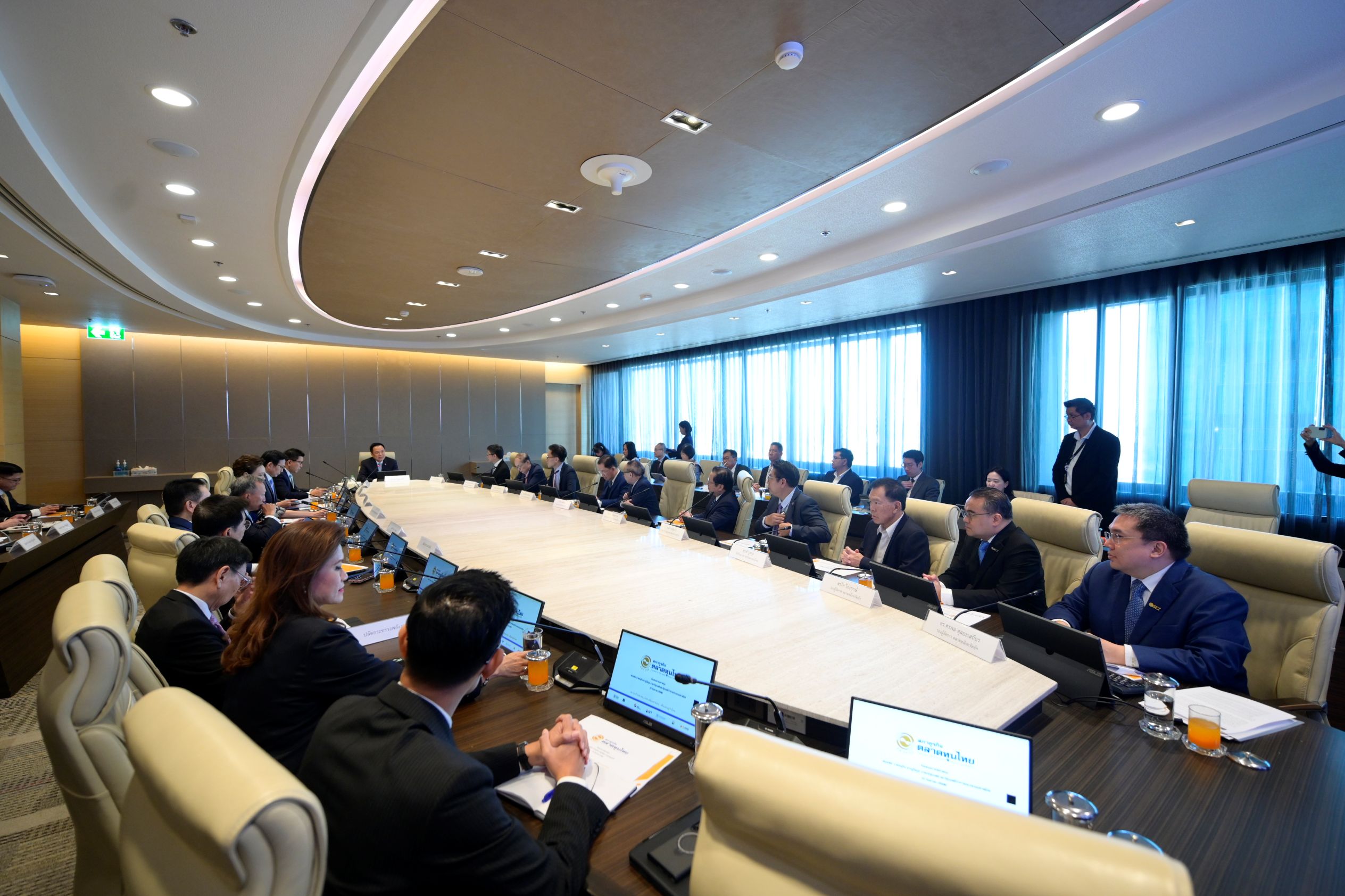 25 กันยายน 2568 : ดร.กอบศักดิ์ ภูตระกูล ประธานกรรมการ สภาธุรกิจตลาดทุนไทย พร้อมด้วยคณะกรรมการ ที่ปรึกษาผู้ทรงคุณวุฒิ และผู้บริหารองค์กรสมาชิก ให้การต้อนรับ นายอนุทิน ชาญวีรกูล นายกรัฐมนตรีและรัฐมนตรีว่าการกระทรวงมหาดไทย พร้อมด้วยคณะรัฐมนตรีเศรษฐกิจ ได้แก่ ดร. เอกนิติ นิติทัณฑ์ประภาศ รองนายกรัฐมนตรีและรัฐมนตรีว่าการกระทรวงการคลัง นายอรรถพล ฤกษ์พิบูลย์ รัฐมนตรีว่าการกระทรวงพลังงาน นางศุภจี สุธรรมพันธุ์ รัฐมนตรีว่าการกระทรวงพาณิชย์ และนายวรภัค ธันยาวงษ์ รัฐมนตรีช่วยว่าการกระทรวงการคลัง ณ อาคารตลาดหลักทรัพย์แห่งประเทศไทย เพื่อนำเสนอข้อเสนอมาตรการ Quick – Big Win เสริมพลังความเชื่อมั่นให้กับทั้งนักลงทุนและ ผู้ร่วมตลาด สอดคล้องกับนโยบายของรัฐบาล ตอกย้ำบทบาทตลาดทุนในการเป็นกลไกสำคัญในการสนับสนุนการพัฒนาเศรษฐกิจไทยอย่างยั่งยืน