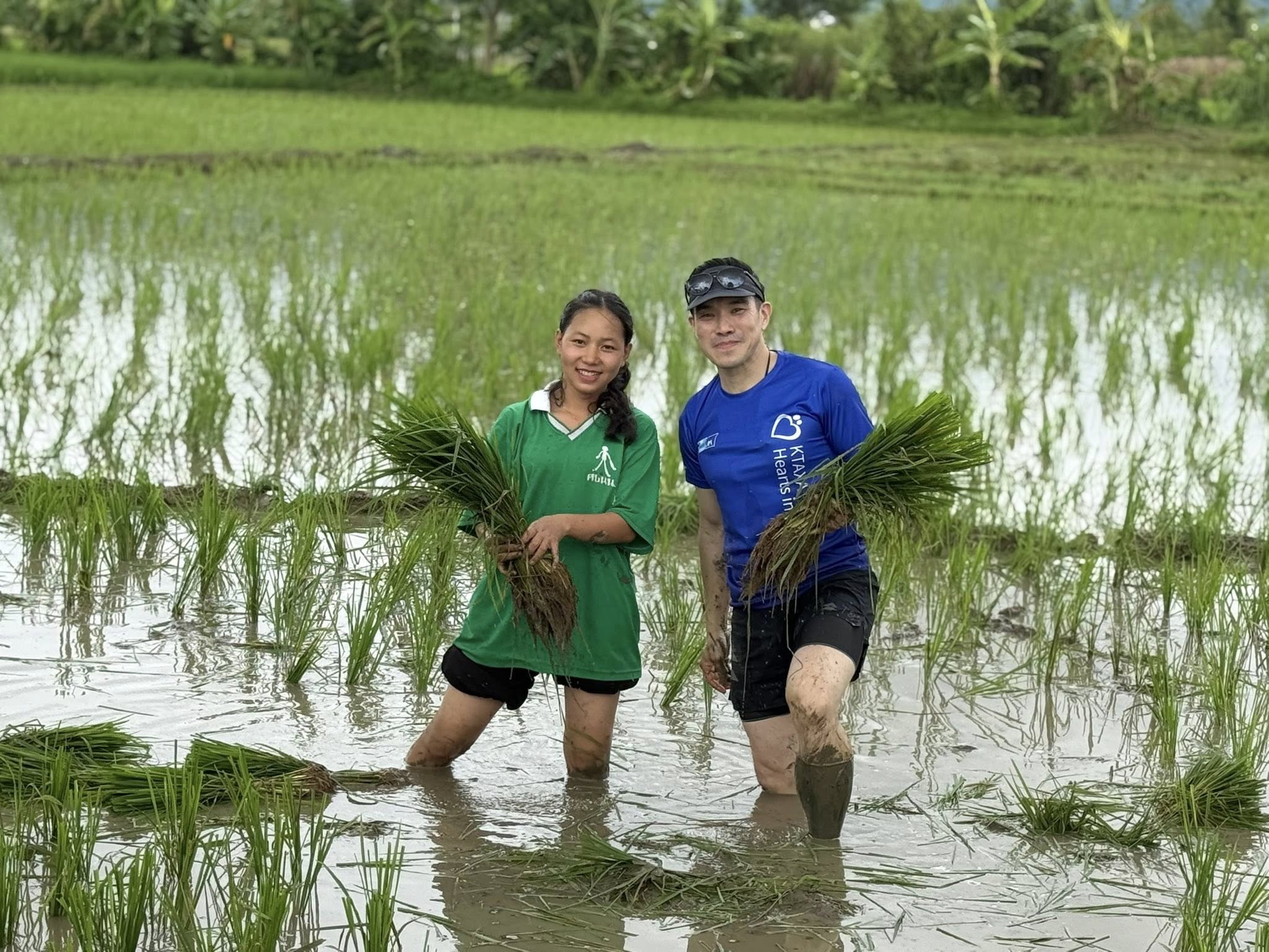 2 ตุลาคม 2568 : บมจ.กรุงไทย-แอกซ่า ประกันชีวิต นำโดย คุณณัฐพิสิษฐ์ ครุฑครองชัย ประธานเจ้าหน้าที่บริหาร (คนที่ 8 จากซ้าย แถวที่สาม) และ คุณบุปผาวดี โอวรารินท์ ประธานเจ้าหน้าที่บริหาร ฝ่ายการตลาด (คนที่ 9 จากซ้าย แถวที่สาม) นำทีมคณะผู้บริหาร พนักงาน และฝ่ายขายจิตอาสา ร่วมเดินหน้าสร้างความยั่งยืนให้กับชุมชน ผ่านกิจกรรมปลูกข้าว พร้อมทั้งมอบอุปกรณ์ไฟแสงสว่างระบบโซลาร์เซลล์และพันธุ์ปลานานาชนิด ภายใต้โครงการ “แผ่นดินทองเพื่อน้องๆ บ้านนานา ปีที่ 18” ณ. มูลนิธิพันธกิจเด็กและชุมชน บ้านนานา อ. แม่สาย จ. เชียงราย ซึ่งเป็นโครงการที่บริษัทฯ จัดทำอย่างต่อเนื่อง และช่วยสร้างรายได้ที่ยั่งยืน โดยสามารถช่วยสร้างผลผลิตข้าวให้แก่ชุมชนเพิ่มขึ้น จาก 2,000 ก.ก. ต่อปี เป็นมากกว่า 7,000 ก.ก. ต่อปี