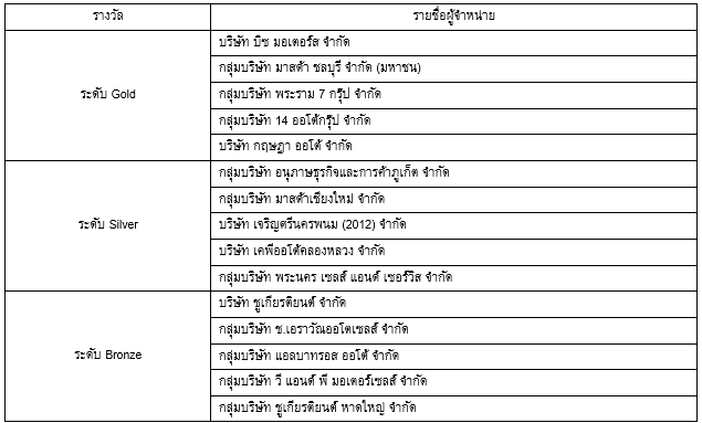 สำหรับรางวัลอังทรงเกียรติ Mazda Dealer of Excellence Awards 2024 แบ่งออกเป็น 3 ประเภท ประกอบด้วย รางวัลสูงสุด คือ ประเภท Gold จำนวน 5 รางวัล, รางวัลประเภท Silver จำนวน 5 รางวัล และรางวัลประเภท Bronze จำนวน 5 รางวัล นอกจากนี้ ภายในงานฯ ยังได้มีพิธีมอบรางวัล Guild Awards ประเภทฝ่ายขายและฝ่ายบริการหลังการขายยอดเยี่ยม ให้กับทีมงานของผู้จำหน่ายที่ปฏิบัติงานด้วยความเป็นเลิศอีกด้วย สิ่งเหล่านี้แสดงให้เห็นถึงความร่วมแรงร่วมใจของผู้จำหน่ายและทีมงาน ที่ทำงานร่วมกันอย่างแข็งขันภายใต้ปณิธานเดียวกัน “One Mazda One Team” เพื่อส่งมอบประสบการณ์ที่ดีที่สุดให้กับลูกค้าในประเทศไทย ภายใต้บรรยากาศแห่งความอบอุ่น เป็นกันเอง ซึ่งมีทั้งบุคลากรจากมาสด้า เซลส์ และผู้จำหน่ายมาสด้า ร่วมงานกันอย่างคับคั่ง