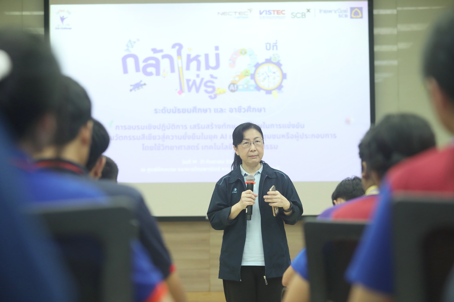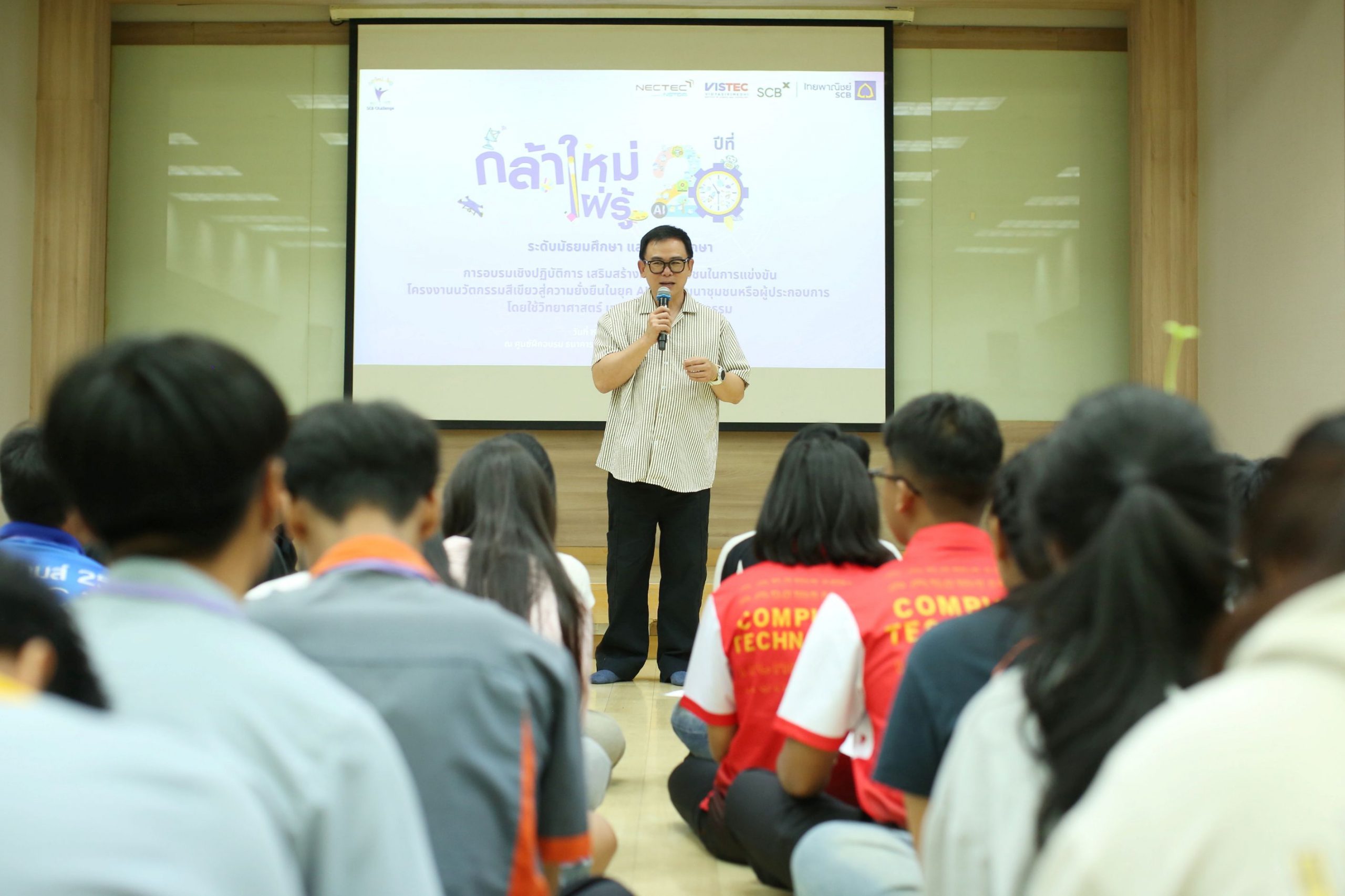 10 ตุลาคม 2568 : กลุ่มเอสซีบีเอกซ์ โดยธนาคารไทยพาณิชย์ จำกัด (มหาชน) จัดค่ายอบรมเชิงปฏิบัติการเตรียมความพร้อมและดึงศักยภาพให้เยาวชนสายวิทยาศาสตร์ระดับมัธยมศึกษาและอาชีวศึกษา ในการจัดทำโครงงาน “นวัตกรรมสีเขียวสู่ความยั่งยืนในยุค AI” ภายใต้โครงการ “กล้าใหม่…ใฝ่รู้” ปีที่ 20 เพื่อนำไปพัฒนาชุมชนหรือสถานประกอบการ โดยใช้วิทยาศาสตร์ เทคโนโลยี และนวัตกรรม โดยมี นายศักดิ์สิทธิ์ ปิติพงศ์สุนทร ผู้อำนวยการอาวุโส ผู้บริหารสายงานกิจกรรมเพื่อสังคม ธนาคารไทยพาณิชย์ ดร.กัลยา อุดมวิทิต รองผู้อำนวยการ สำนักงานพัฒนาวิทยาศาสตร์และเทคโนโลยีแห่งชาติ (สวทช.) ศ.ดร.ปรเมษฐ์ มนูญพงศ์ ผู้อำนวยการสำนักวิชาวิทยาศาสตร์และเทคโนโลยีสารสนเทศ สถาบันวิทยสิริเมธี (VISTEC)