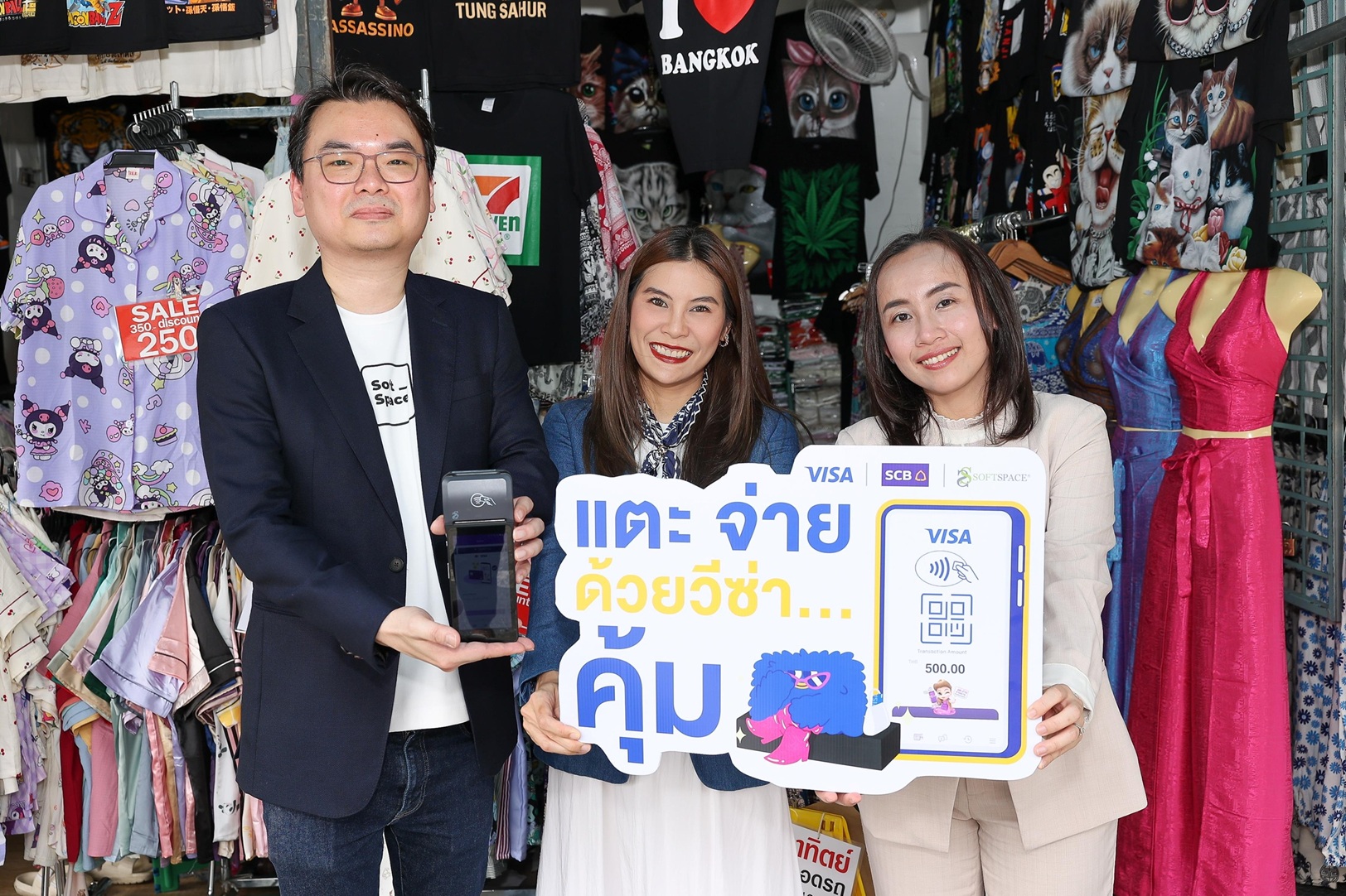 กรุงเทพฯ, 14 ตุลาคม 2568 : วีซ่า ผู้นำการให้บริการการชำระเงินดิจิทัลระดับโลกจับมือกับ ธนาคารไทยพาณิชย์ จำกัด (มหาชน) (SCB) และ Soft Space ฟินเทคชั้นนำ เดินหน้าขยายบริการ Tap to Pay ในย่านชอปปิงชื่อดังและคึกคักที่สุดของกรุงเทพมหานคร อย่าง ตลาดนัดจตุจักร และ ตลาดประตูน้ำ ความร่วมมือเชิงกลยุทธ์ครั้งนี้ มีเป้าหมายเพื่อยกระดับมาตรฐานการรับชำระเงินให้กับร้านค้ารายย่อย เพิ่มความสะดวกให้แก่นักท่องเที่ยว และช่วยกระตุ้นศักยภาพการ ใช้จ่าย เพื่อสนับสนุนการเติบโตทางเศรษฐกิจของประเทศไทย
