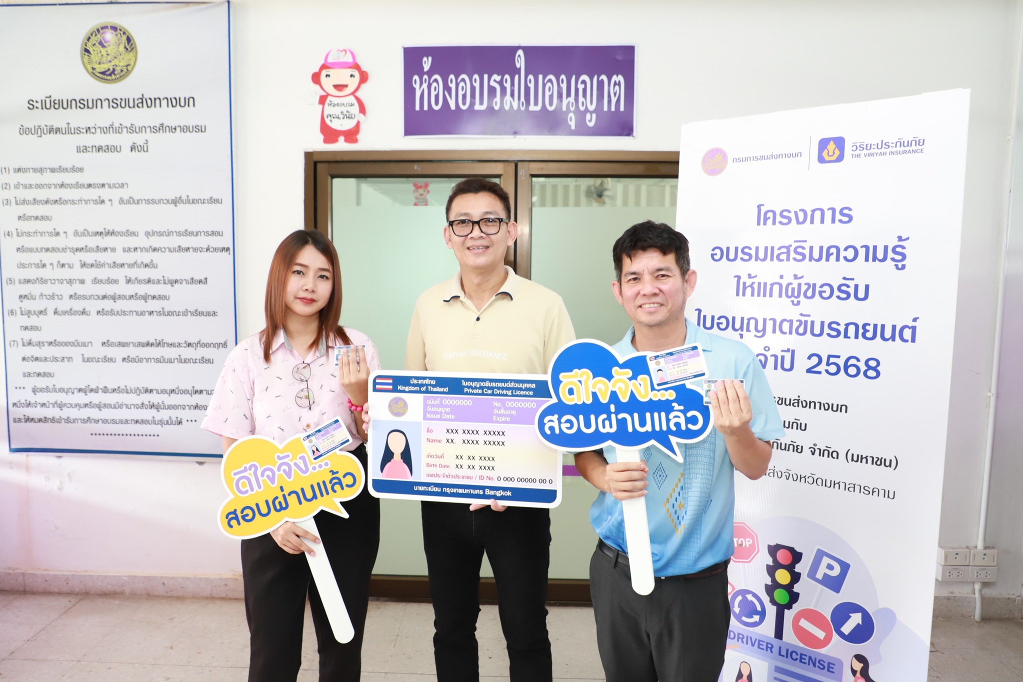 15 ตุลาคม 2568 : ณัฎฐ์ ศุภนคร ขนส่งจังหวัดมหาสารคาม และ อัครเดช น้อมชอบ รองผู้จัดการฝ่ายปฏิบัติการภาค 2 (ภาคตะวันออกเฉียงเหนือ) ด้านสาขา บริษัท วิริยะประกันภัย จำกัด (มหาชน) ร่วมเปิดโครงการ “อบรมเสริมความรู้ให้แก่ผู้ขอรับใบอนุญาตขับรถยนต์” ส่วนภูมิภาค รุ่นที่ 164 เพื่อส่งเสริมมาตรการป้องกันและลดอุบัติเหตุบนท้องถนน ที่มุ่งเน้นการยกระดับมาตรฐานผู้ขับขี่รถยนต์มือใหม่ พร้อมปลูกฝังวินัยจราจรและทัศนคติที่ดีในการขับขี่ ตลอดจนอำนวยความสะดวกแก่ผู้ที่ต้องการขอรับใบอนุญาตขับรถยนต์ โดยการอบรมครั้งนี้ มีผู้เข้าร่วมอบรมทั้งสิ้น จำนวน 111 ท่าน ณ โรงแรมเอสตะวัน ต.เกิ้ง อ.เมืองฯ จ.มหาสารคาม