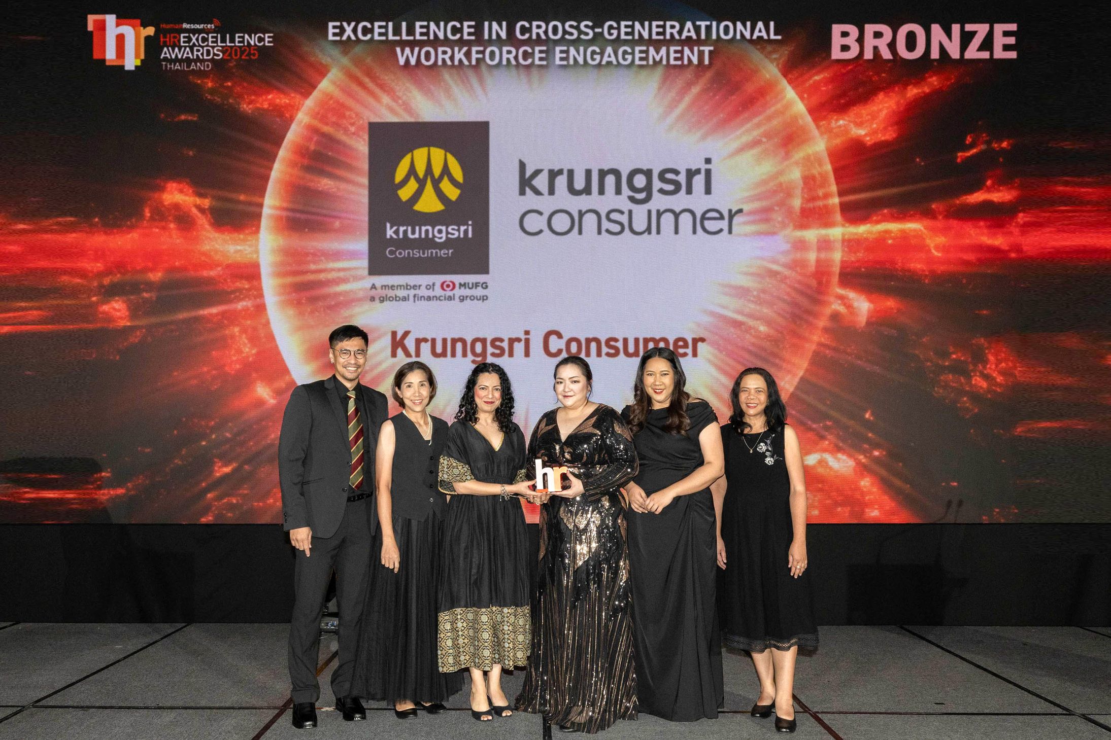 กรุงเทพฯ, 16 ตุลาคม 2568 : กรุงศรี คอนซูมเมอร์ ผู้ให้บริการบัตรเครดิตและสินเชื่อส่วนบุคคล นำโดย อุณา วัชโรบล (ที่ 4 จากซ้าย) ผู้ช่วยกรรมการผู้จัดการใหญ่ สายงานทรัพยากรบุคคล คว้า 2 รางวัลด้านทรัพยากรบุคคลจากเวที HR Excellence Awards 2025 Thailand ได้แก่ รางวัล Excellence in Cross-Generational Workforce Engagement ระดับ Bronze สะท้อนความเป็นเลิศด้วยการขับเคลื่อนวัฒนธรรมองค์กรจากการมีส่วนร่วมของเจนเนอเรชันที่หลากหลายซึ่งเป็นส่วนสำคัญในการต่อยอดนวัตกรรม และรางวัล Excellence in HR Innovation ระดับ Bronze ด้วยการนำนวัตกรรมเข้ามาใช้สร้างประสบการณ์พนักงานเพื่อความเป็นอยู่ที่ดี งานดังกล่าวจัดขึ้นโดยนิตยสาร Human Resources Online ณ โรงแรมแบงค็อก แมริออท เดอะ สุรวงศ์ กรุงเทพฯ เมื่อเร็ว ๆ นี้