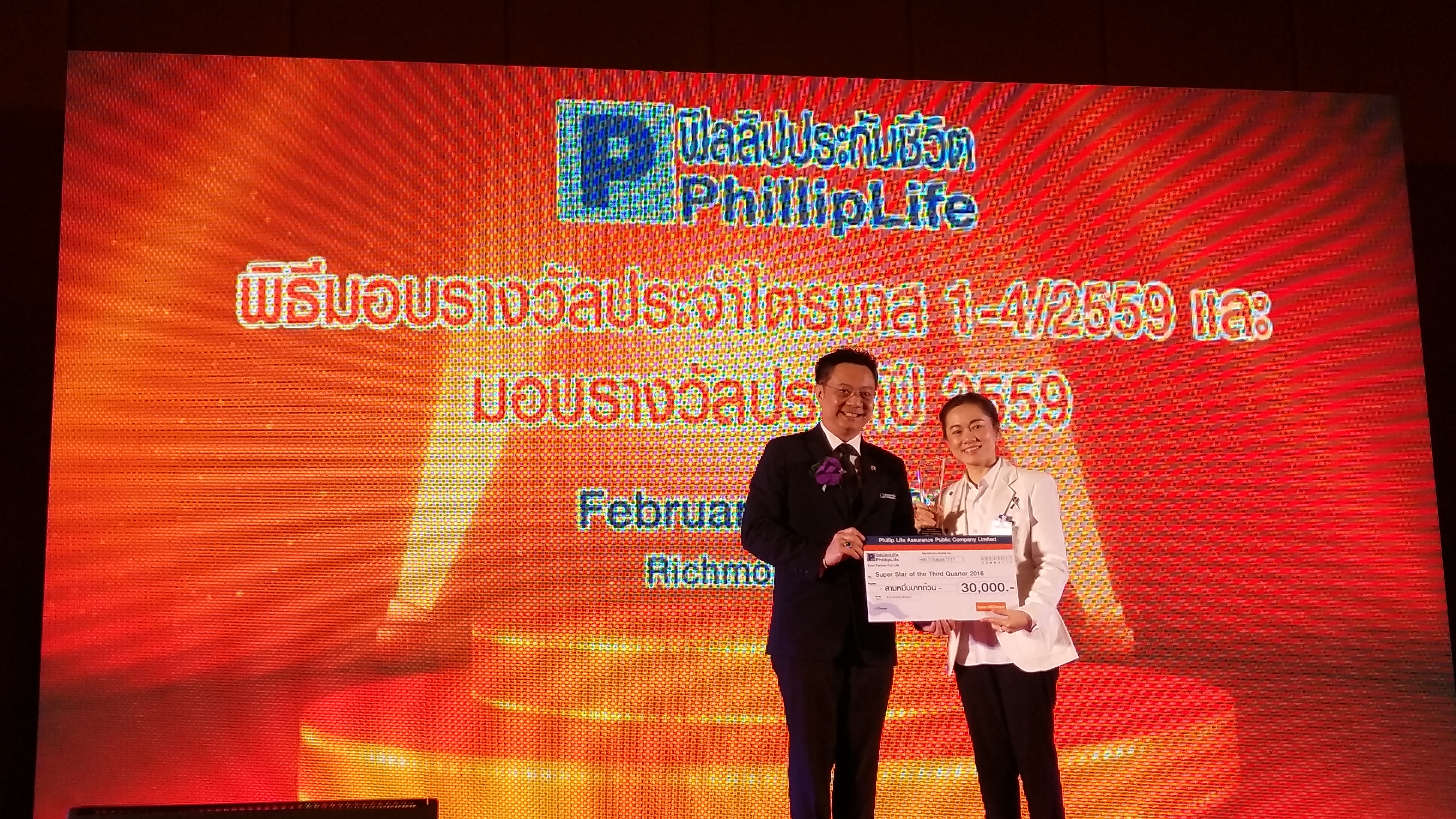 24 กุมภาพันธ์ 2560 : ปรัชญา กุลวณิชพิสิฐ กรรมการผู้จัดการ บริษัท ฟิลลิปประกันชีวิต จำกัด (มหาชน) เป็นประธานจัดงานพิธีมอบรางวัลประจำไตรมาส 1-4/2559 และมอบรางวัล ประจำปี 2559 เพื่อเชิดชูเกียรติให้แก่สุดยอดนักขายฟิลลิปไลฟ์ที่ผลิตผลงานเบี้ยประกันสูงสุด โดยมี ชวลิต ทองรมย์ ผู้ช่วยกรรมการผู้จัดการอาวุโส – ฝ่ายขาย กล่าวเปิดงาน และ ปีเตอร์ ฟู กรรมการ ให้เกียรติมอบรางวัล พร้อมร่วมแสดงความยินดีกับทัพนักขาย ณ โรงแรมริชมอนด์ จ.นนทบุรี![]()