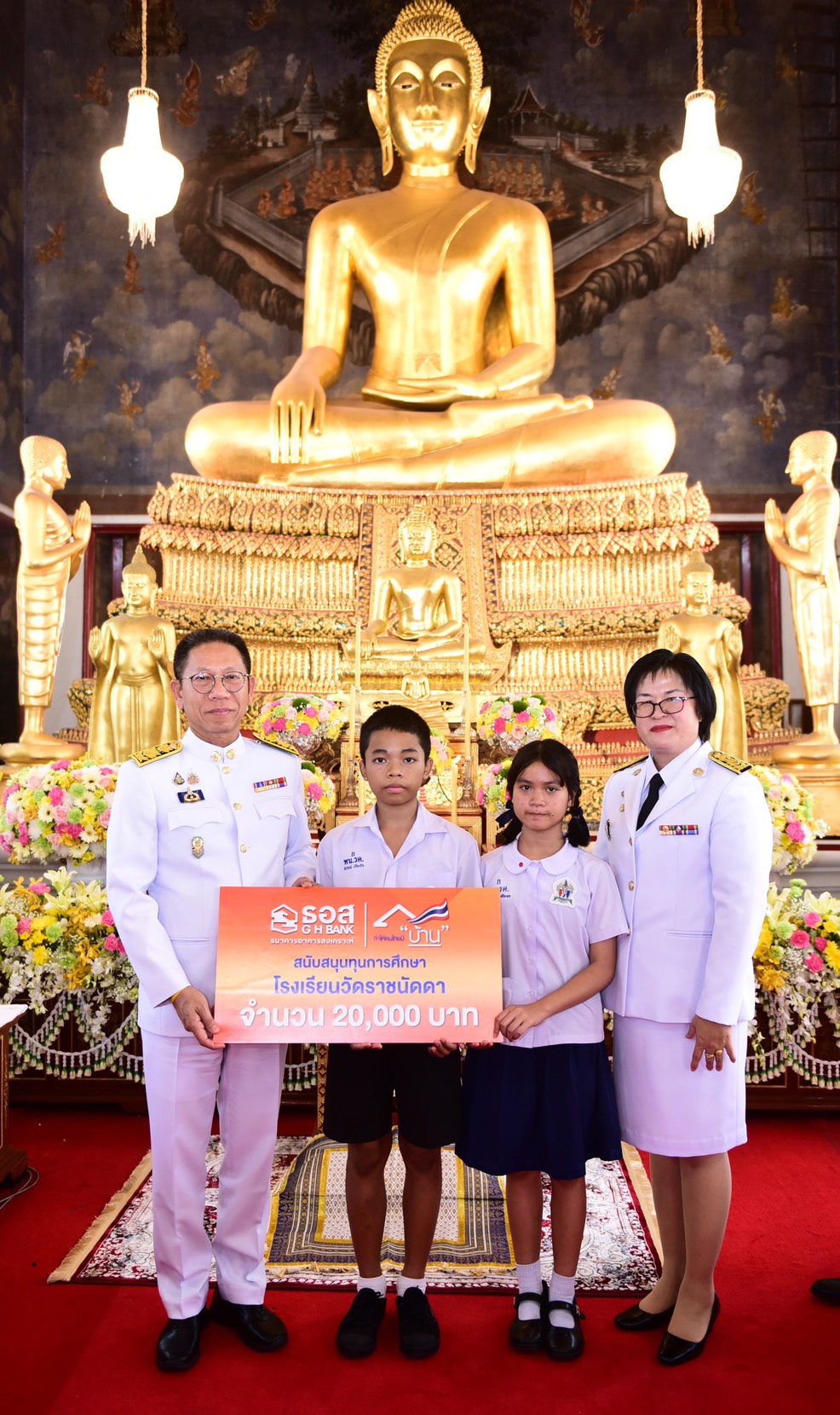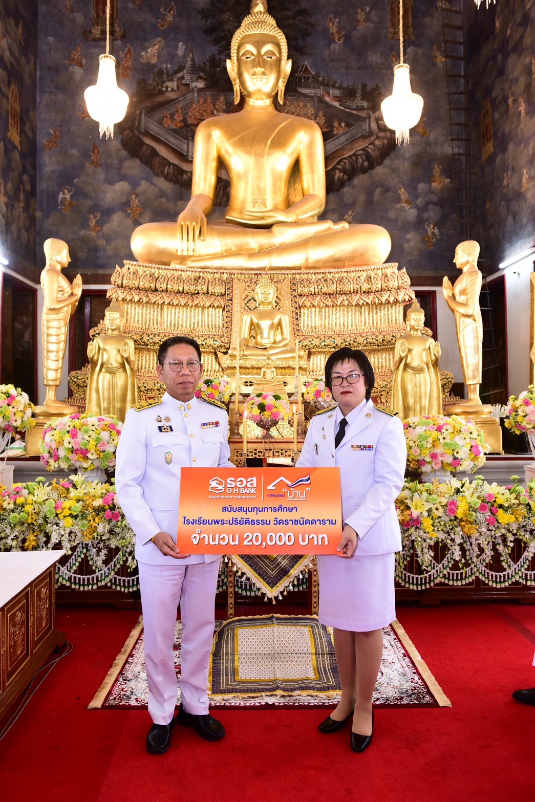โดยผู้บริหารและพนักงานธนาคาร รวมถึงลูกค้าประชาชนทั่วไป ที่มีจิตศรัทธาได้ร่วมถวายปัจจัยเพื่อสมทบองค์ ผ้าพระกฐิน เป็นจำนวนเงินรวมทั้งสิ้น 3,300,890 บาท ซึ่งปัจจัยที่ถวายนั้นจะนำไปบำรุงพระอารามหลวงให้มั่นคงถาวร เพื่อธำรงคุณค่าให้เป็นสมบัติทางวัฒนธรรมของชาติสืบไป พร้อมสืบทอดเจตนารมณ์ในการเป็นสถาบันการเงินเฉพาะกิจของรัฐที่ให้ความสำคัญในการทำนุบำรุงพระพุทธศาสนา อนุรักษ์วัฒนธรรมประเพณีไทยให้เจริญรุ่งเรือง สร้างกุศลอันยิ่งใหญ่และเกิดความเป็นสิริมงคลแก่ทุกฝ่ายที่มีส่วนร่วม นอกจากนี้ ธนาคารยังมอบเงินสนับสนุนทุนการศึกษา จำนวน 40,000 บาท ให้แก่โรงเรียนพระปริยัติธรรมวัดราชนัดดาราม และโรงเรียนวัดราชนัดดารามเพื่อช่วยเหลือเติมเต็มโอกาสทางการศึกษาให้แก่เยาวชนที่เรียนดีแต่ขาดแคลนทุนทรัพย์ด้วย