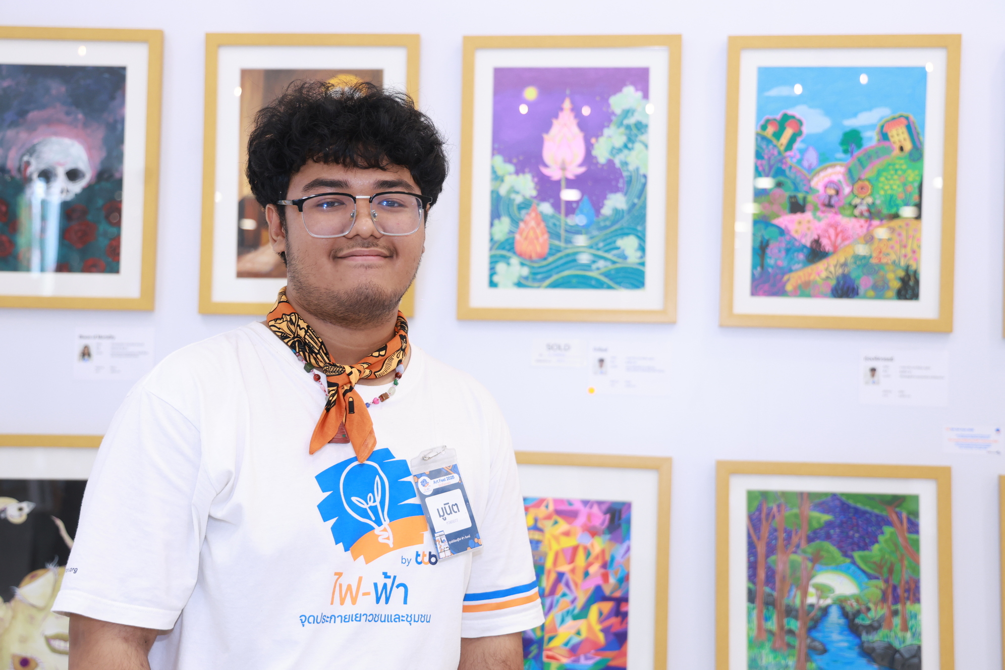 ด้าน น้องมูนิต-ธราธิป แสงวิเชียร เด็กไฟ-ฟ้า คลาสวาดเส้น ศูนย์เรียนรู้ไฟ-ฟ้าจันทน์ เผยความรู้สึกว่า การได้มาเรียนที่ศูนย์เรียนรู้ ไฟ-ฟ้าช่วยพัฒนาทักษะการวาดภาพที่ชอบให้ดียิ่งขึ้น นอกจากนี้ยังได้เพิ่มพูนทักษะด้านอื่น ๆ เช่น การคิดวางแผน การรับฟังและแลกเปลี่ยนความคิดเห็นกับเพื่อนๆ เพื่อพัฒนาผลงานของกันและกันให้ดียิ่งขึ้น โดยในทุกปีจะมีการจัดกิจกรรม fai-fah Art Fest ให้เราได้แสดงผลงานที่เรียนรู้มาตลอดปี เหมือนเป็นงานจบการศึกษาที่ทำให้งานของเราได้รับการมองเห็นและมีคนเห็นคุณค่าผลงานของเรา ซึ่งผลงานที่นำมาจัดแสดงในปีนี้ ต้องการถ่ายทอดเรื่องราวเกี่ยวกับ ความฝัน การผจญภัย และความรักที่มีต่อโลก เพื่อส่งต่อความรู้สึกดีๆ ให้ทุกคนได้รับกลับไป นอกจากนี้ในอนาคตยังอยากเป็นครู เพื่อนำสิ่งที่ได้เรียนรู้จากศูนย์เรียนรู้ไฟ-ฟ้าไปต่อยอดและแบ่งปันให้กับเด็กคนอื่นๆ ได้มีโอกาสเหมือนกับเรา