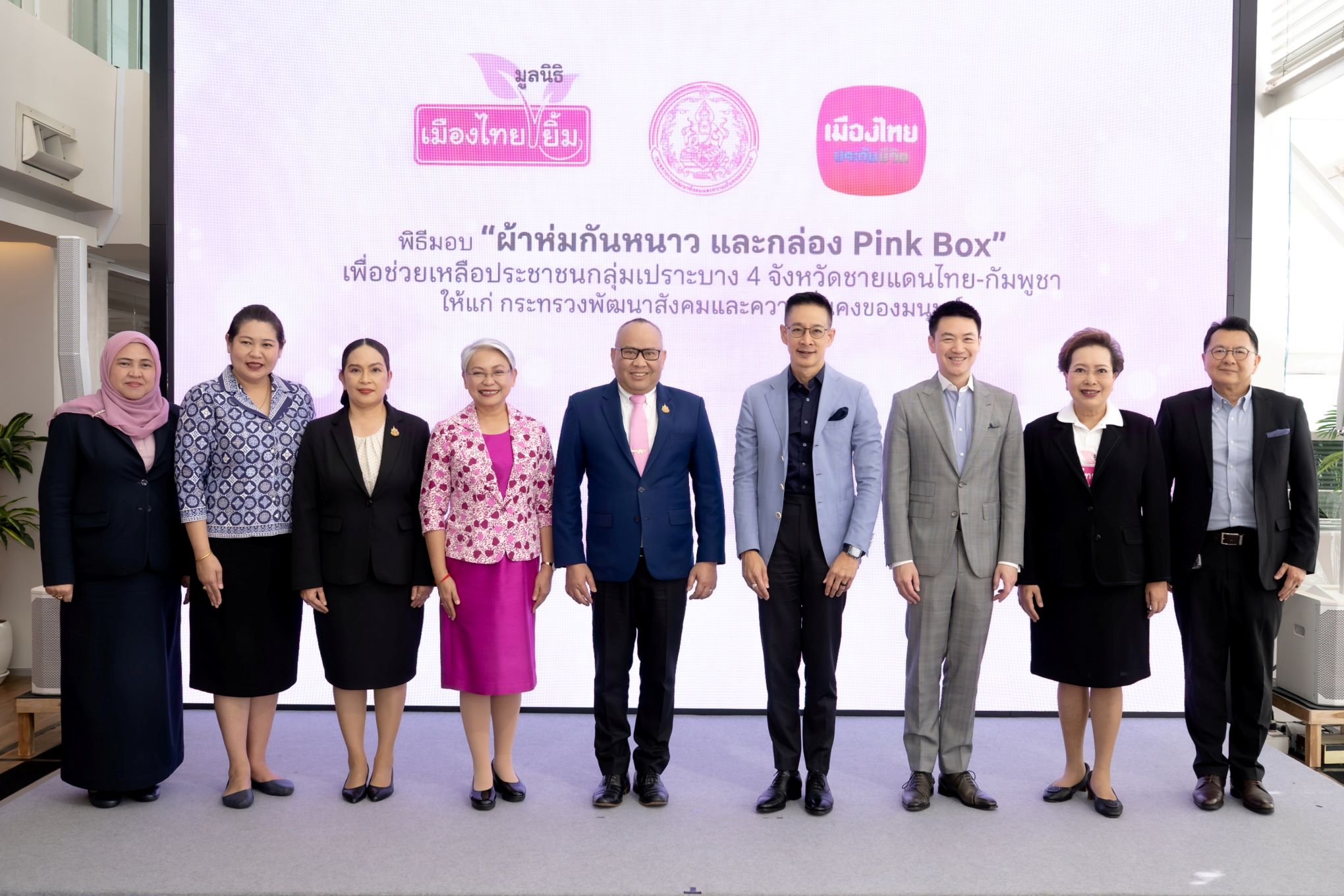 28 ตุลาคม 2568 : เมืองไทยประกันชีวิตและมูลนิธิเมืองไทยยิ้ม ร่วมเดินหน้าสานต่อภารกิจ “ส่งต่อความอบอุ่น สู่หัวใจคนไทย” มอบผ้าห่มกันหนาวและกล่อง “Pink Box” เพื่อช่วยเหลือประชาชนกลุ่มเปราะบางให้แก่กระทรวงการพัฒนาสังคมและความมั่นคงของมนุษย์ ภายใต้โครงการ “พม.ใกล้คุณ” ร่วมบรรเทาทุกข์และเตรียมพร้อมรับมือภัยหนาวในช่วงปลายปี สะท้อนเจตนารมณ์ขององค์กร ในการส่งต่อความห่วงใยและสร้างรอยยิ้มให้กับสังคมไทยอย่างยั่งยืน