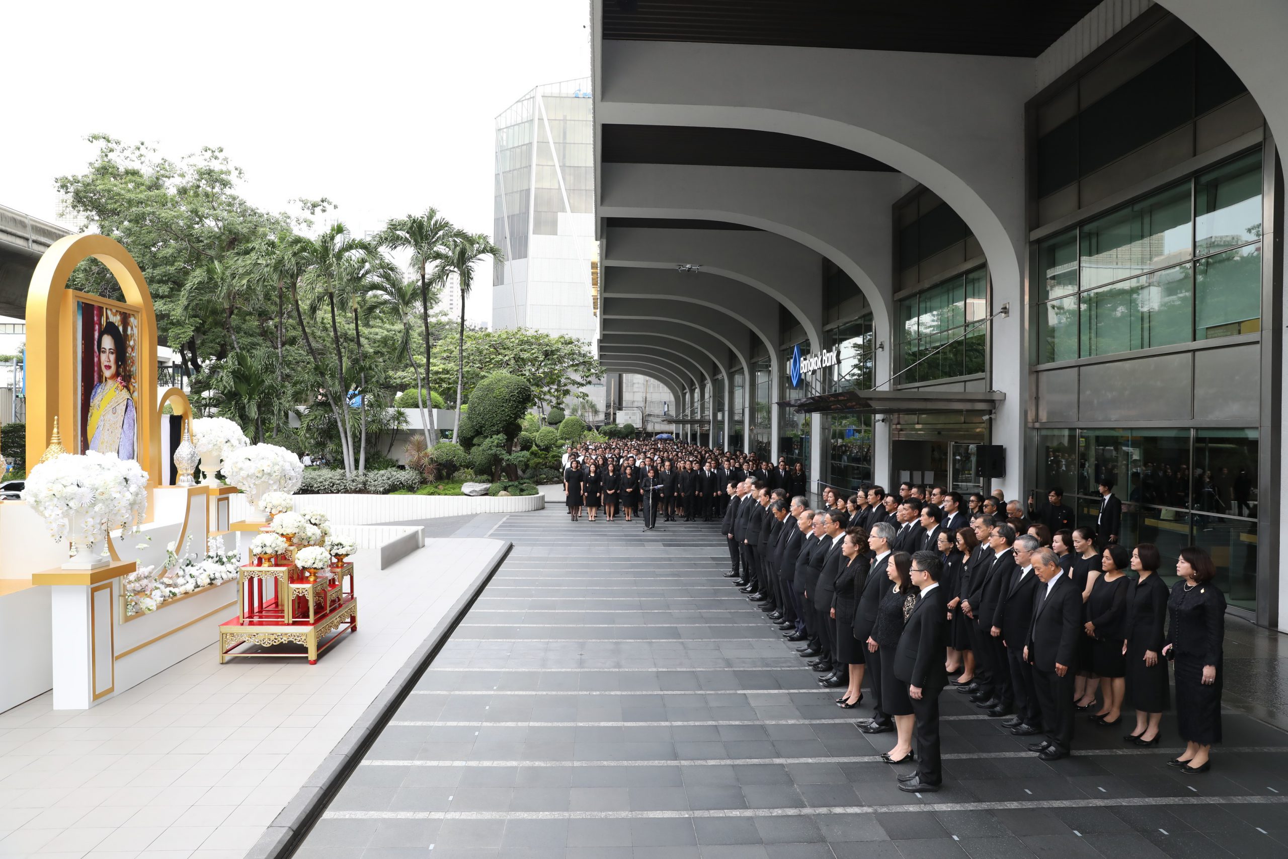 30 ตุลาคม 2568 : เป็นวันครบสัตตมวาร (7 วัน) นายสิงห์ ตังทัตสวัสดิ์ ประธานกรรมการบริหาร นายชาติศิริ โสภณพ นิช กรรมการผู้จัดการใหญ่ พร้อมด้วยคณะกรรมการธนาคาร ผู้บริหาร และพนักงานธนาคารกรุงเทพ จำกัด (มหาชน) ร่วมในพิธีแสดงความอาลัยต่อหน้าพระฉายาลักษณ์ สมเด็จพระนางเจ้าสิริกิติ์ พระบรมราชินีนาถ พระบรมราชชนนีพันปีหลวง โดยมีตัวแทนพนักงานอ่านบทกวี ‘ฝากฟ้าดิน’ แสดงความอาลัย ประพันธ์โดย นายเนาวรัตน์ พงษ์ไพบูลย์ ศิลปินแห่งชาติ ที่ปรึกษาศูนย์สังคีตศิลป์ ฝ่ายการประชาสัมพันธ์ จากนั้น กรรมการผู้จัดการใหญ่ ได้กล่าวนำแสดงความอาลัย และนำยืนสงบนิ่งเป็นเวลา 93 วินาที ณ ลานด้านหน้าอาคาร ธนาคารกรุงเทพสำนักงานใหญ่ ถนนสีลม