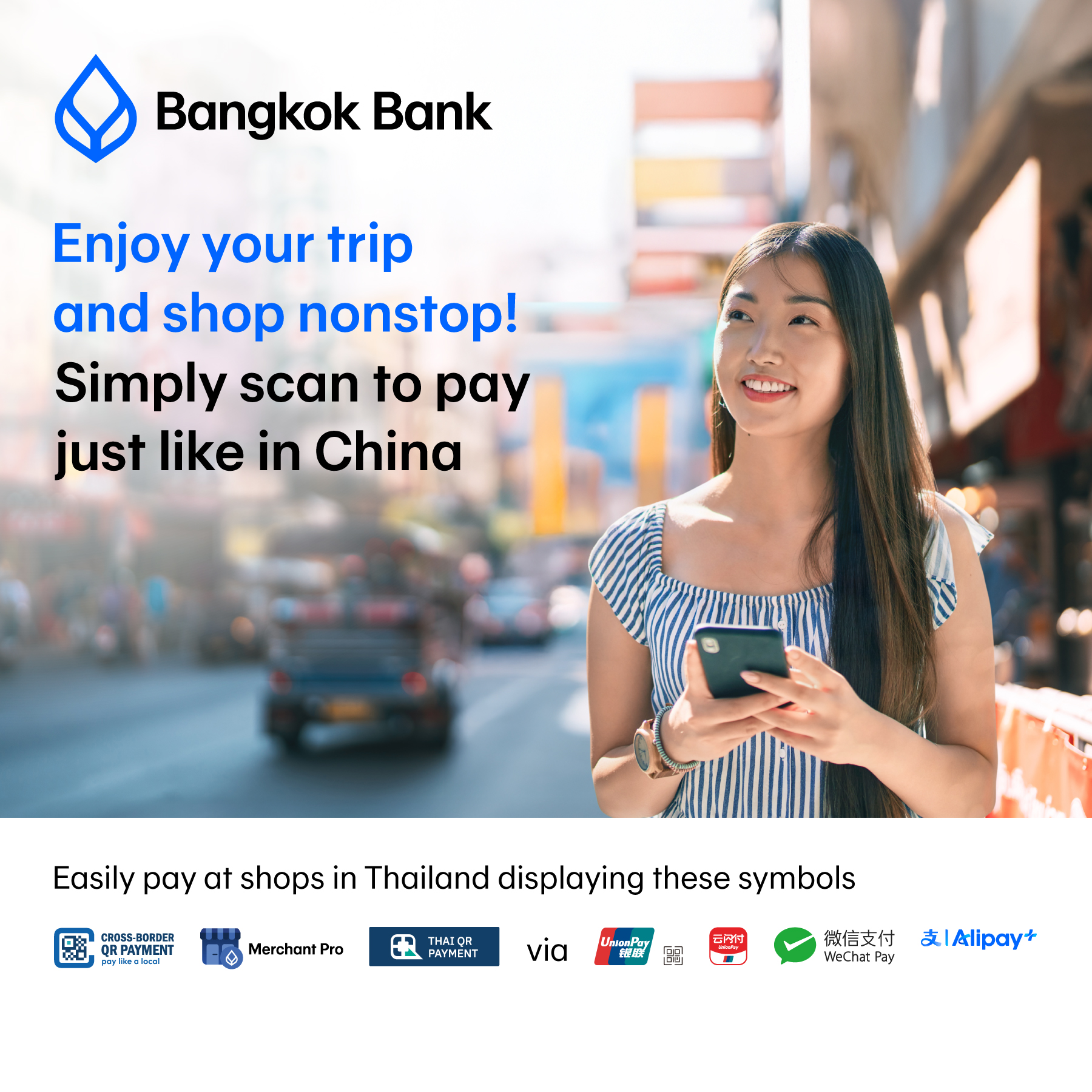 31 ตุลาคม 2568 : นางสาวสุญาณี ภูริปัญญวานิช ผู้ช่วยผู้จัดการใหญ่ ธนาคารกรุงเทพ จำกัด (มหาชน) กล่าวว่า ธนาคารกรุงเทพในฐานะ ‘ธนาคารชั้นนำระดับภูมิภาค’ ที่มุ่งมั่นพัฒนาบริการ และแพลตฟอร์มดิจิทัลอย่างต่อเนื่อง เพื่อตอบโจทย์ไลฟ์สไตล์ทุกธุรกรรมการเงินของลูกค้า ล่าสุดได้เปิดให้บริการรับชำระเงินระหว่างประเทศด้วย QR Code (Cross-Border QR Payment) ให้แก่ชาวจีนที่เดินทางมาประเทศไทย( Inbound ) เพียงใช้แอปพลิเคชันจากจีน ได้แก่ UnionPay, Weixin Pay และ Alipay ก็สามารถสแกน PromptPay QR Code เพื่อชำระค่าสินค้าและบริการ ณ ร้านค้าธนาคารกรุงเทพกว่า 1.9 ล้านร้านค้าทั่วประเทศไทย ตั้งแต่วันที่ 30 ตุลาคม 2568 เป็นต้นไป