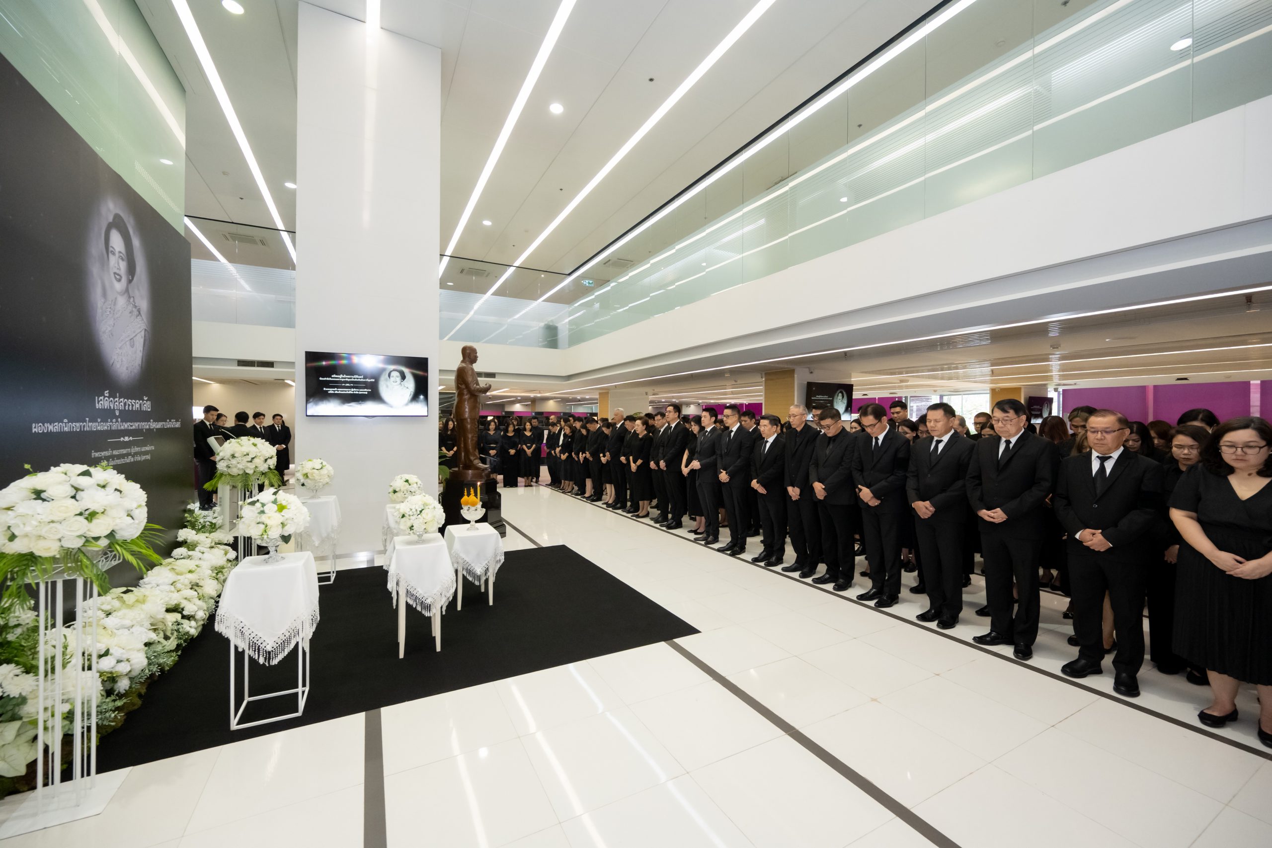 ในโอกาสนี้ นายสาระ ล่ำซำ ประธานเจ้าหน้าที่บริหาร ได้กล่าวถวายความอาลัย พร้อมกันนี้ คณะผู้บริหารและพนักงาน ได้พร้อมใจกันยืนสงบนิ่ง และลงนามในสมุดถวายความอาลัย เพื่อแสดงความจงรักภักดี และน้อมรำลึกถึงพระมหากรุณาธิคุณที่ทรงมีต่อพสกนิกรชาวไทย ตลอดระยะเวลาที่ทรงปฏิบัติ พระราชกรณียกิจน้อยใหญ่นานัปการ ตามที่ทรงตั้งพระราชปณิธานอย่างแน่วแน่ ในการบำเพ็ญ พระราชกรณียกิจมาตลอดพระชนม์ชีพ เพื่อบำบัดทุกข์บำรุงสุข แก่พสกนิกรชาวไทยในทุกหนแห่ง อีกทั้ง ยังทรงส่งเสริมงานด้านศิลปวัฒนธรรม หัตถศิลป์ไทย ตลอดจนการอนุรักษ์ธรรมชาติและสิ่งแวดล้อม รวมทั้งการพัฒนาคุณภาพชีวิตของประชาชนในถิ่นทุรกันดาร ซึ่งสะท้อนถึงพระเมตตาของ สมเด็จพระนางเจ้าสิริกิติ์ พระบรมราชินีนาถ พระบรมราชชนนีพันปีหลวง สมดังพระราชสมัญญา “พระแม่ของแผ่นดิน”