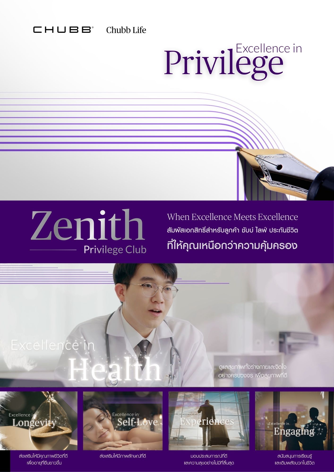 3 พฤศจิกายน 2568 : คุณอลิสา อารีพงษ์ ประธานเจ้าหน้าที่บริหาร บริษัท ชับบ์ ไลฟ์ ประกันชีวิต จำกัด (มหาชน) กล่าวว่า บริษัทฯ ให้ความสำคัญในการสร้างสรรค์สิ่งที่ดีที่สุดให้แก่ลูกค้าของเรา ไม่เพียงแต่ความคุ้มครอง และการวางแผนทางการเงินที่ดีที่สุดเท่านั้น หากแต่ยังให้ความสำคัญในการดูแลลูกค้าให้ได้รับการบริการที่หลากหลายสอดคล้องกับไลฟ์สไตล์ เพื่อส่งเสริมให้ลูกค้ามีความสุขในการใช้ชีวิตตลอดระยะเวลาเอาประกันภัยด้วย จึงเปิดตัวโปรแกรมสิทธิพิเศษ “Zenith Privilege Club” ภายใต้แนวคิด “When Excellence Meets Excellence” ตอกย้ำจุดยืนในการทำงานที่ยึดความต้องการของลูกค้าเป็นหลัก (Customer First)
