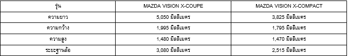 ข้อมูลเกี่ยวกับ MAZDA VISION X-COUPE และ MAZDA VISION X-COMPACT