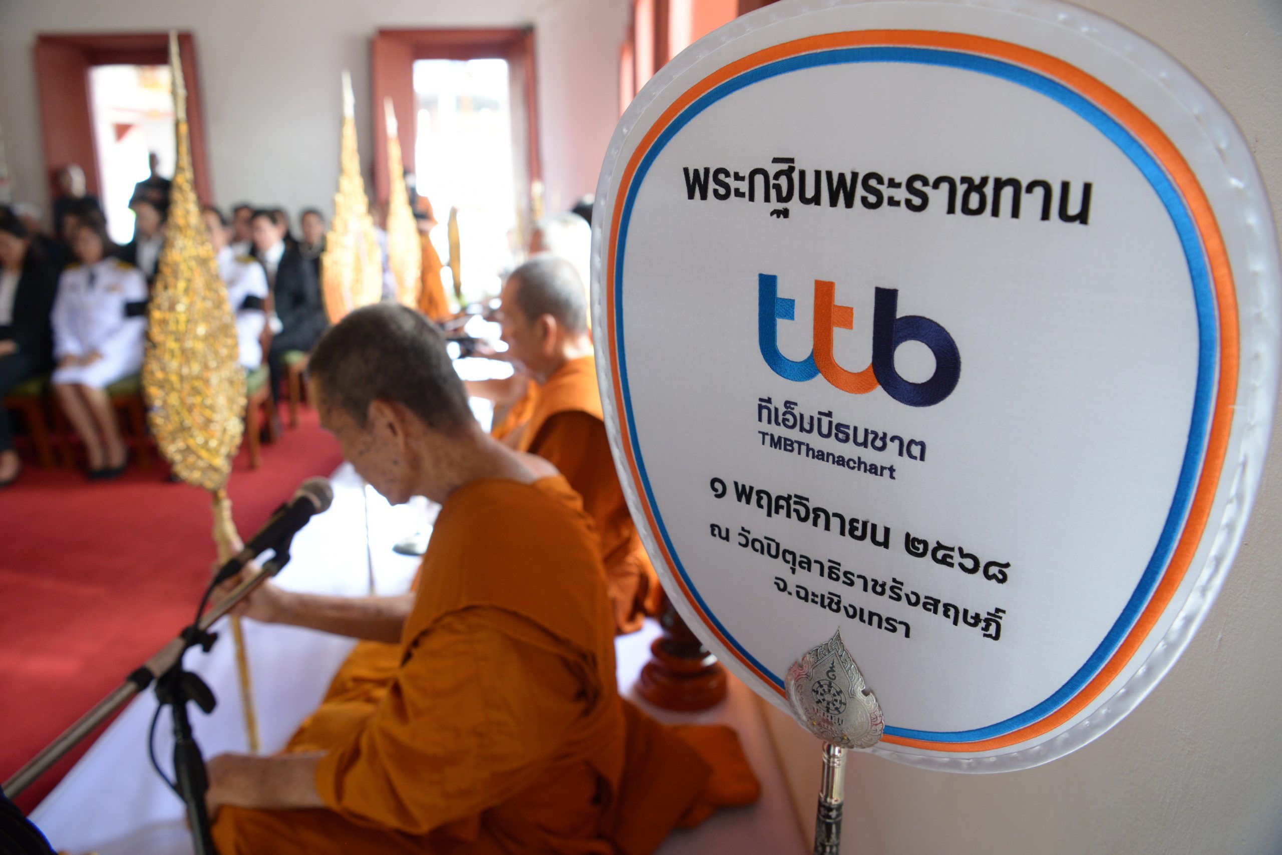พิธีถวายผ้าพระกฐินพระราชทานในครั้งนี้มี นายปิติ ตัณฑเกษม ประธานเจ้าหน้าที่บริหาร ทีเอ็มบีธนชาต เป็นประธานในพิธี พร้อมด้วยผู้บริหาร พนักงาน และลูกค้าผู้มีจิตศรัทธา เข้าร่วมพิธีอย่างพร้อมเพรียง เพื่อร่วมทำนุบำรุงพระพุทธศาสนาและสืบสานวัฒนธรรมประเพณีอันดีงามของไทย กิจกรรมดังกล่าวถือเป็นการส่งต่อพลังมหากุศลครั้งใหญ่ โดยธนาคารและผู้ร่วมงานได้ร่วมกันถวายเงินบริจาคจำนวนทั้งสิ้น 14,088,600.09 บาท เพื่อทำนุบำรุงพระอารามหลวง โดยทางวัดได้นำเงินบริจาคส่วนหนึ่งมอบให้แก่โรงเรียน 3 แห่งในจังหวัดฉะเชิงเทรา เพื่อสนับสนุนทุนการศึกษา และมอบให้แก่องค์กรสาธารณกุศลรวมทั้งสิ้น 488 องค์กร ผ่านเว็บไซต์ “ปันบุญ” (www.punboon.org) ซึ่งเป็นสื่อกลางในการบริจาคที่เชื่อมโยงผู้มีจิตศรัทธากับองค์กรสาธารณกุศล เพื่อส่งต่อ “การให้” ไปยังผู้ที่ต้องการความช่วยเหลือ