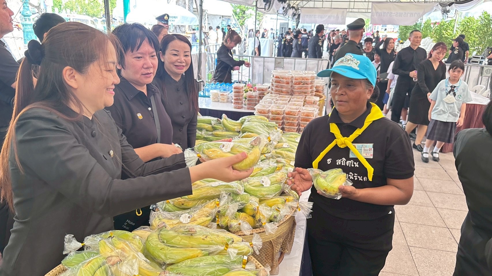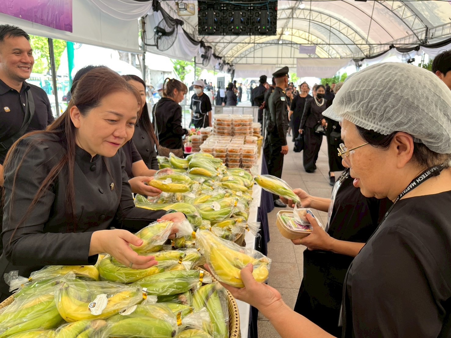 10 พฤศจิกายน 2568 : ธนาคารเพื่อการเกษตรและสหกรณ์การเกษตร (ธ.ก.ส.) สนับสนุนกล้วยหอมคุณภาพ จากวิสาหกิจชุมชนกล้วยหอมทองตำบลสุขไพบูลย์ จังหวัดนครราชสีมา จำนวนกว่า 2,000 ลูก ให้แก่โรงทานพระราชทาน สำนัก พระราชวัง เพื่อบริการแก่ประชาชนที่เข้าร่วมพระพิธีธรรมสวดพระอภิธรรมพระบรมศพ สมเด็จพระนางเจ้าสิริกิติ์ พระบรมราชินีนาถ พระบรมราชชนนีพันปีหลวง เพื่อร่วมเป็นส่วนหนึ่งในการถวายความอาลัยด้วยความสำนึกใน พระมหากรุณาธิคุณอย่างหาที่สุดมิได้ โดยมีผู้แทนจากสำนักพัฒนาลูกค้าสถาบันและองค์กรชุมชน และสำนักงาน ธ.ก.ส. จังหวัดนครราชสีมา เข้าร่วมกิจกรรมในครั้งนี้ เมื่อวันที่ 9 พฤศจิกายน 2568 ณ บริเวณท้องสนามหลวง กรุงเทพมหานคร