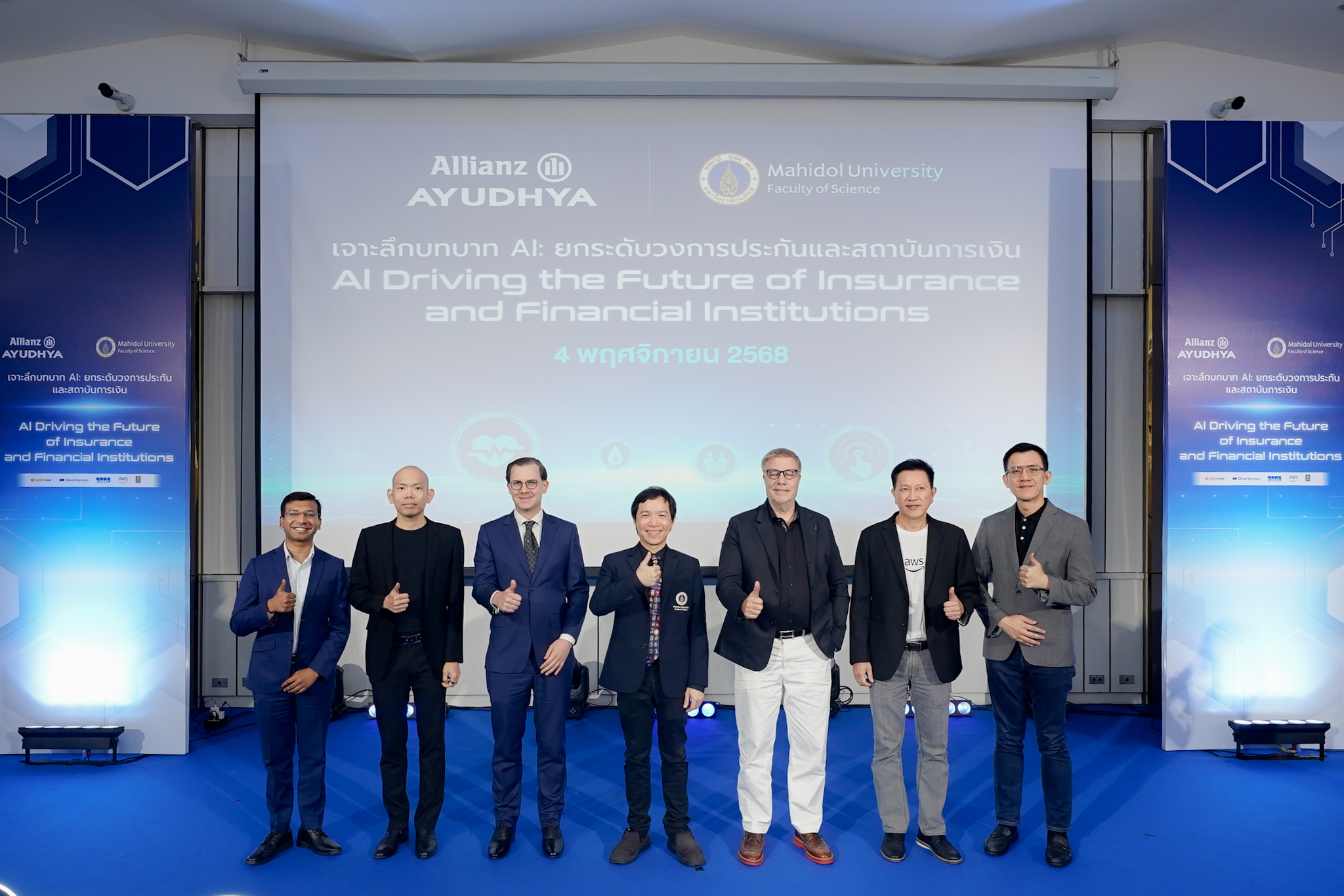 14 พฤศจิกายน 2568 : อลิอันซ์ อยุธยา ประกันชีวิต ร่วมกับ คณะวิทยาศาสตร์ มหาวิทยาลัยมหิดล จัดงานเสวนา “AI Driving the Future of Insurance and Financial Institutions” เปิดเวทีให้ผู้เชี่ยวชาญชั้นนำในแวดวงประกันภัยและการเงินทั้งจากประเทศไทยและต่างประเทศ มาร่วมถอดรหัส “พลังของ AI” ที่จะเข้ามาเปลี่ยนโฉมอุตสาหกรรมการเงินและประกันในอนาคต ภายในงานได้รับเกียรติจาก คุณอิทธิพัทธ์ ลิมป์มณีรักษ์ หุ้นส่วน และที่ปรึกษาด้าน Data, AI & Analytics เคพีเอ็มจี ประเทศไทย ร่วมบรรยายพิเศษในหัวข้อ “ผลกระทบของ AI ต่อโลกการทำงานและองค์กรต่าง ๆ” พร้อมเผยถึงทักษะสำคัญของคนยุคใหม่ในโลกที่ขับเคลื่อนด้วยเทคโนโลยี AI