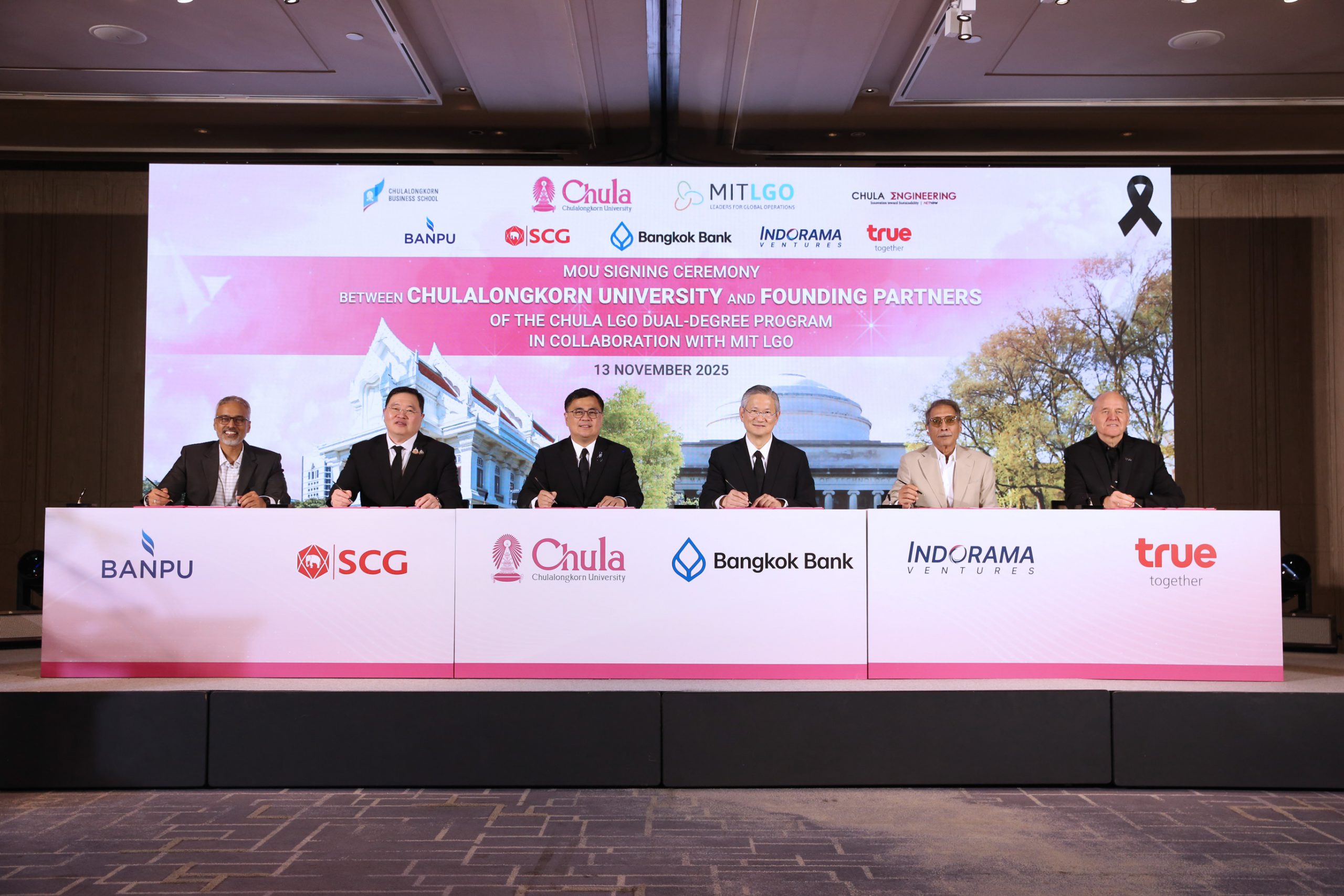 14 พฤศจิกายน 2568 : ชาติศิริ โสภณพนิช กรรมการผู้จัดการใหญ่ ธนาคารกรุงเทพ จำกัด (มหาชน) ลงนามร่วมกับ ศาสตราจารย์ ดร.วิเลิศ ภูริวัชร อธิการบดี จุฬาลงกรณ์มหาวิทยาลัย ในบันทึกข้อตกลงความร่วมมือ (MOU) เพื่อร่วมมือกันพัฒนาและสนับสนุน “หลักสูตรวิทยาศาสตรมหาบัณฑิต สหสาขาวิชานวัตวิศวกรรมเพื่อความยั่งยืน และหลักสูตรบริหารธุรกิจมหาบัณฑิต สาขาวิชาบริหารธุรกิจ (Chula LGO)”