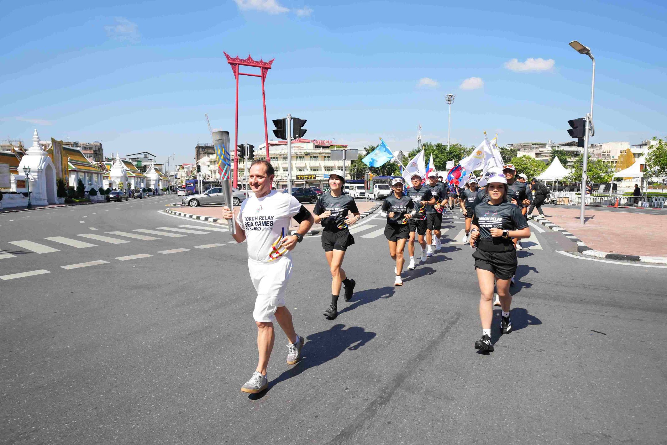 ตลอดเส้นทางวิ่งคบเพลิง เต็มไปด้วยเสียงเชียร์จากชุมชนท้องถิ่น ผู้ประกอบการร้านค้า และนักท่องเที่ยว สร้างบรรยากาศที่คึกคักและน่าประทับใจทั่วกรุงเทพฯ ในช่วงเช้าวันเดียวกัน พิธีเปิดได้จัดขึ้นอย่างเป็นทางการ โดยมีนายอรรถกร ศิริลัทธยากร รัฐมนตรีว่าการกระทรวงการท่องเที่ยวและกีฬา เป็นประธานในพิธีวิ่งอัญเชิญไฟพระฤกษ์ ร่วมด้วย ดร.ก้องศักด ยอดมณี ผู้ว่าการการกีฬาแห่งประเทศไทย รวมถึงผู้บริหาร นักกีฬาทีมชาติ และบุคคลสำคัญจากหลายภาคส่วน ก่อนที่ดร.ชัชชาติ สิทธิพันธุ์ ผู้ว่าราชการกรุงเทพมหานคร จะเป็นผู้ถือคบเพลิงคนแรกจากอินดอร์สเตเดียม การกีฬาแห่งประเทศไทย (หัวหมาก) เพื่อเริ่มต้นพิธีวิ่งคบเพลิงอย่างเป็นทางการ