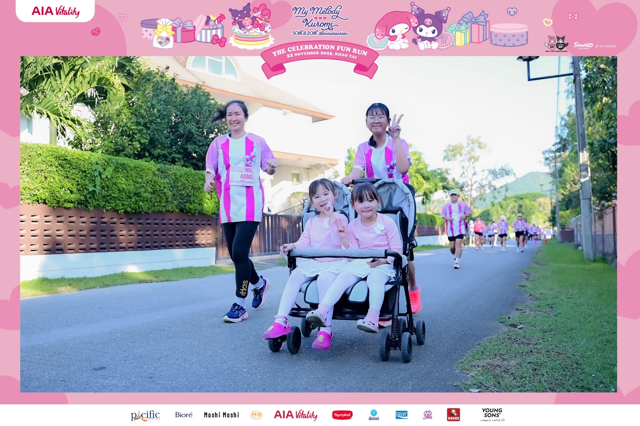 นอกจากการแข่งขันวิ่งเทรลสุดยิ่งใหญ่แล้ว ภายในงานยังเต็มไปด้วยสีสันและรอยยิ้มจากกิจกรรมสุดพิเศษ “My Melody & Kuromi Celebration Fun Run presented by AIA Vitality” งานวิ่งสุดคิวท์ที่รวมแฟนซานริโอและสายสุขภาพไว้แน่นโบนันซ่า เขาใหญ่ เพื่อเฉลิมฉลองครบรอบ 50 ปี “My Melody”, 20 ปี “Kuromi” และ 10 ปี “เอไอเอ ไวทัลลิตี้ ประเทศไทย” ผู้เข้าร่วมได้วิ่งท่ามกลางบรรยากาศสดใส พร้อมมาสคอต “My Melody” และ “Kuromi” ที่มาสร้างความน่ารักและรอยยิ้มตลอดเส้นทาง ทั้งประเภท Fun Run, Family Run และ Duo Pack ที่เปิดโอกาสให้ครอบครัวและเพื่อน ๆ ได้วิ่งไปด้วยกันอย่างสนุกสนาน
