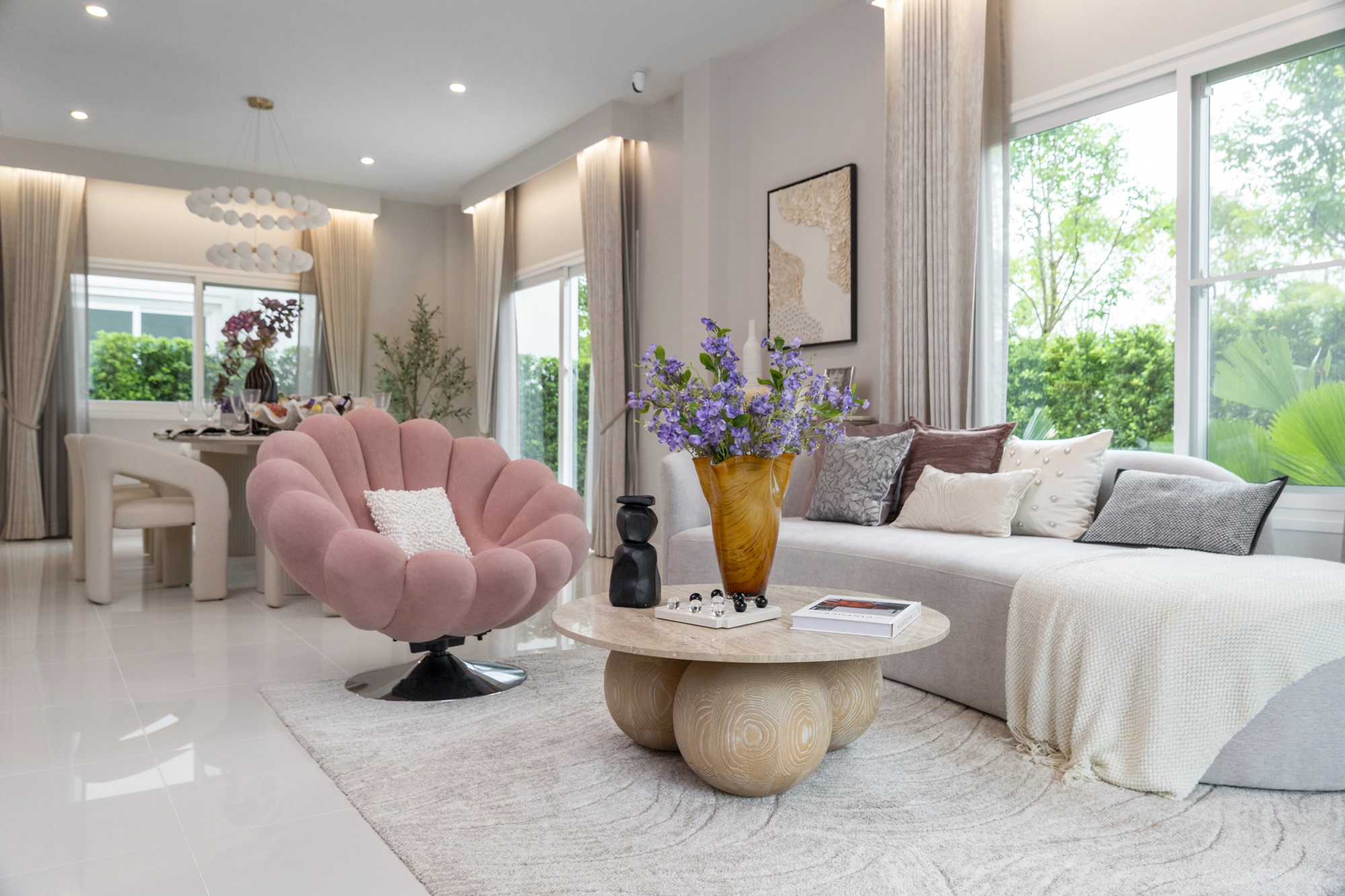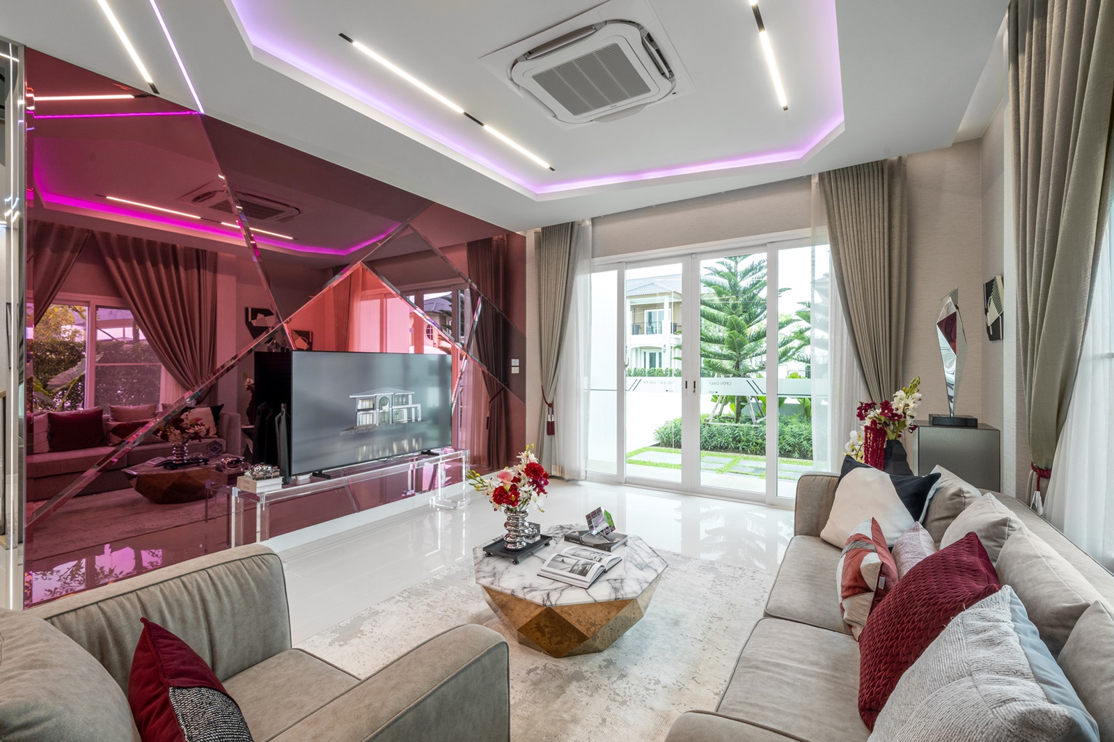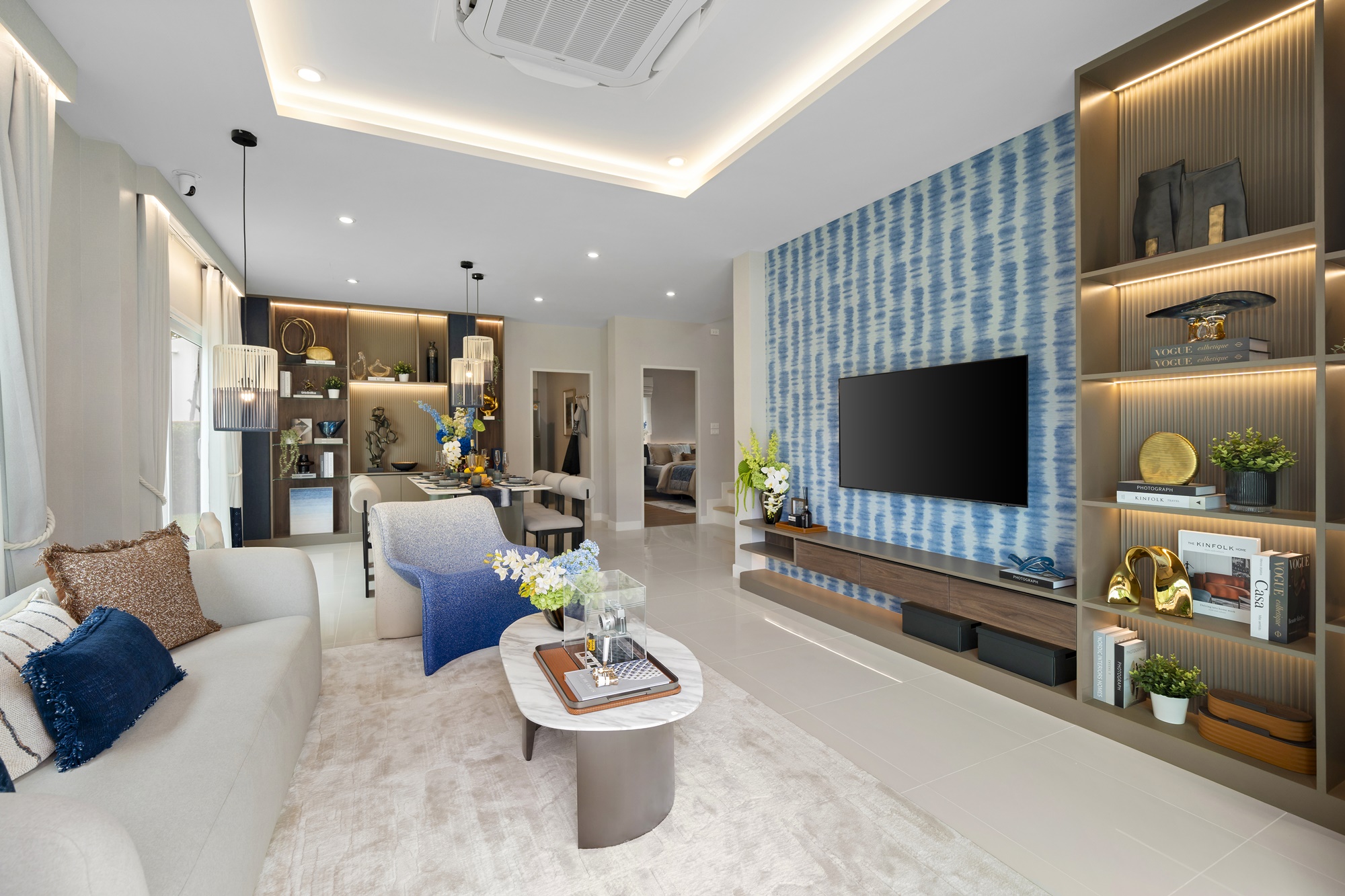 นอกจากนี้ ยังนำแนวคิด Sustainable Living มาใช้ในการตกแต่งภายในบ้านตัวอย่างและอาคารสโมสร โดยเลือกใช้วัสดุที่เป็นมิตรต่อสิ่งแวดล้อมและปลอดภัยต่อผู้อยู่อาศัย เช่น วอลเปเปอร์ ใช้หมึกพิมพ์ปลอดสารระเหย, แผ่นลามิเนตสำหรับเฟอร์นิเจอร์ Built-in ที่ป้องกันไฟ เชื้อรา และแบคทีเรีย ได้มาตรฐานระดับสากล Carbon Reduction Label, ผ้าม่าน KLASM ปลอดฟอร์มาลดีไฮด์ ช่วยลดการสะสมสารระเหยในอากาศ อีกทั้งไอเดียตกแต่งด้วยงานฝีมือและภูมิปัญญาท้องถิ่น เช่น ขอบผ้าม่าน นำผ้าย้อมครามแท้จากกลุ่มทอผ้ามัดหมี่ จังหวัดสกลนคร และ โคมไฟหวายจากชุมชนสามโคก จังหวัดปทุมธานี ซึ่งผ่านการรับรองฉลากเขียว (Green Label) และฉลากลดคาร์บอน (Carbon Reduction Label) เป็นต้น