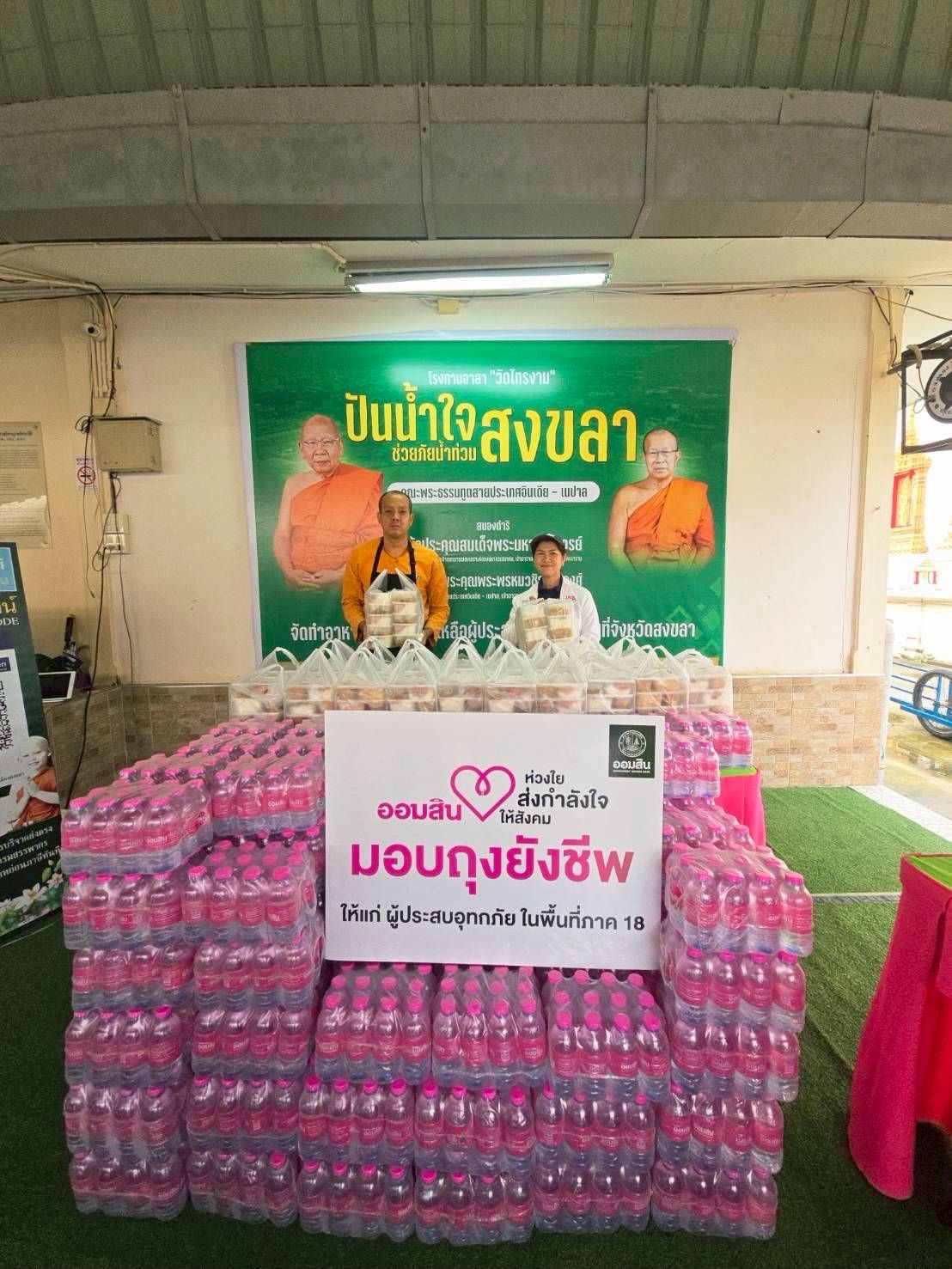 ธนาคารให้ความสำคัญกับการสนับสนุนสิ่งของที่จำเป็น โดยเฉพาะอุปกรณ์ไฟฟ้าสำรองและเครื่องปั่นไฟสำหรับผู้ป่วยที่ต้องพึ่งพาเครื่องมือแพทย์ ยารักษาโรค สิ่งของเครื่องใช้ในชีวิตประจำวัน ตลอดจนอุปกรณ์ทำความสะอาด โดยส่งมอบผ่านหน่วยงานราชการจังหวัด อาทิ สำนักงาน ปภ. จังหวัดสงขลา องค์การบริหารส่วนจังหวัดสงขลา มหาวิทยาลัยราชภัฏสงขลา และศูนย์พักพิงโรงเรียนเทศบาล 5 (วัดหัวป้อมนอก)