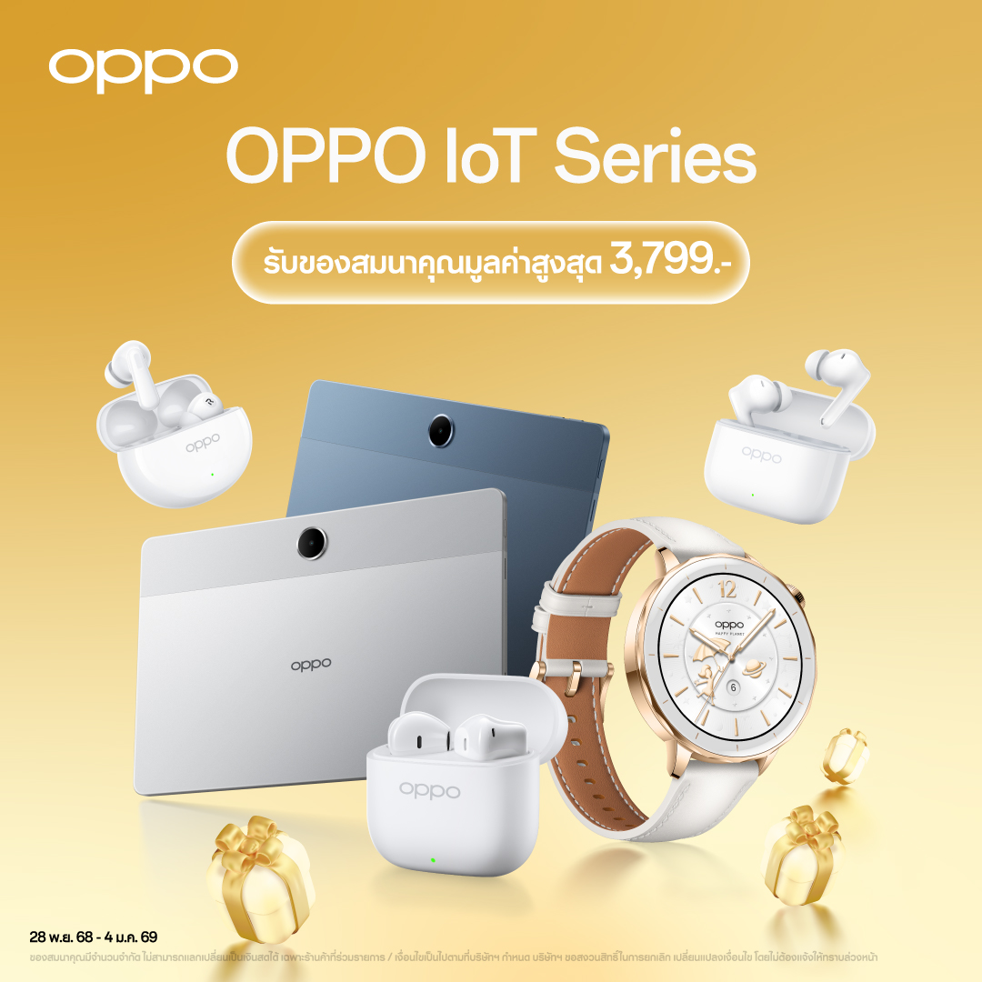 กรุงเทพฯ, 28 พฤศจิกายน 2568 : OPPO แบรนด์เทคโนโลยีชั้นนำระดับโลก มอบความสุขด้วยสมาร์ตโฟนและอุปกรณ์ IoT ที่เลือกได้ส่งท้ายปี ผ่านโปรโมชันแคมเปญ New Year New Phone มาพร้อมโปรแรง ทั้งลดทั้งแถม ตั้งแต่วันที่ 28 พฤศจิกายน 2568 – 4 มกราคม 2569 ที่ OPPO Brand Shop และตัวแทนจำหน่ายทั่วประเทศ