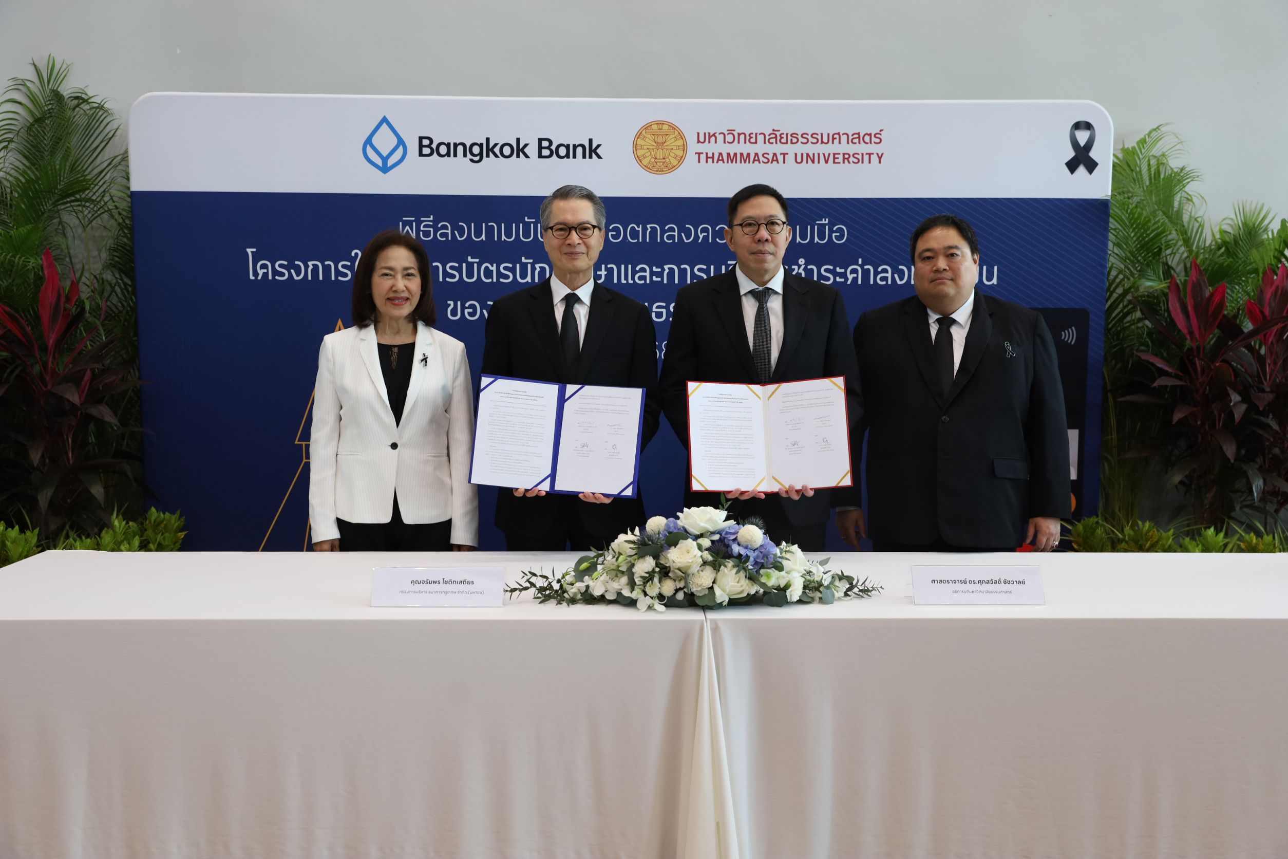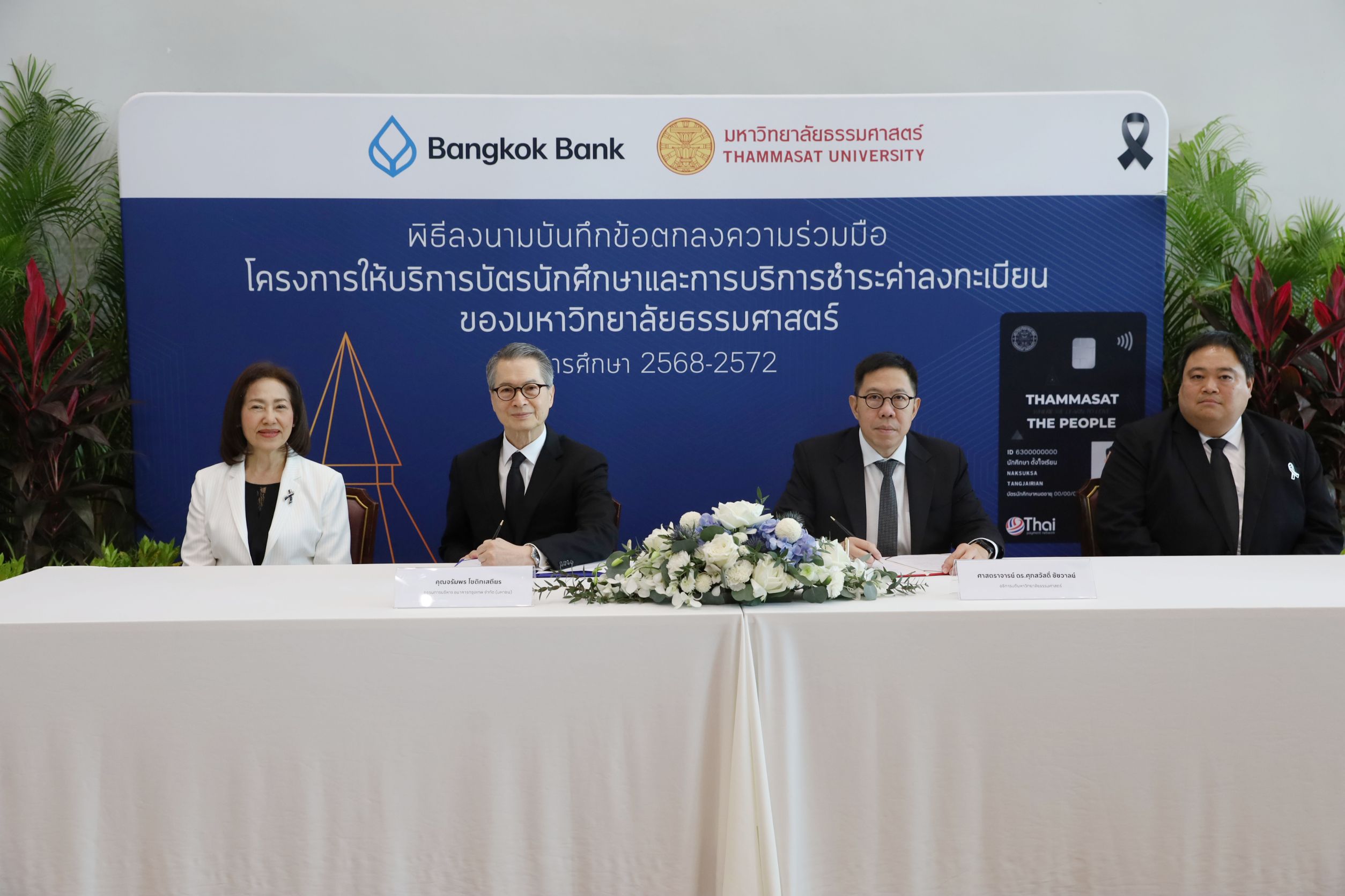 28 พฤศจิกายน 2568 : มหาวิทยาลัยธรรมศาสตร์ และธนาคารกรุงเทพ จำกัด (มหาชน) ลงนามบันทึกข้อตกลงความร่วมมือ (MOU) ในโครงการให้บริการบัตรนักศึกษา และการบริการชำระค่าลงทะเบียนของมหาวิทยาลัยธรรมศาสตร์ ปีการศึกษา 2568-2572 เพื่อยกระดับโครงสร้างพื้นฐานดิจิทัลและระบบการให้บริการของมหาวิทยาลัยอย่างครบวงจร โดยมี ศาสตราจารย์ ดร.ศุภสวัสดิ์ ชัชวาลย์ อธิการบดี มหาวิทยาลัยธรรมศาสตร์ และ นายจรัมพร โชติกเสถียร กรรมการบริหาร ธนาคารกรุงเทพ จำกัด (มหาชน) ร่วมลงนามในครั้งนี้ ณ วันที่ 28 พฤศจิกายน 2568 ณ มหาวิทยาลัยธรรมศาสตร์