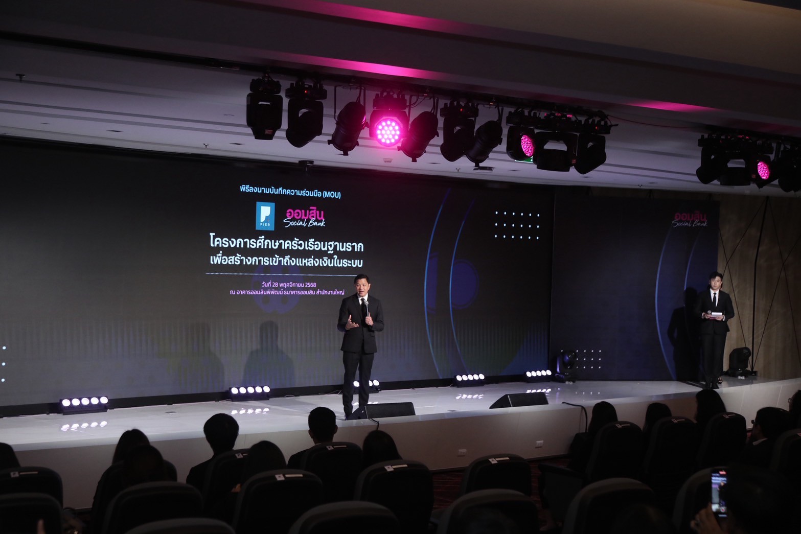 ดร.โสมรัศมิ์ จันทรัตน์ ผู้อำนวยการสถาบันวิจัยเศรษฐกิจป๋วย อึ๊งภากรณ์ เปิดเผยว่า ความร่วมมือในครั้งนี้เป็นการศึกษาข้อมูลเชิงลึกของลูกหนี้ภายใต้โครงการ “สินเชื่อสร้างเครดิต สร้างโอกาส” ของธนาคารออมสิน ซึ่งเป็นต้นแบบสินเชื่อดิจิทัลที่เปิดโอกาสให้ผู้มีรายได้แต่ไม่เคยเข้าถึงสินเชื่อในระบบสามารถกู้เงินได้เป็นครั้งแรก โดยธนาคารออมสินได้ปล่อยสินเชื่อเพื่อช่วยคนไทยสร้างประวัติเครดิตทางการเงินไปแล้วกว่า 200,000 ราย สะท้อนถึงความต้องการเข้าถึงสินเชื่อในระบบที่ยังมีอยู่จำนวนมาก การศึกษาครั้งนี้จึงมุ่งขยาย “ประตูสู่ระบบการเงิน” ให้กว้างขึ้น ผ่านการเก็บข้อมูลเชิงลึกของกลุ่มคนที่อยู่นอกระบบเป็นครั้งแรก ใน 4 ประเด็นหลัก ได้แก่