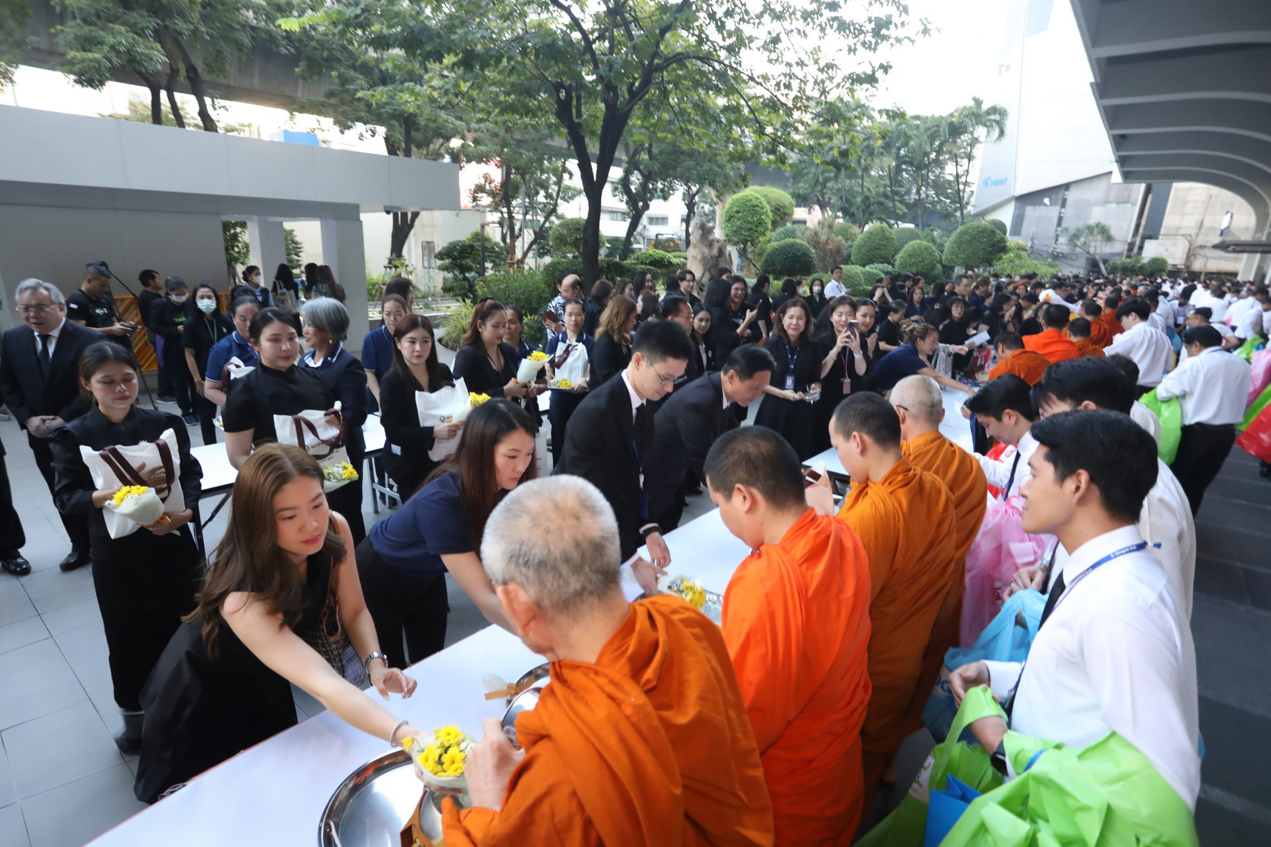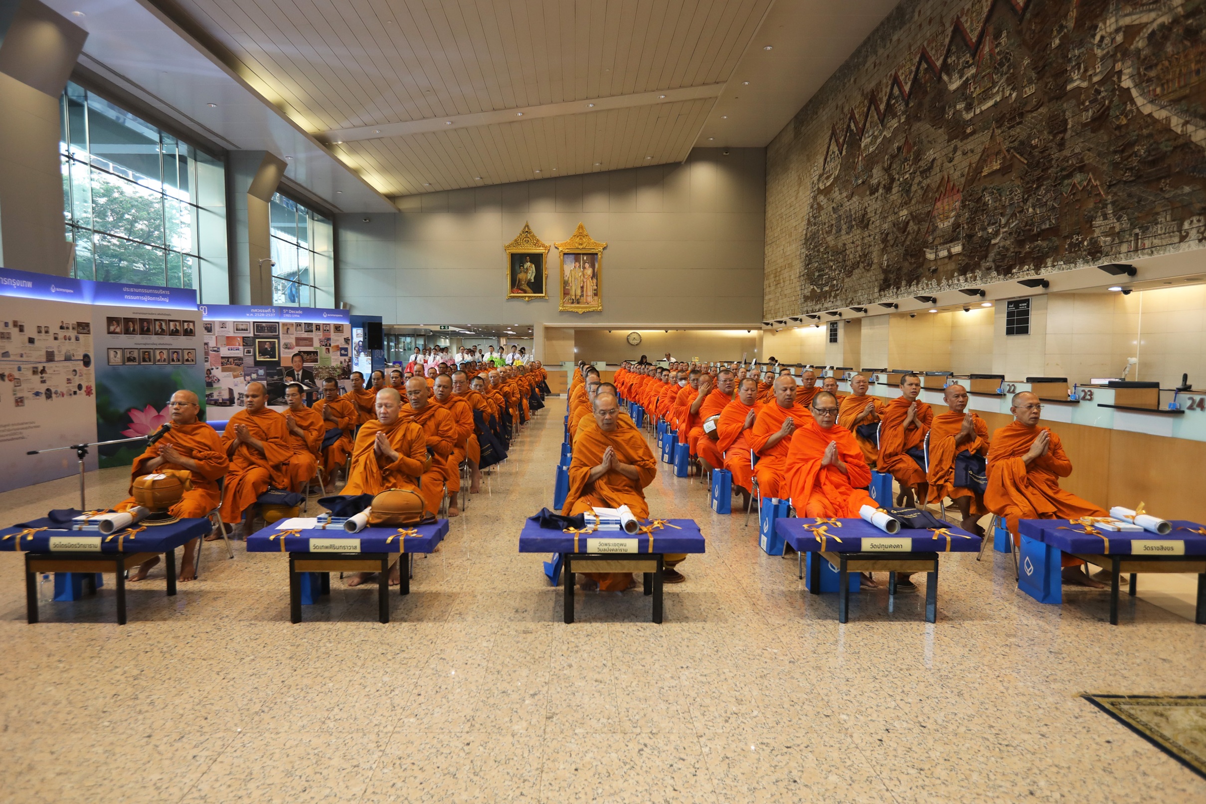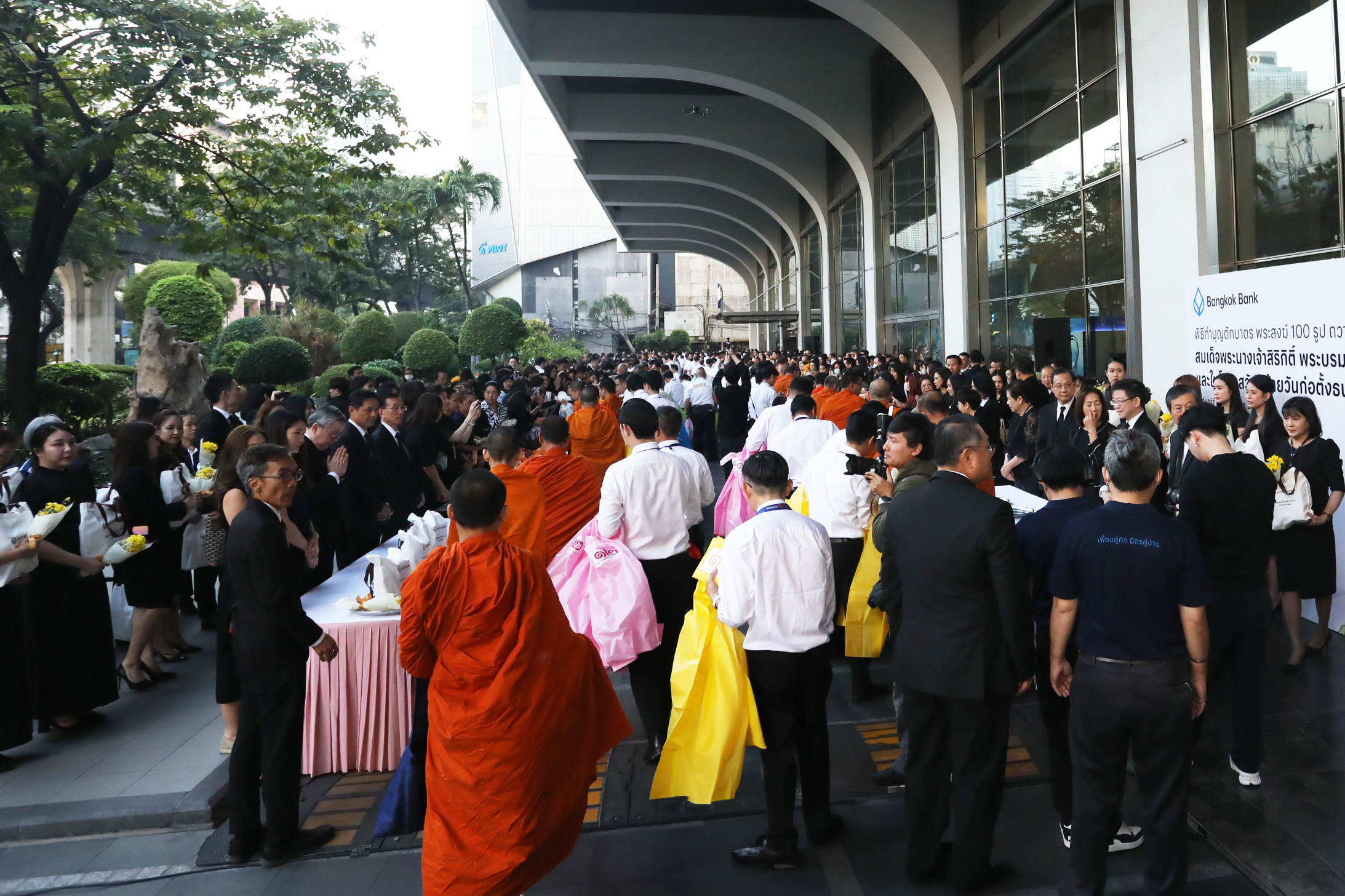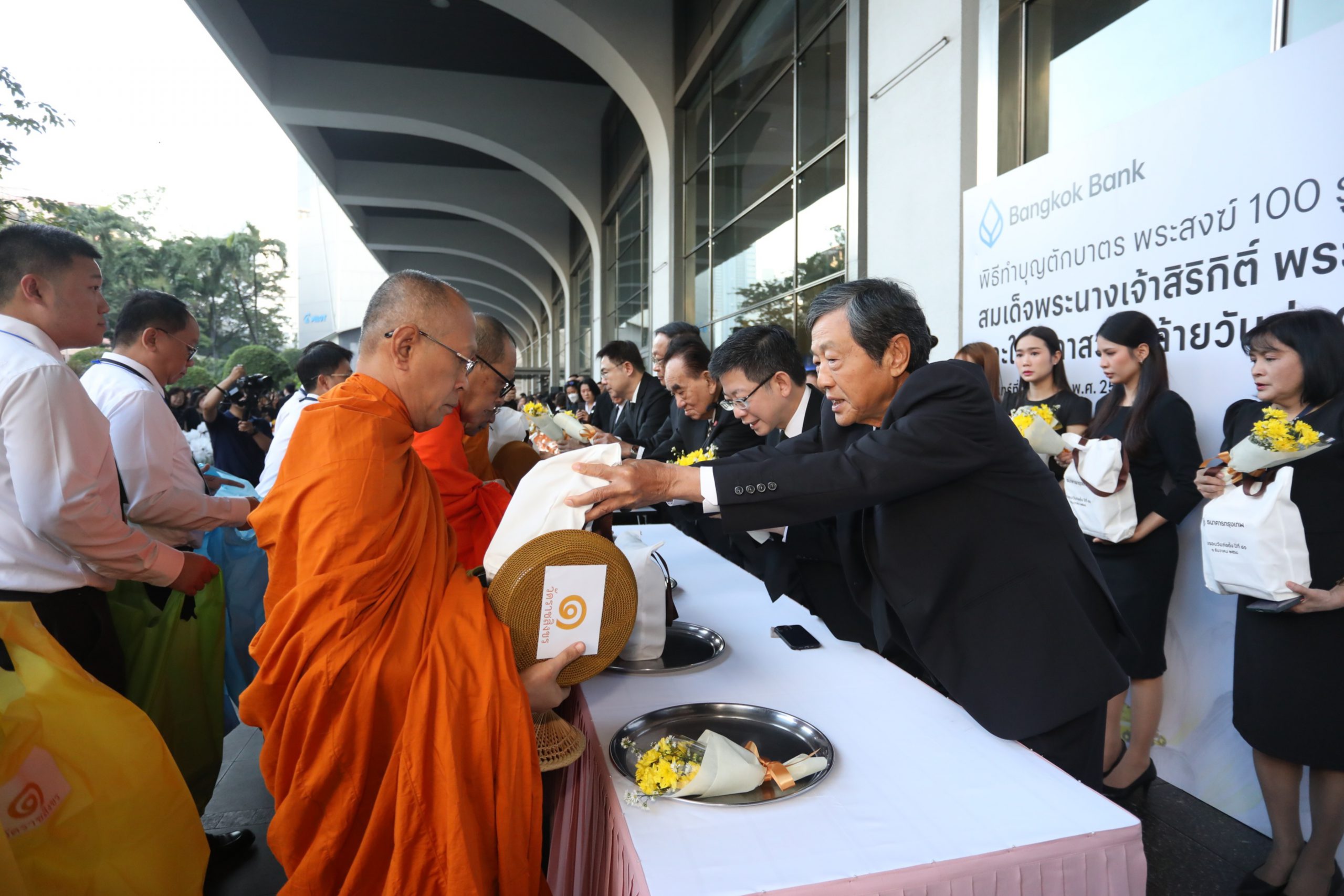โดยธนาคารได้นิมนต์พระสงฆ์ 100 รูป จาก 5 พระอารามหลวง ได้แก่ วัดพระเชตุพนวิมลมังคลารามราชวรมหาวิหาร วัดเทพศิรินทราวาสราชวรวิหาร วัดปทุมคงคาราชวรวิหาร วัดไตรมิตรวิทยารามวรวิหาร และวัดราชสิงขร พระอารามหลวง เพื่อประกอบพิธีสงฆ์และรับบิณฑบาต ณ บริเวณลานหน้าอาคารสำนักงานใหญ่ ธนาคารกรุงเทพ ถนนสีลม