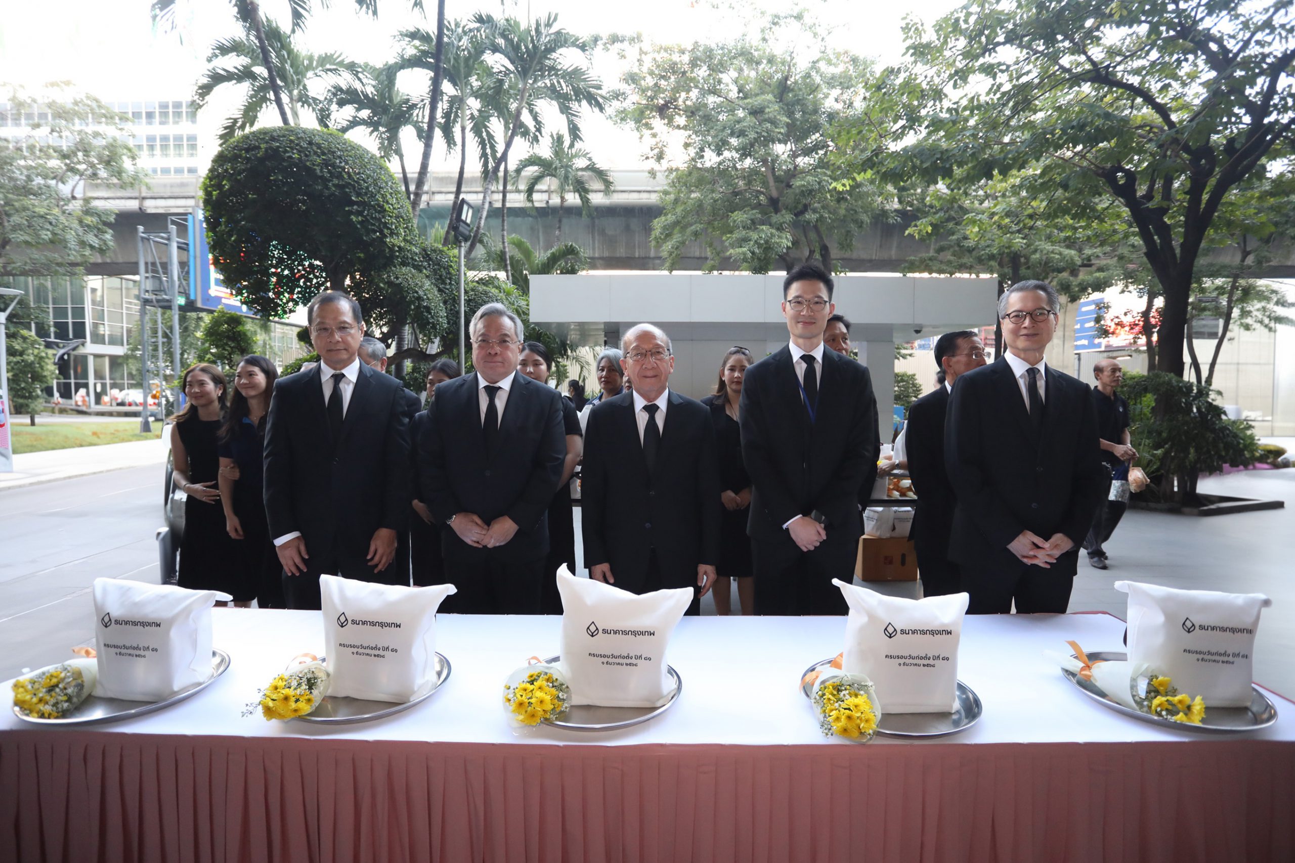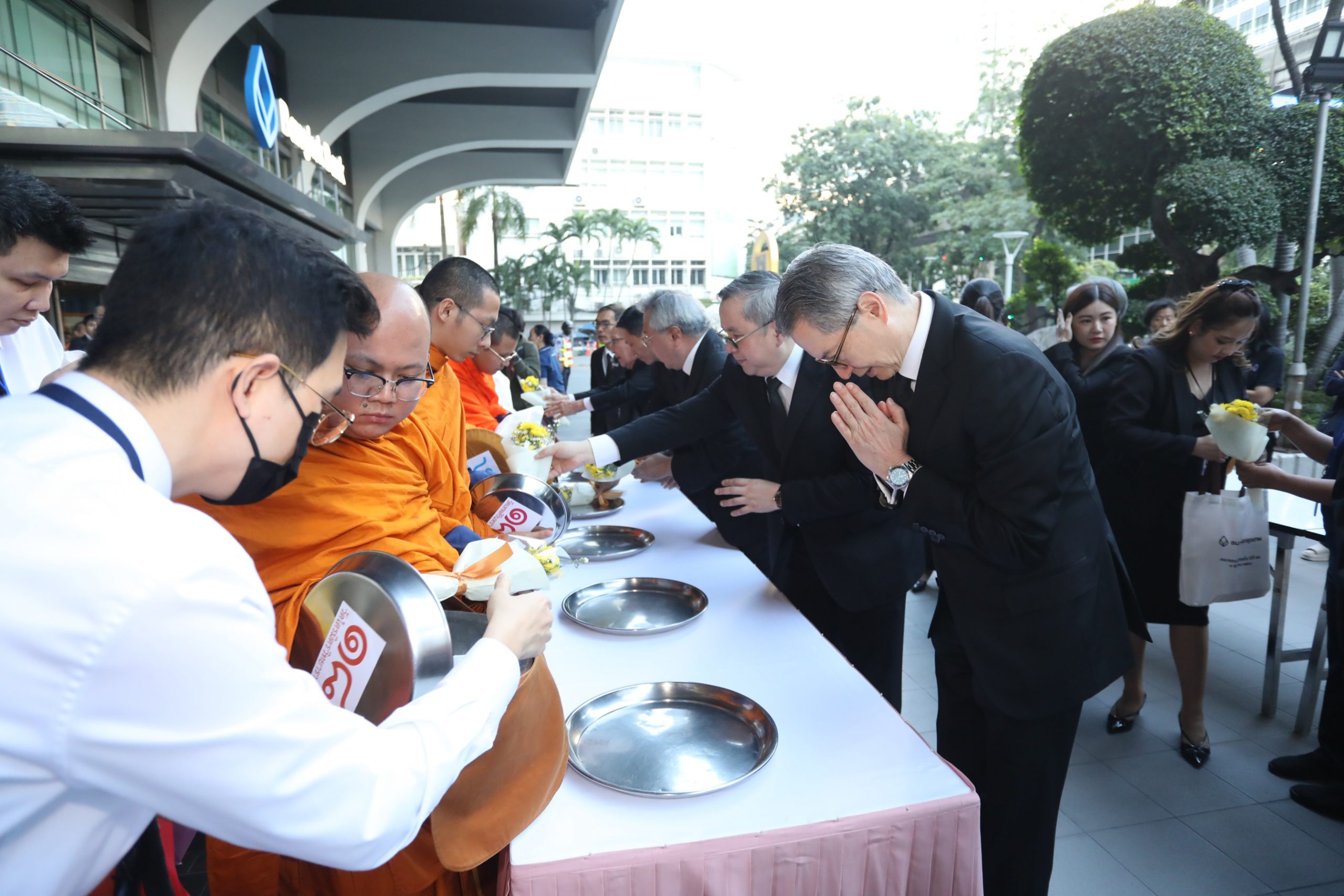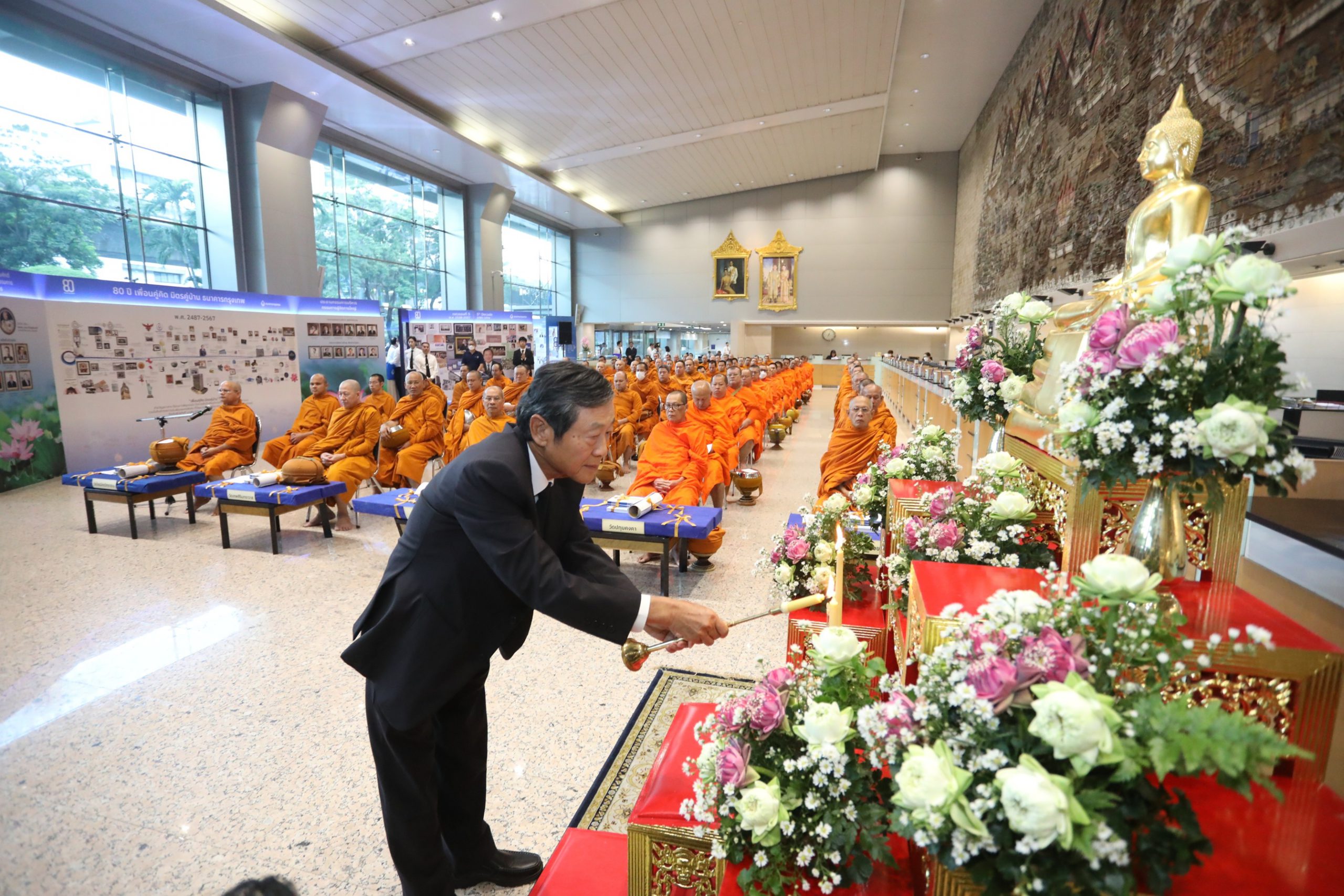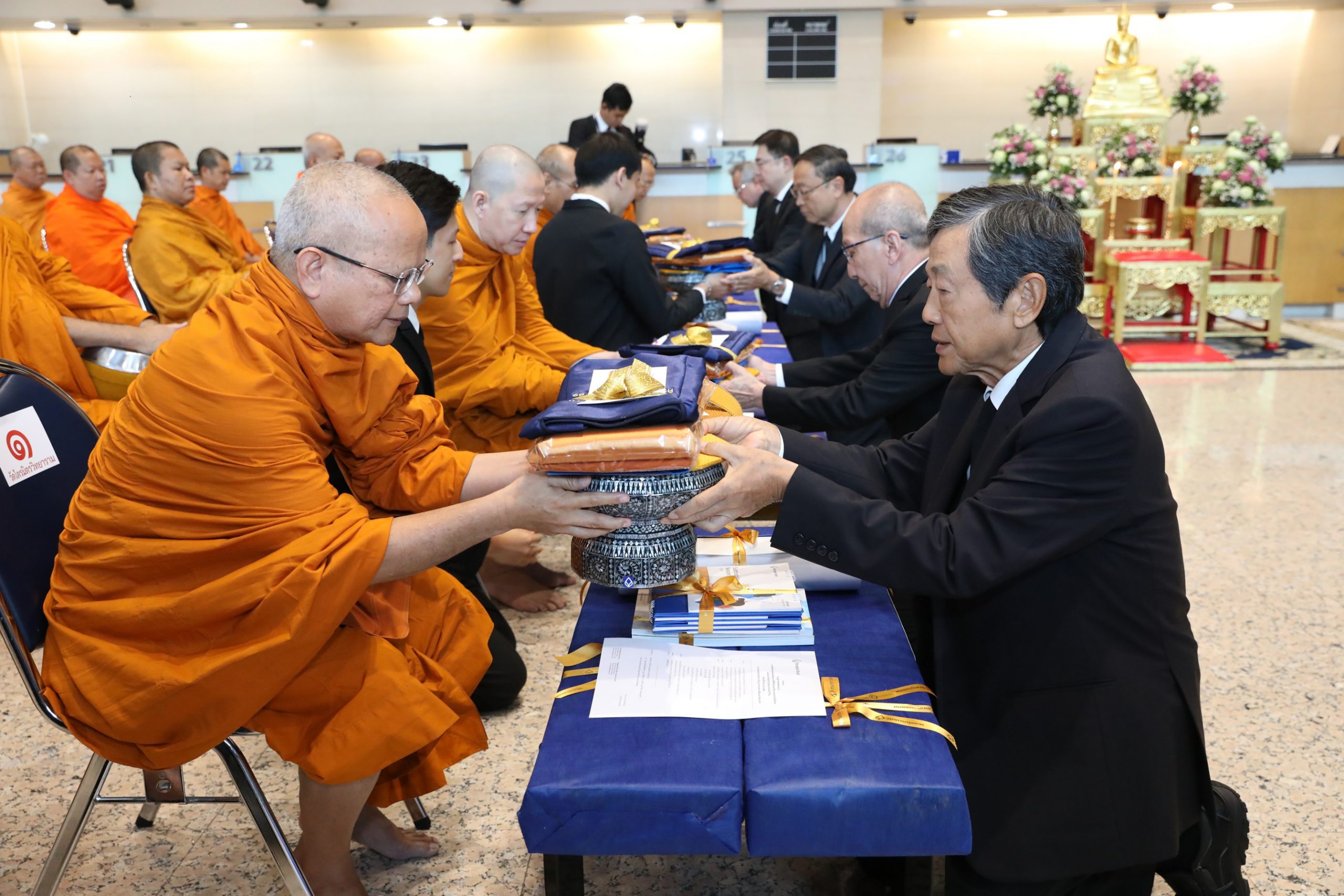 โดยธนาคารได้นิมนต์พระสงฆ์ 100 รูป จาก 5 พระอารามหลวง ได้แก่ วัดพระเชตุพนวิมลมังคลารามราชวรมหาวิหาร วัดเทพศิรินทราวาสราชวรวิหาร วัดปทุมคงคาราชวรวิหาร วัดไตรมิตรวิทยารามวรวิหาร และวัดราชสิงขร พระอารามหลวง เพื่อประกอบพิธีสงฆ์และรับบิณฑบาต ณ บริเวณลานหน้าอาคารสำนักงานใหญ่ ธนาคารกรุงเทพ ถนนสีลม