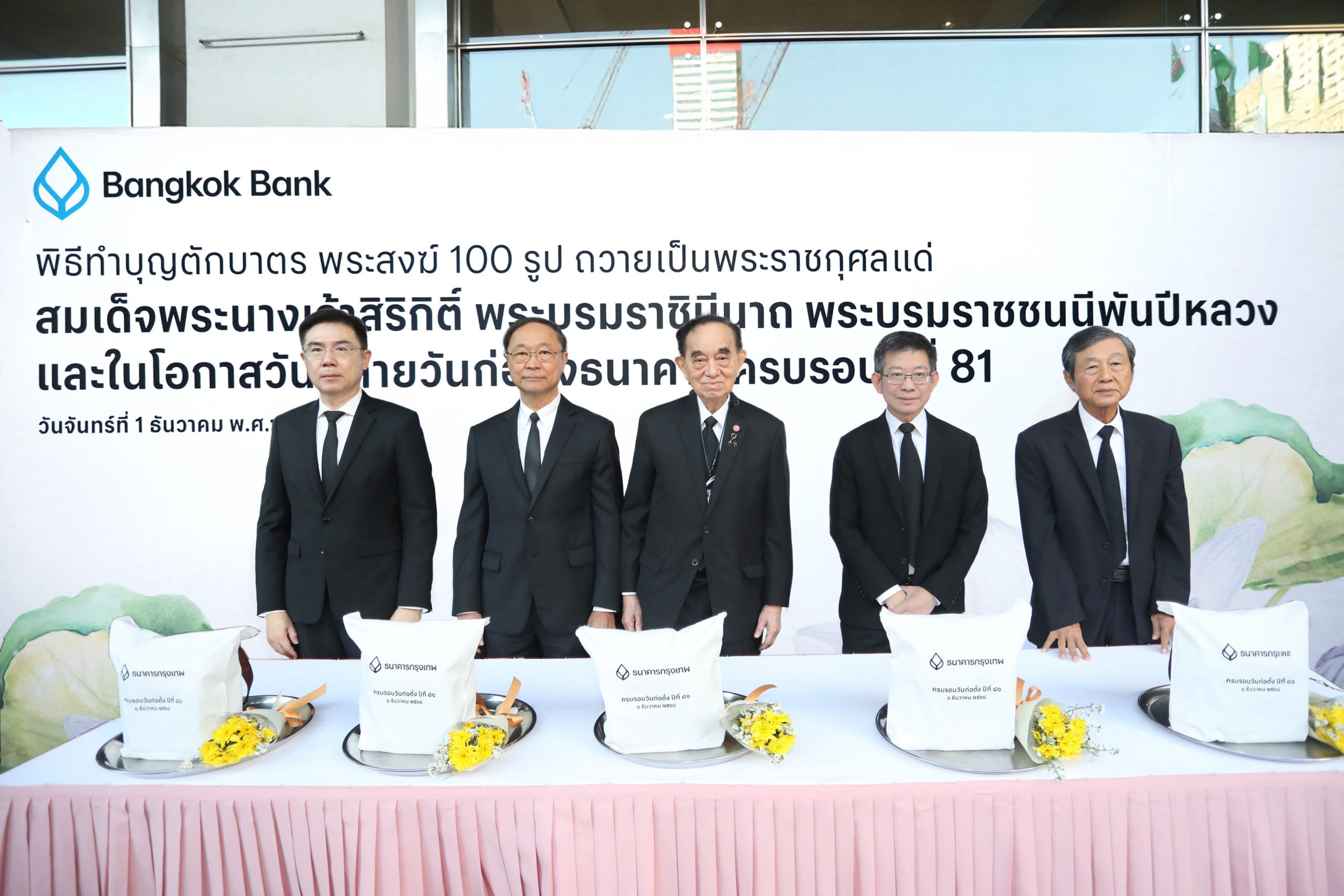 1 ธันวาคม 2568 : นายอมร จันทรสมบูรณ์ นายอรุณ จิรชวาลา นายศิริ จิระพงษ์พันธ์ นายพิเชฐ ดุรงคเวโรจน์ นายบัณฑิต เอื้ออาภรณ์ นายวีระพัฒน์ ถกลศรี นายจรัมพร โชติกเสถียร กรรมการธนาคาร และนายกอบศักดิ์ ภูตระกูลกรรมการรองผู้จัดการใหญ่ พร้อมด้วยคณะผู้บริหาร และพนักงานธนาคารกรุงเทพ จำกัด (มหาชน) ร่วมทำบุญตักบาตรพระสงฆ์ 100 รูป ถวายเป็นพระราชกุศลแด่ สมเด็จพระนางเจ้าสิริกิติ์ พระบรมราชินีนาถ พระบรมราชชนนีพันปีหลวง เพื่อแสดงออกถึงความจงรักภักดี และน้อมสำนึกในพระมหากรุณาธิคุณอันหาที่สุดมิได้ ที่ทรงมีต่อพสกนิกรชาวไทยมาอย่างยาวนาน และในโอกาสวันคล้ายวันก่อตั้งธนาคารครบรอบปีที่ 81 เพื่อสร้างความเป็นสิริมงคลในวาระที่ธนาคารกรุงเทพก้าวเข้าสู่ทศวรรษที่ 9 ด้วยเจตนารมณ์การเป็น “เพื่อนคู่คิด มิตรคู่บ้าน” ในวันจันทร์ที่ 1 ธันวาคม 2568