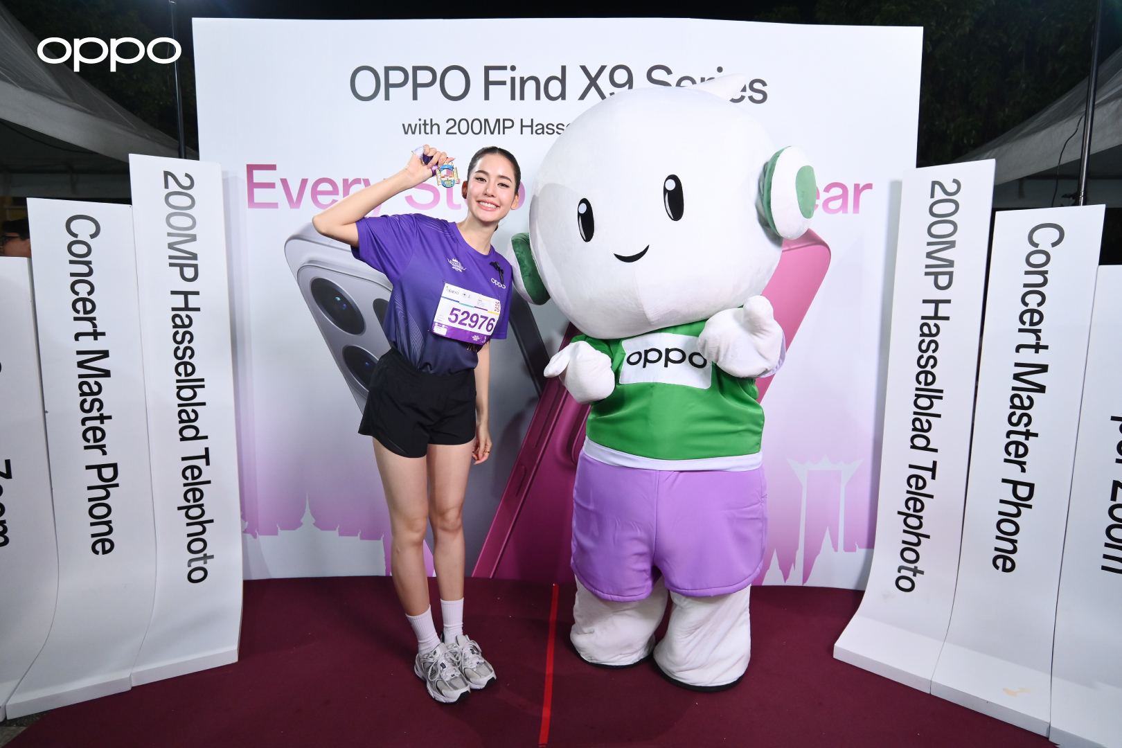 ภายในงาน OPPO ได้จัดบูธกิจกรรมที่มาพร้อมกับสมาร์ตโฟนระดับแฟลกชิป OPPO Find X9 Series 5G รุ่นใหม่ล่าสุด ครั้งแรกของกล้อง 200MP Hasselblad Telephoto มอบภาพถ่ายคมชัดทุกรายละเอียด อีกทั้งยังถ่ายภาพพอร์ตเทรตสวยระดับมืออาชีพด้วยโหมด Hasselblad Portrait มอบรายละเอียด และสีผิวที่เป็นธรรมชาติ สีสันแม่นยำ ไม่ว่ากลางวันหรือกลางคืนก็เก็บภาพได้คมชัด สวยงาม ร่วมเก็บภาพความประทับใจของเหล่านักวิ่งภายในงาน มอบความคมชัดทุกโมเมนต์สำคัญของการแข่งขัน